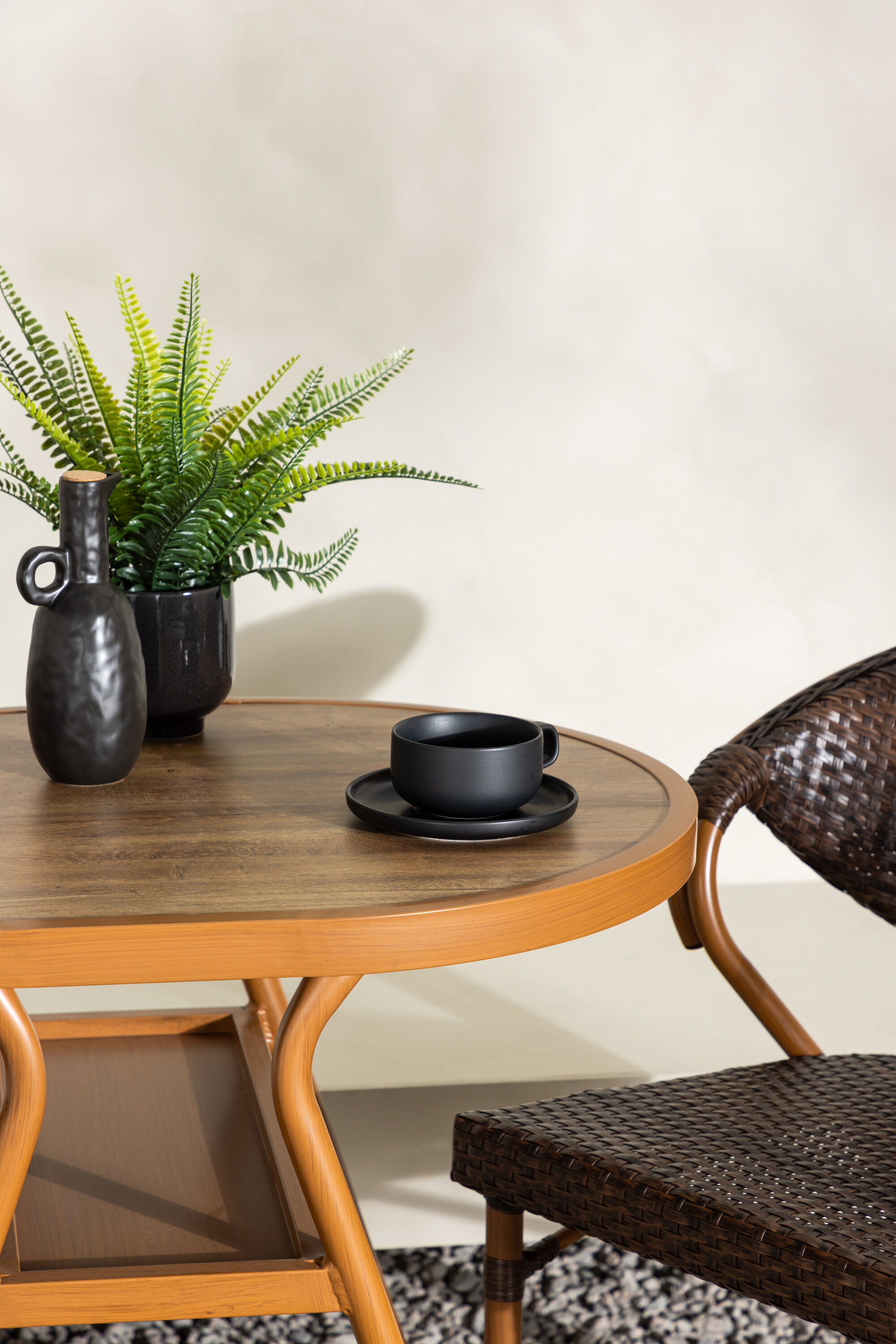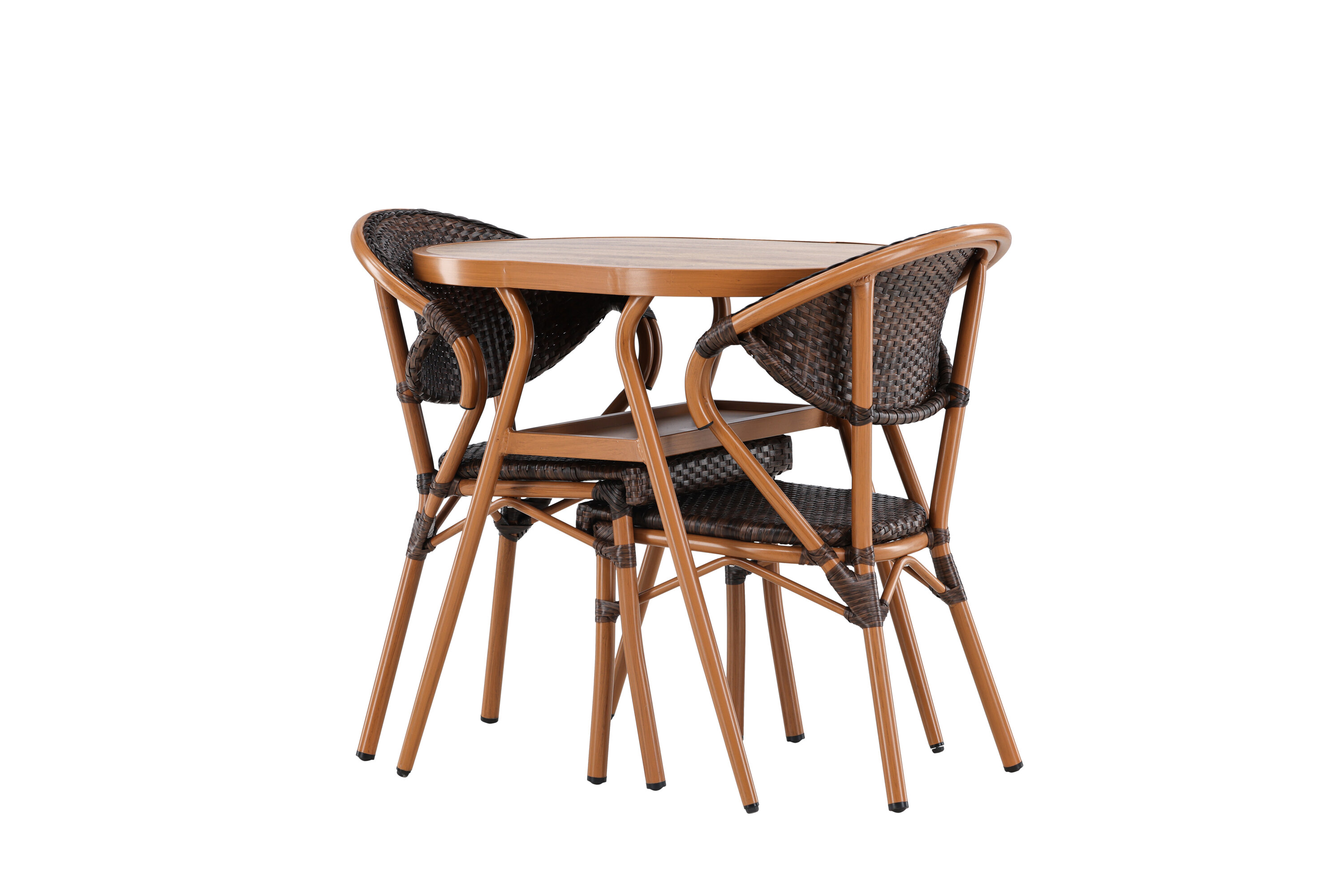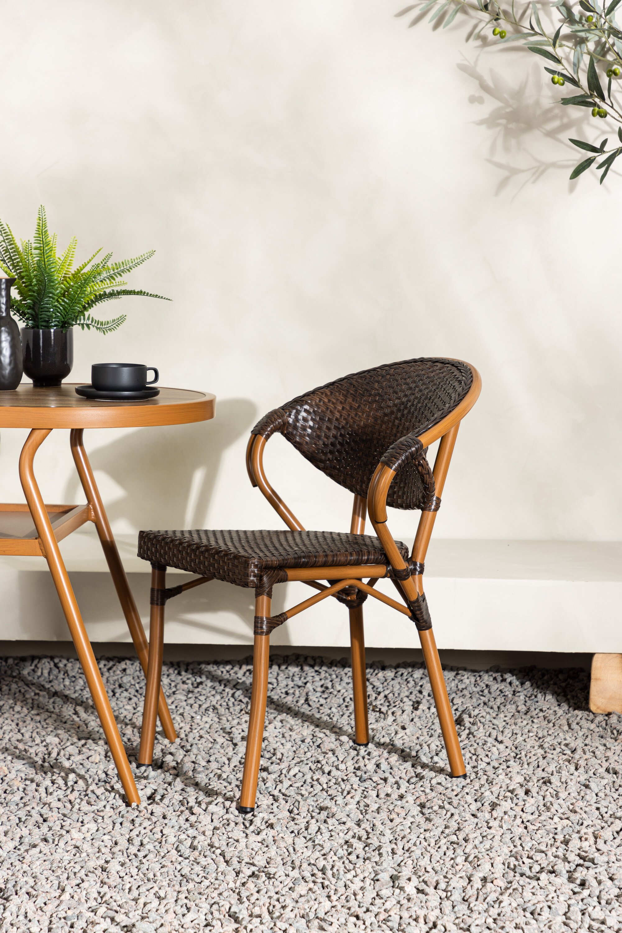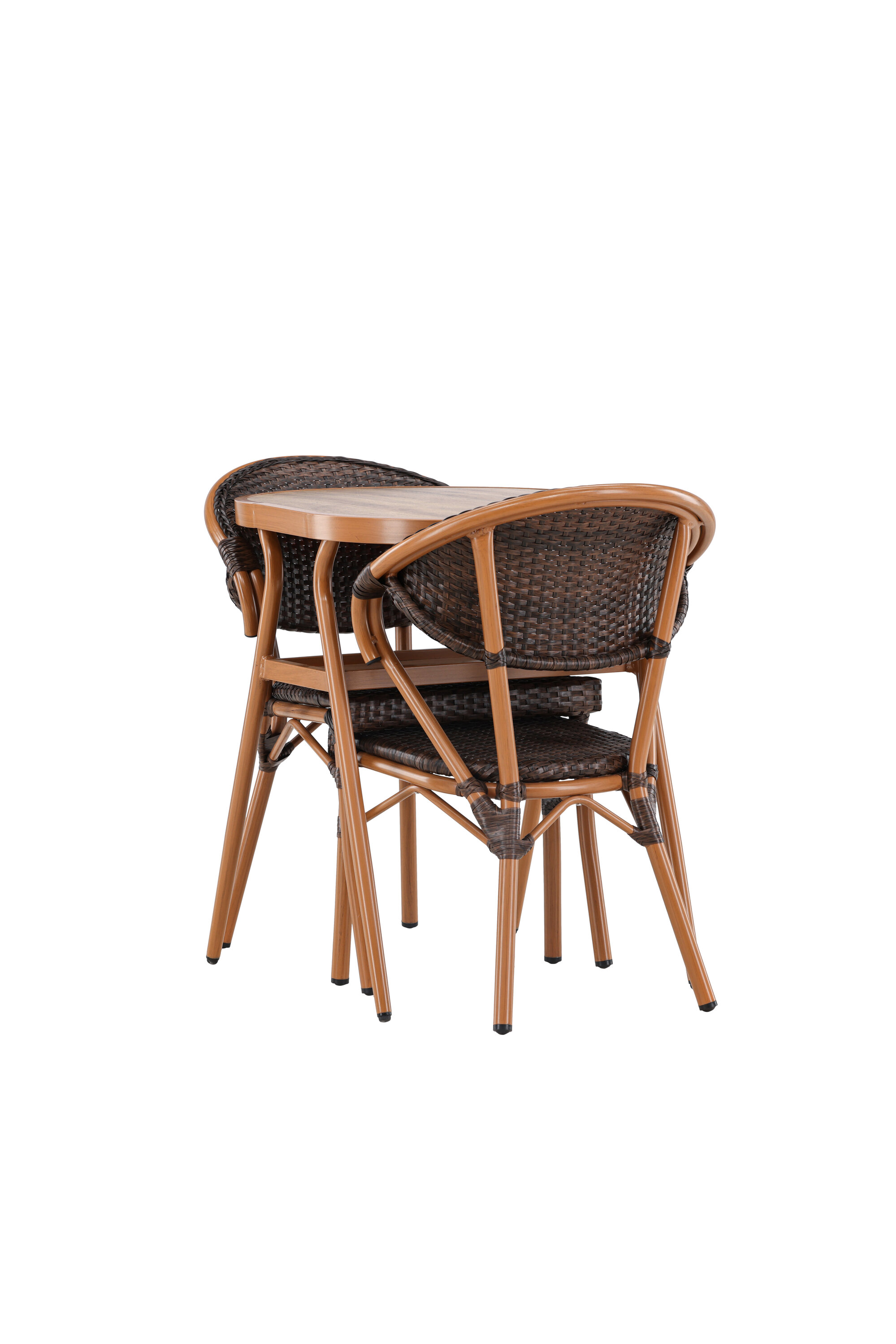 Muutke oma välikeskkond kutsuvaks ja mugavaks ruumiks meie elegantse Abrantese komplektiga, mis koosneb kahest toolist ja lauast. Sellel sooja pruuni tooniga komplektil on mitmekülgne disain, mis sulandub erinevate interjööri stiilidega. Abrantese gruppi on lihtne teisaldada ja hooldada, mistõttu on see praktiline ja mugav lahendus õues lõõgastumiseks.