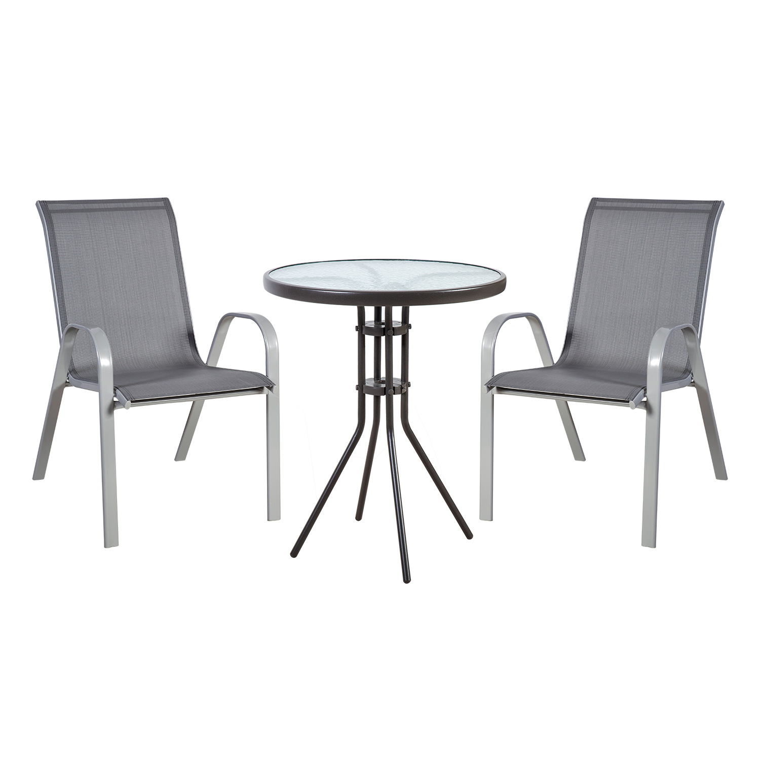 Aiamööblikomplekt DUBLIN laud ja 2 tooli, hall.