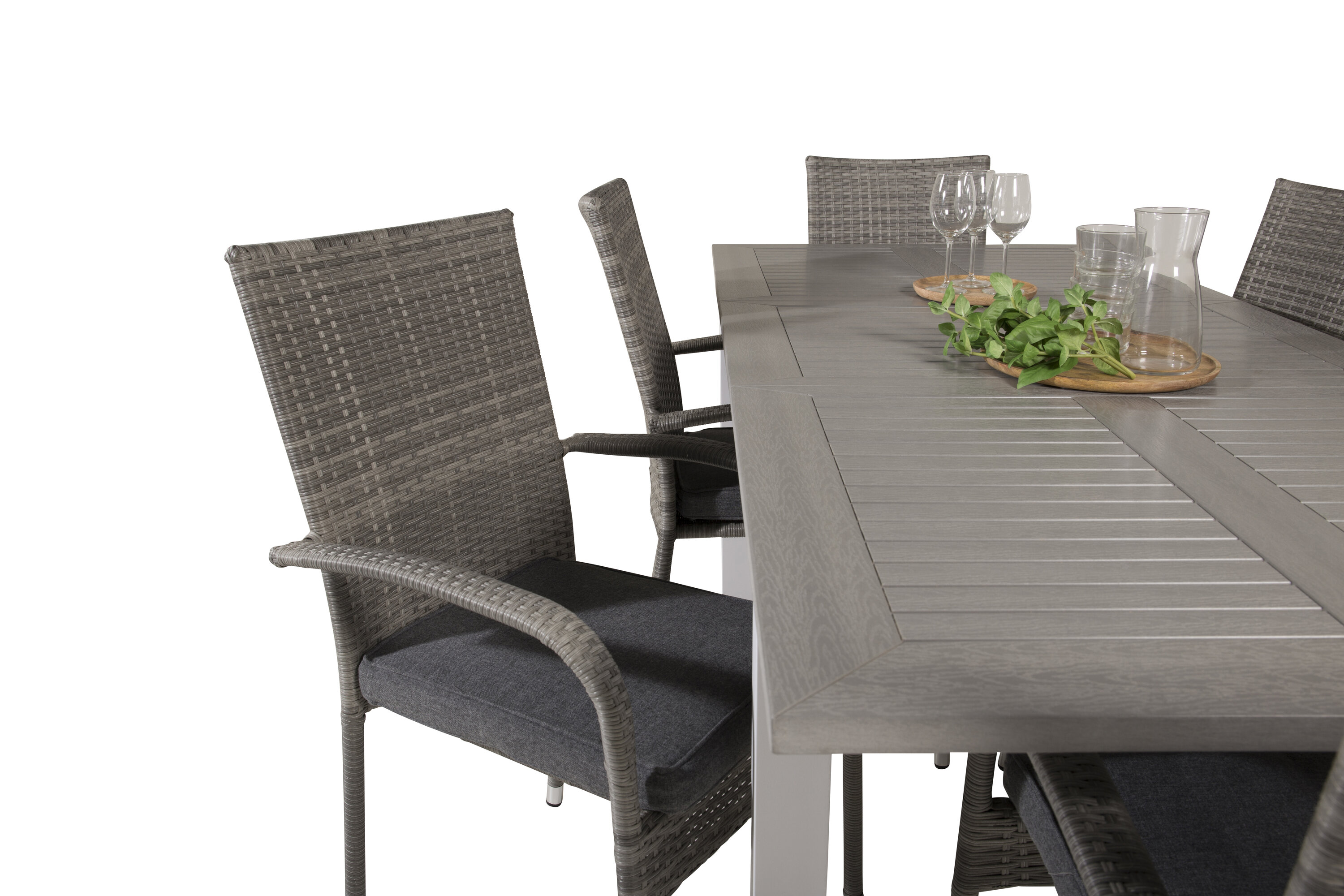 Toidugrupp, mis sobib enamikesse keskkondadesse! Meie pikendatav söögilaud Albany koos stiilsete toolidega sarjast Anna in Grey Konstrottning on nagu tehtud neile, kes soovivad luua aias või õues hubase ja kaasaegse tunde. Laiendage oma õhtusöögikutseid ja vältige muretsemist kõigi majutamise pärast.