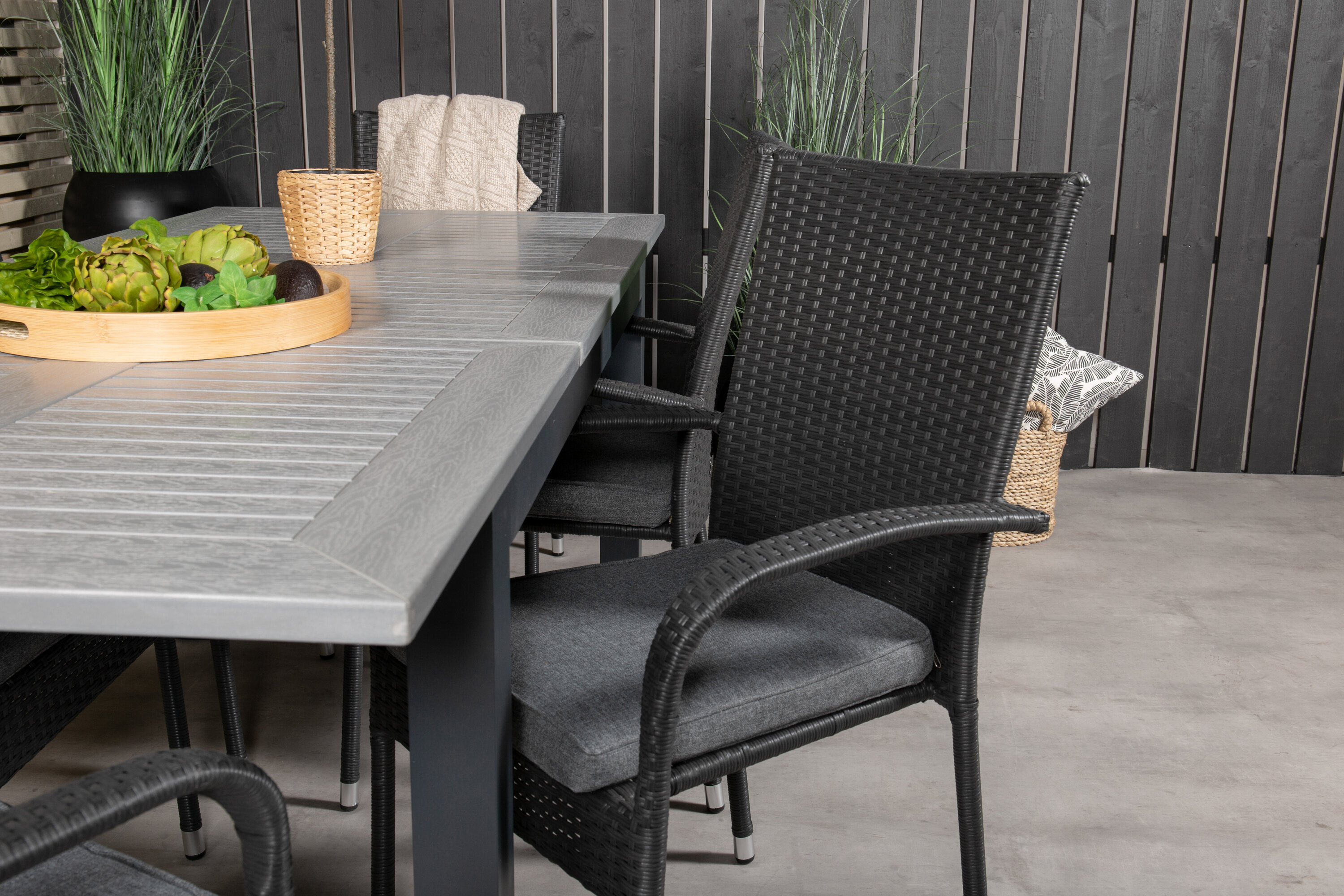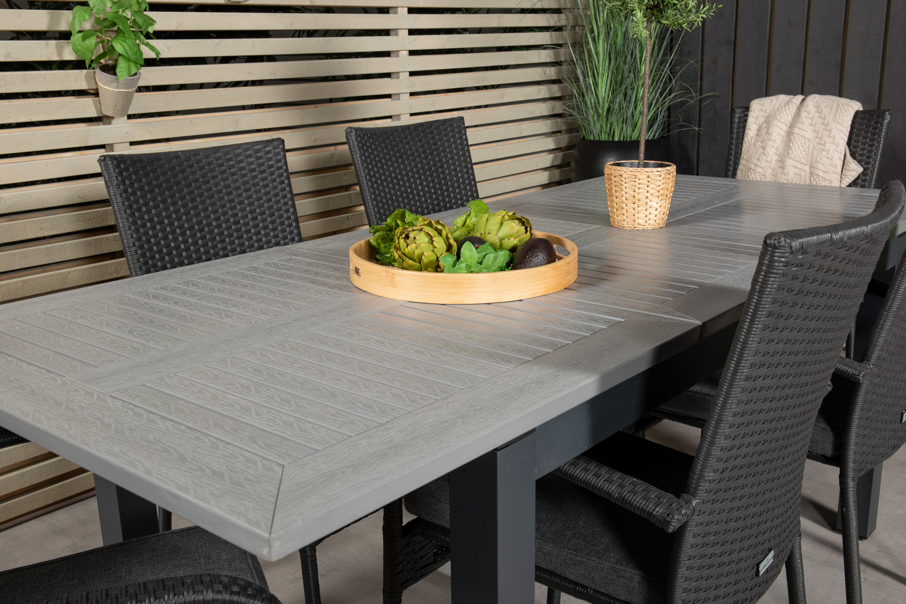 Stiilne toidugrupp terrassile või rõdule, mis on kombineeritud pikendatava söögilaua Albany ja kokkupandavate toolidega Anna. Valmistu meiega välishooajaks!