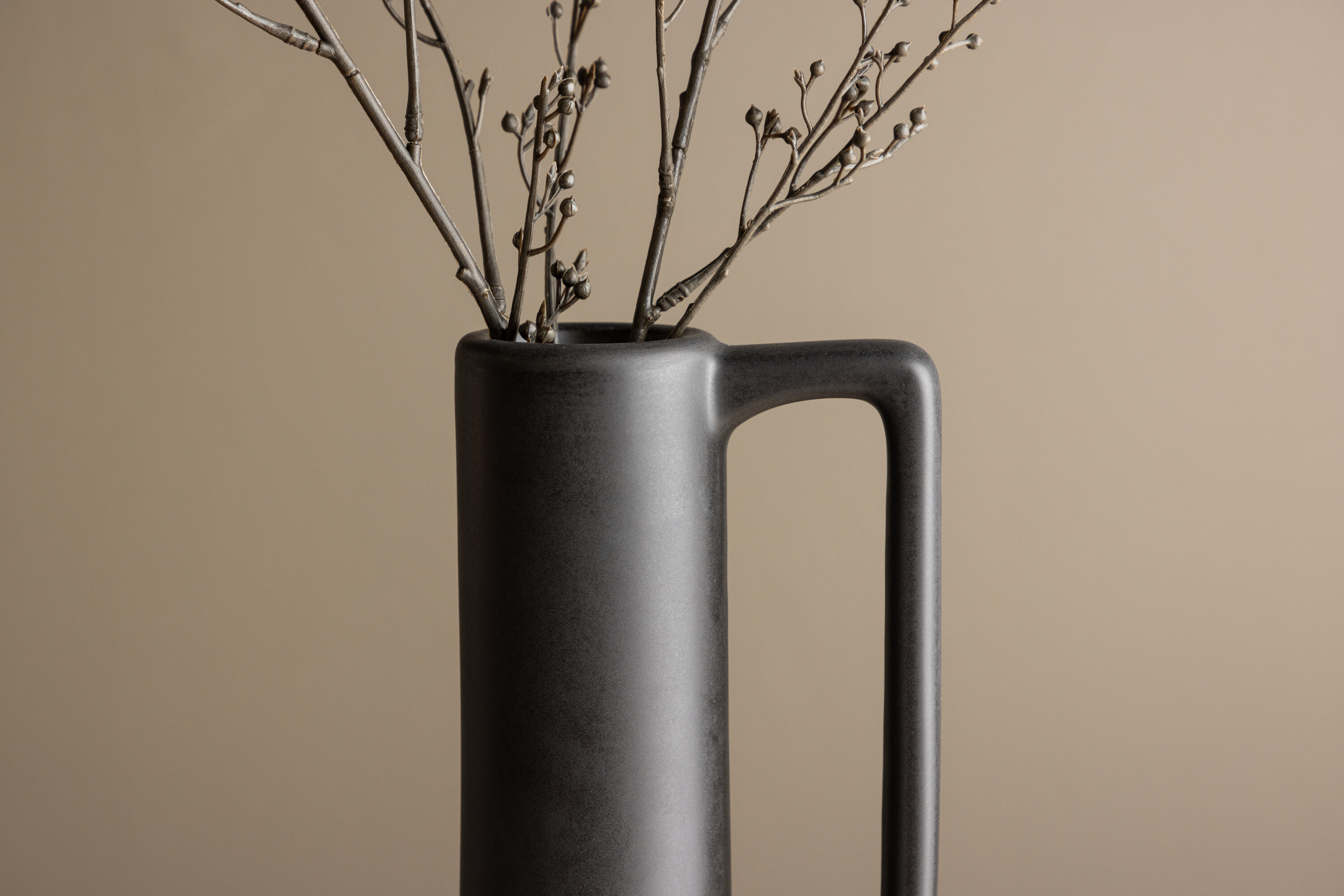 Vaasi ühel küljel olev pikk käepide lisab iseloomu ja muudab selle käsitsemise lihtsaks. Must värv õhkab modernset ja stiilset tunnet ning muljetavaldava 36 cm kõrgusega saab Alist tõeliselt silmatorkavaks interjööridetailiks.