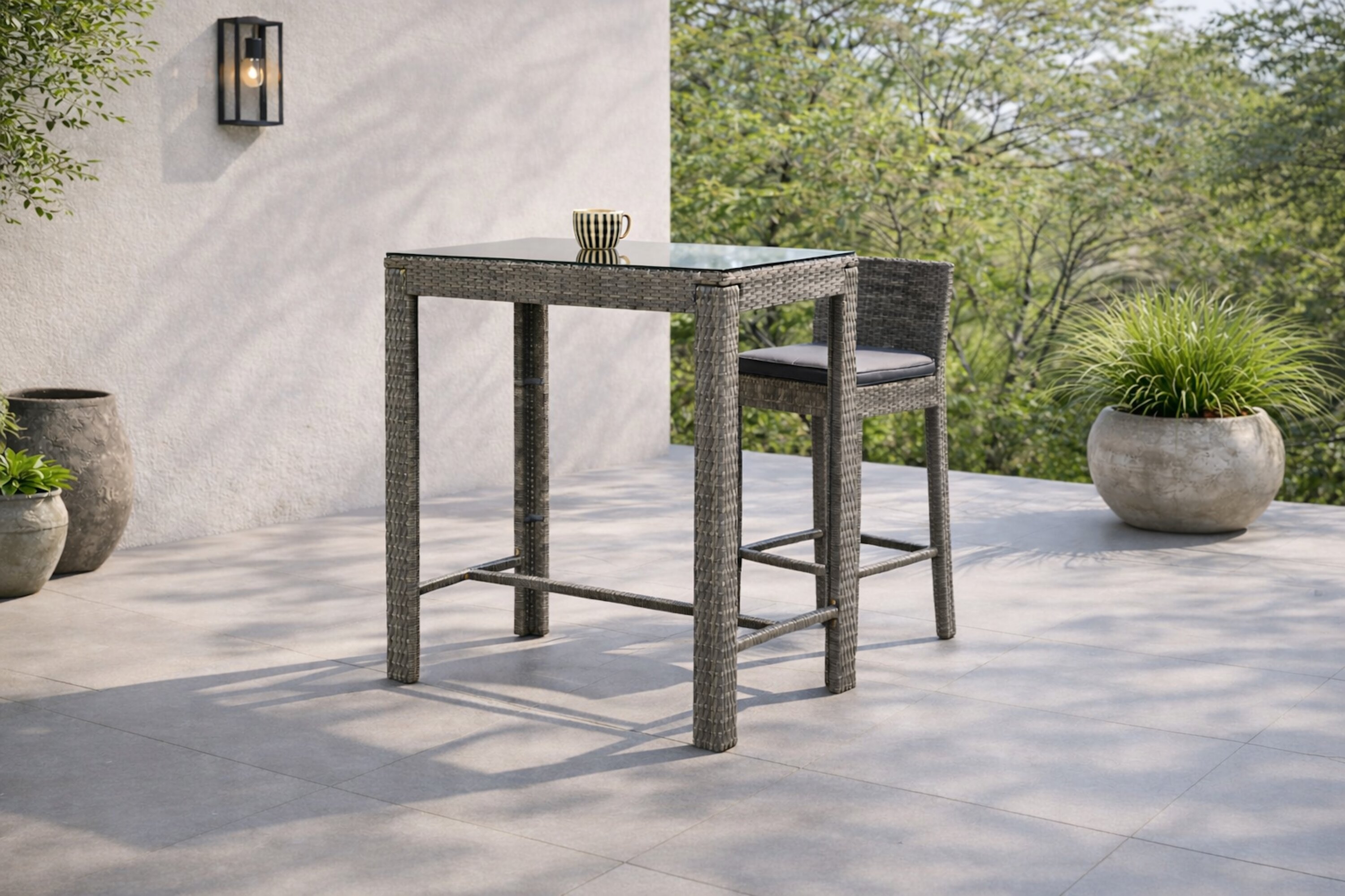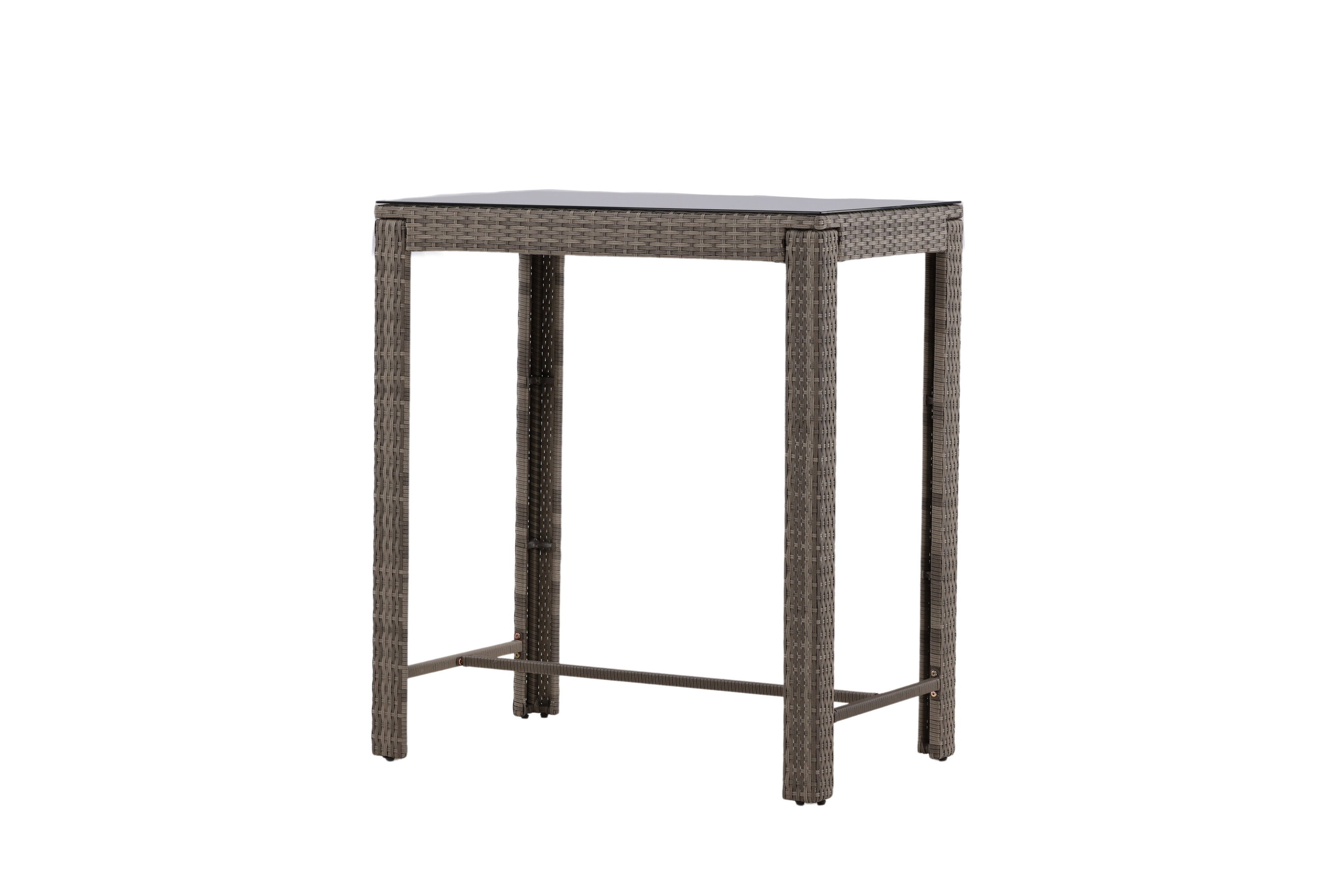 Baarilaud Alo viib teie terrassi uutesse kõrgustesse! Sellel baarilaual on vastupidav kunstrotangist materjal, stiilne disain ja klassikaline sirgete põhjamaiste vormidega disain. Pealmine plaat on valmistatud klaasist ja annab stiilse elegantsi. Sobitage sama sarja baaripukkidega ja hankige komplektne söögigrupp suviseks õueeluks!