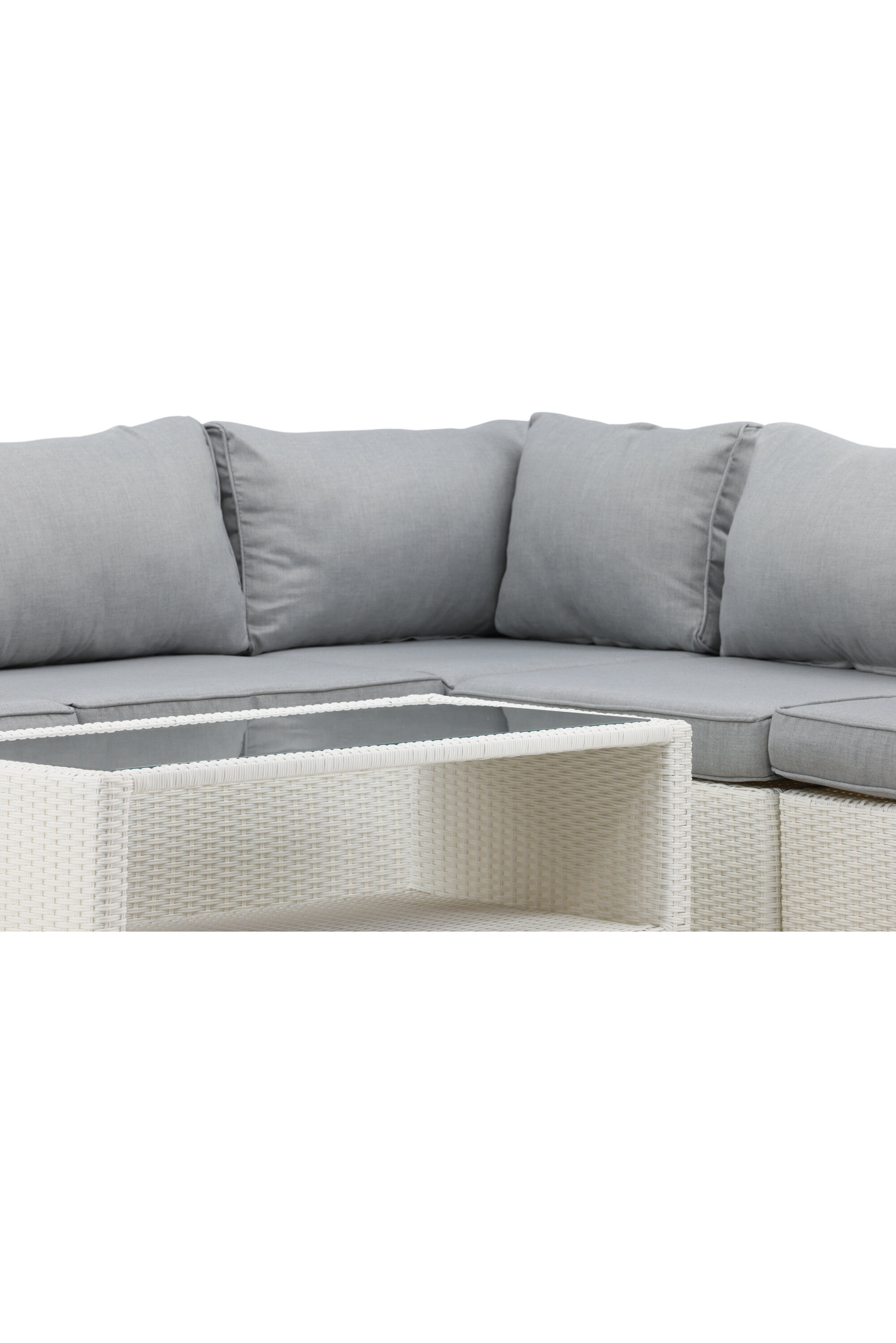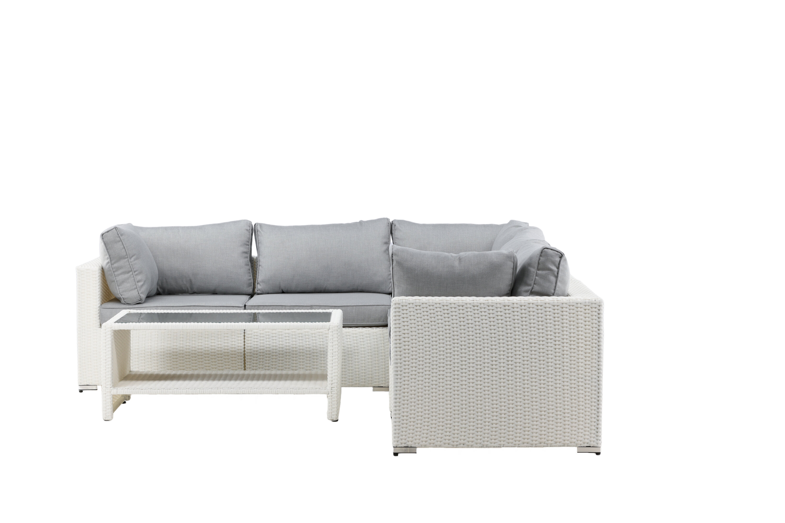 Amazon Sofa Group avaldab muljet oma kaasaegse disainiga, mis keskendub teie siseõue või terrassi heale mugavusele. Diivanigrupp koosneb moodulkujul nelja istmega nurgadiivanist ja nurgaosast, mida on lihtne vastavalt oma vajadustele kokku ehitada. Komplekti kuuluvad nii pehmed tumehallid pehmed padjad kui ka sobiv, madalam klaasist lauaplaadiga kohvilaud. Valmistatud metallraamist ja valgest kunstrotangist – kaks vastupidavat materjali, mis sobivad suurepäraselt õues kasutamiseks! Olge sel suvel valmis silmapaistvaks ööeluks.