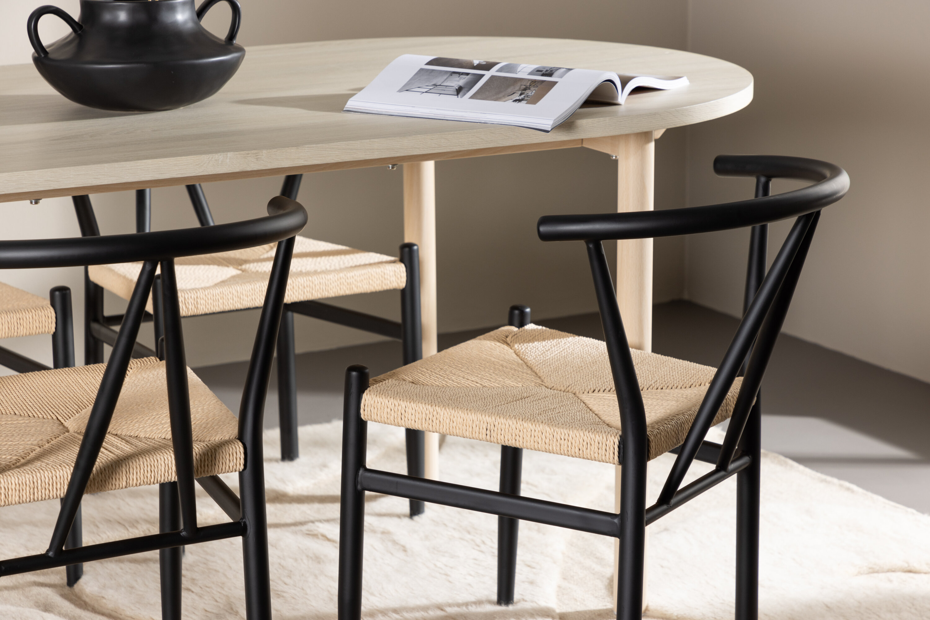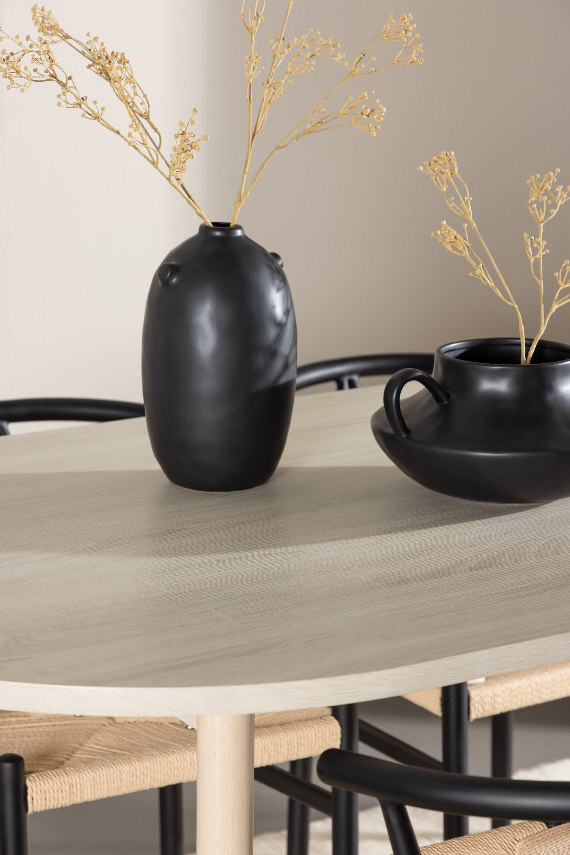 Avastage oma koju täiuslik söögikomplekt Andy söögilaua ja Alfonsi söögitoolidega. Andy söögilaud on teie söögitoa või köögi ajatu funktsioon. Valge lubjatud värviga annab see ruumile maalähedase ja neutraalse tunde. Laua terasest jalad ja MDF lauaplaat ühendavad elegantse ja vastupidavuse, muutes selle usaldusväärseks mööbliesemeks paljudeks aastateks. Suurte mõõtmetega 180×90 cm on perel ja sõpradel piisavalt ruumi laua taha koguneda ning head toitu ja meeldivat seltskonda nautida. Andy loob rahuliku ja pingevaba õhkkonna, mis sobib suurepäraselt erinevate interjööri stiilidega. Täiendage oma söögilauda Alfonsi söögitoolidega, mis ühendavad elegantselt stiili ja funktsionaalsuse. Beežist rotangist istme ja mustast terasest raamiga Alfons annab teie söögilauale ajatu ja klassikalise tunde. Toolid ei paku mitte ainult mugavat kohta istumiseks ja einete nautimiseks, vaid annavad ka võimaluse luua laua ümber kogukonnatunnet. Tugev konstruktsioon ja tugev materjal muudavad Alfonsi valmis taluma paljusid õhtusööke ja koosviibimisi tulevikus. Oma elegantse disainiga sobib Alfons erinevate interjööri stiilidega ja lisab teie kodule elegantsi. Andy oma interjöörile lihtsat elegantsi Andy söögilaua ja Alfonsi söögitoolidega – ideaalne kombinatsioon mälestuste loomiseks ja lähedastega heade hetkede jagamiseks.
