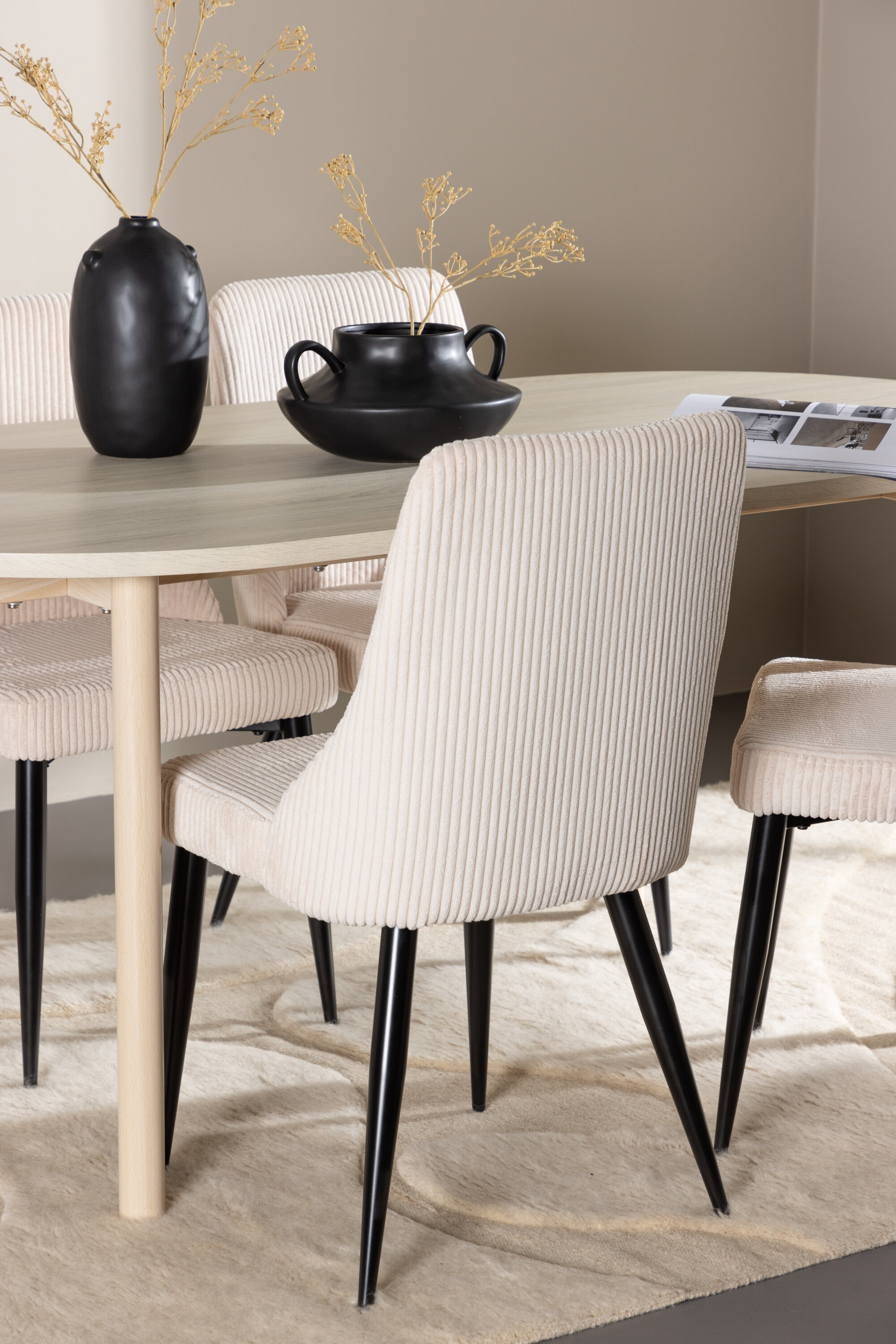 Leone söögitool ja Andy söögilaud moodustavad koos täiusliku söögikomplekti, mis ühendab elegantselt stiili ja mugavuse. Tool on FSC®-sertifikaadiga (FSC®C177288), mis tähendab, et see koosneb vastutustundlikust metsandusest, inimeste ja keskkonnaga arvestavast metsandusest pärit puidust. Leone on valmistatud pehmest sametist terasest jalgadega, pakkudes täiuslikku tasakaalu funktsiooni ja esteetika vahel. Pehme beež värv annab sooja ja kutsuva tunde ning lihtne disain muudab tooli mitmekülgseks ja sobib erinevate interjööri stiilidega. Leone abil on lihtne luua ühtne ja harmooniline atmosfäär teie söögikoha ümber, olgu see siis igapäevasteks söögikordadeks või erilistel puhkudel. Valgeks lubjatud värviga Andy söögilaud loob teie söögituppa või kööki maalähedase ja neutraalse tunde. Laua terasest jalad ja MDF lauaplaat ühendavad elegantsi vastupidavusega, muutes selle usaldusväärseks mööbliesemeks paljudeks aastateks. Suurte mõõtmetega 180×90 cm on perel ja sõpradel piisavalt ruumi laua taha koguneda ning head toitu ja seltskonda nautida. Leone söögitool ja Andy söögilaud koos pakuvad teie koju stiilse ja funktsionaalse lahenduse, muutes iga toidukorra nauditavaks kogemuseks. Selle ajatu söögikomplektiga saate oma sisekujundusele lihtsat elegantsi anda.