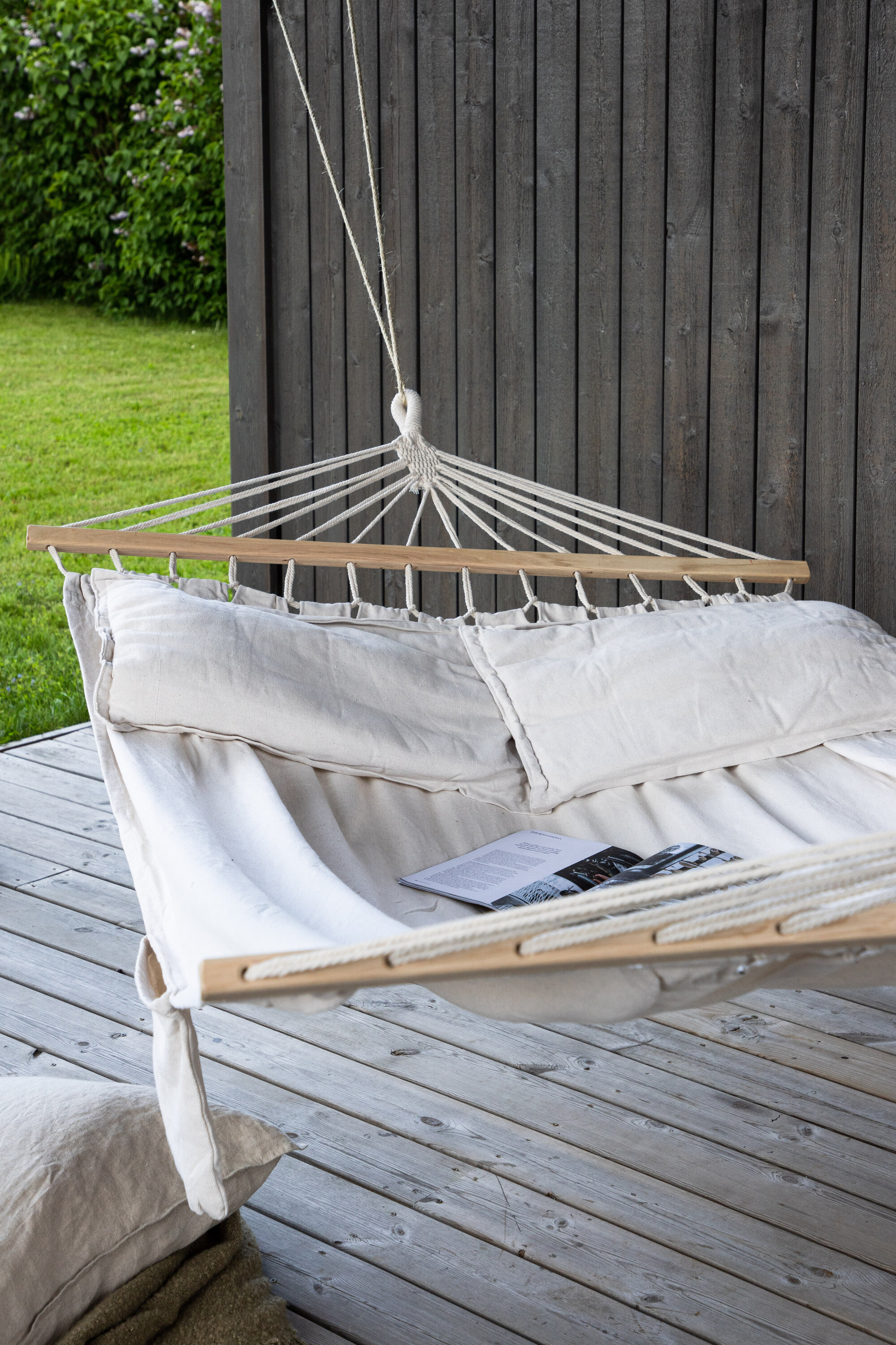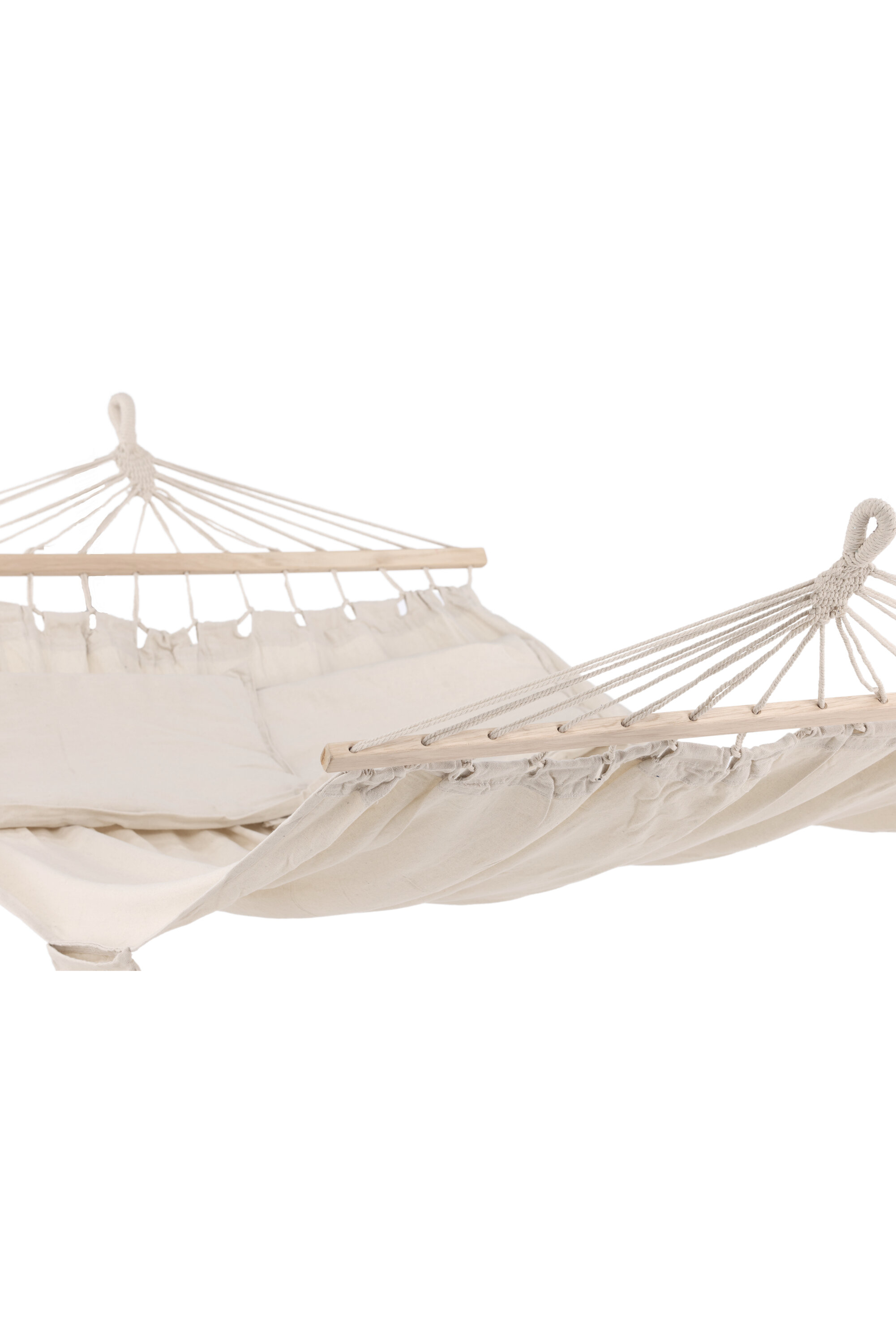 Anini – meie populaarne moodsa disaini ja kutsuva disainiga võrkkiik! See võrkkiik pakub vastupidavate materjalide ja stiilse stiiliga mõlema maailma parimat. Valmistatud pehme valge värvi puuvillast ja polüesterkangast, mille mõlemas otsas on kanga venitamiseks puidust tihvtid. Riputage see oma lemmiknurka ja nautige lõõgastavat aega üksi või koos – siin on ruumi teile mõlemale!