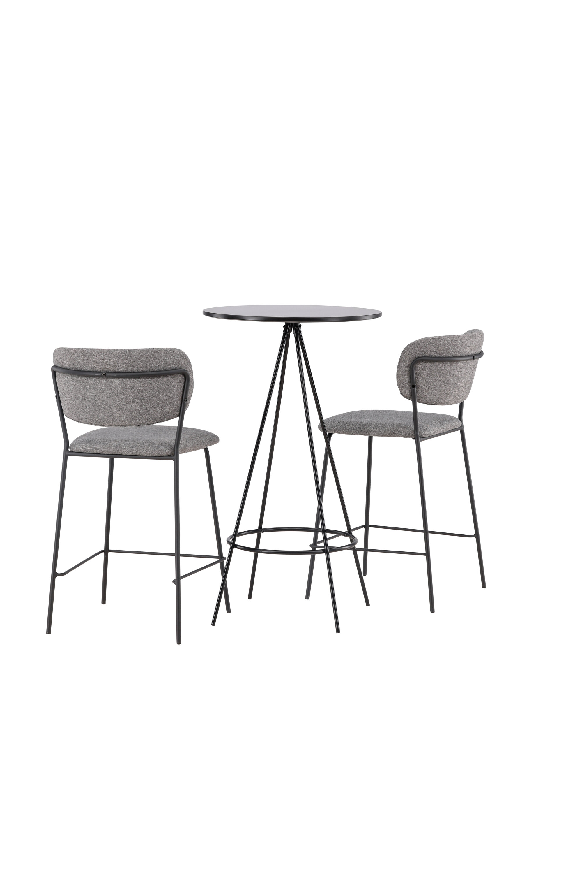 Meeldivates värvides võluv baarigrupp! Bistro baarilaual on minimalistlik, skandinaavialik disain ja ümmargune lauaplaat mustast spooniga MDF-st. Õhulised koonusekujulised lauajalad on kergelt laienevad mustast metallist ja neil on integreeritud raam jalatoe jaoks. Siin koos Belli sarja hallide baaripukkidega. Toolil on täielikult polsterdatud disain, kergelt ümardatud seljatugi ja iste hallist polüesterkangast, millel on stiilsed dekoratiivsed õmblused. Tooli jalad on kitsad mustast terasest integreeritud jalatoega. Õhuke disain jätab õhulise mulje! Laua mõõdud: 60 cm.