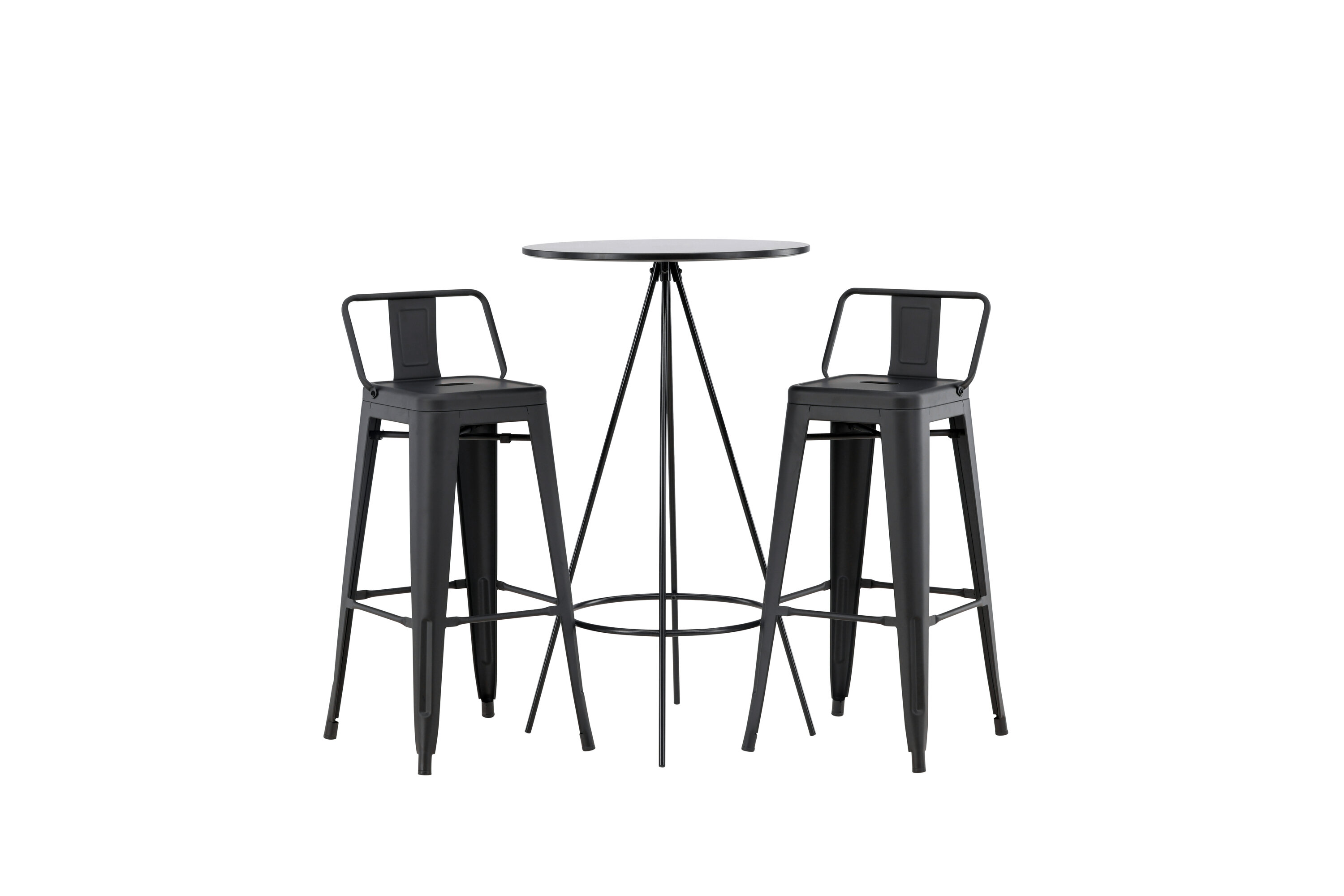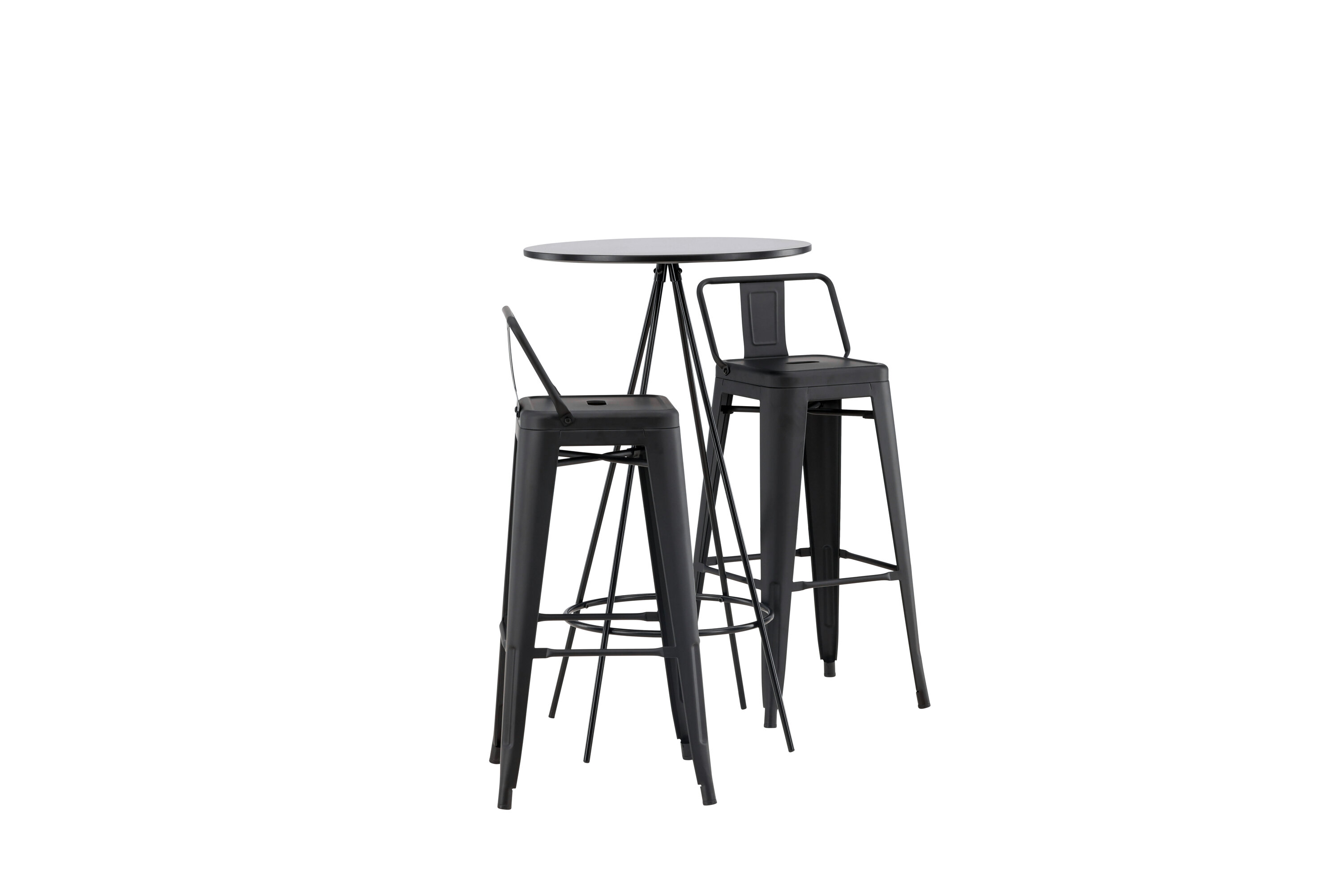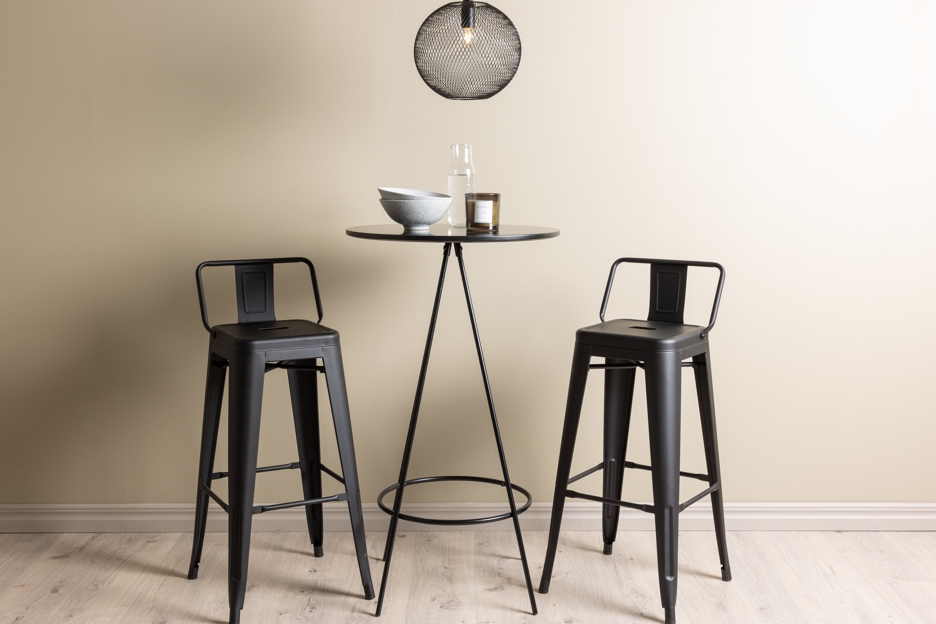 Ideaalne kombinatsioon! Bistro baarilaual on minimalistlik, skandinaavialik disain ja ümmargune lauaplaat mustast spooniga MDF-st. Õhulised koonusekujulised lauajalad on kergelt laienevad mustast metallist ja neil on integreeritud raam jalatoe jaoks. Siin suurepärases kombinatsioonis Tempe sarja baaripukkidega. Toolil on klassikaline disain kõrgemast taburetist, millel on kergelt laienevad jalad ja iste, millel on madalam mustast terasest seljatugi ja integreeritud jalatugi. Loo oma koju stiilne pilgupüüdja! Laua mõõdud: 60 cm.