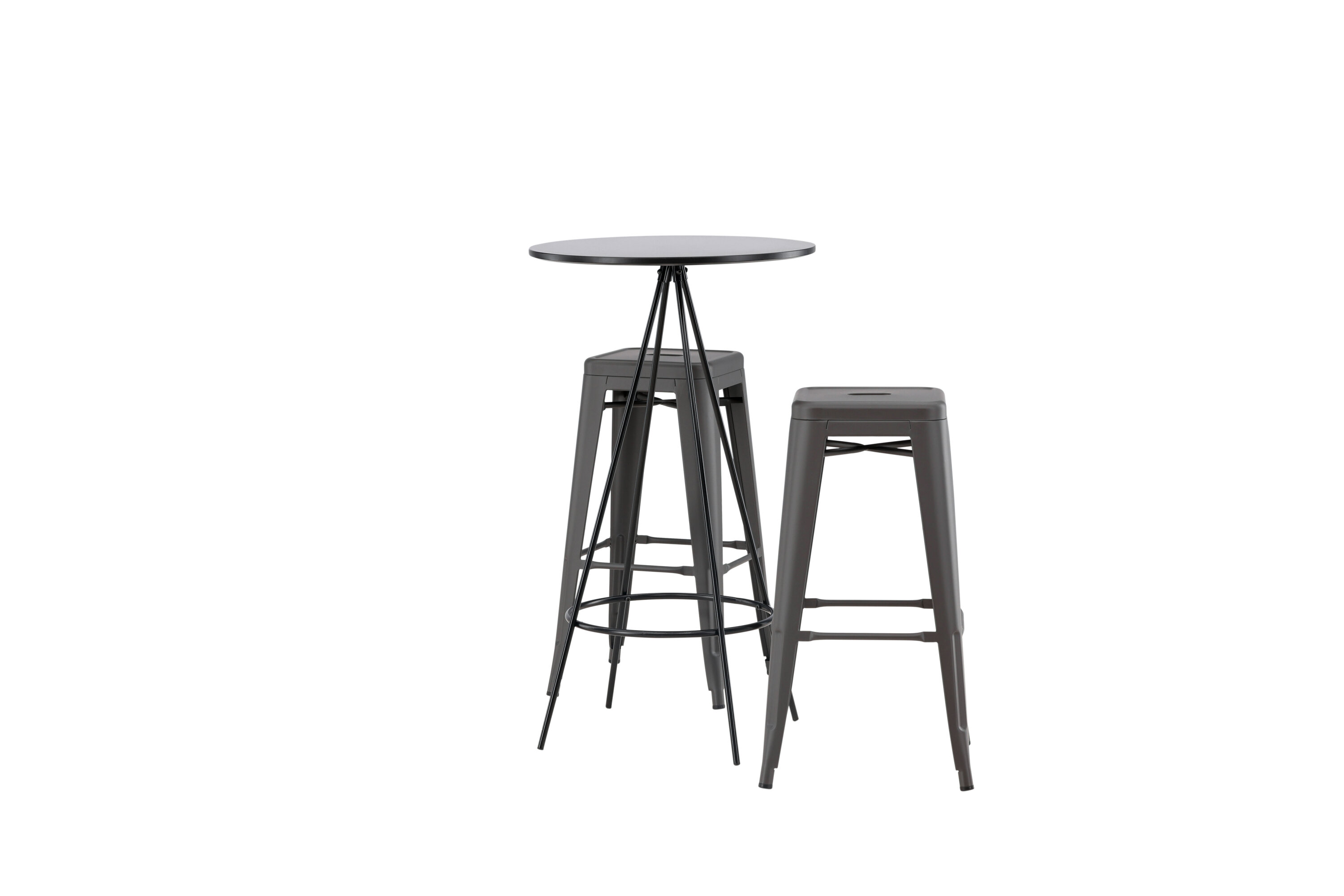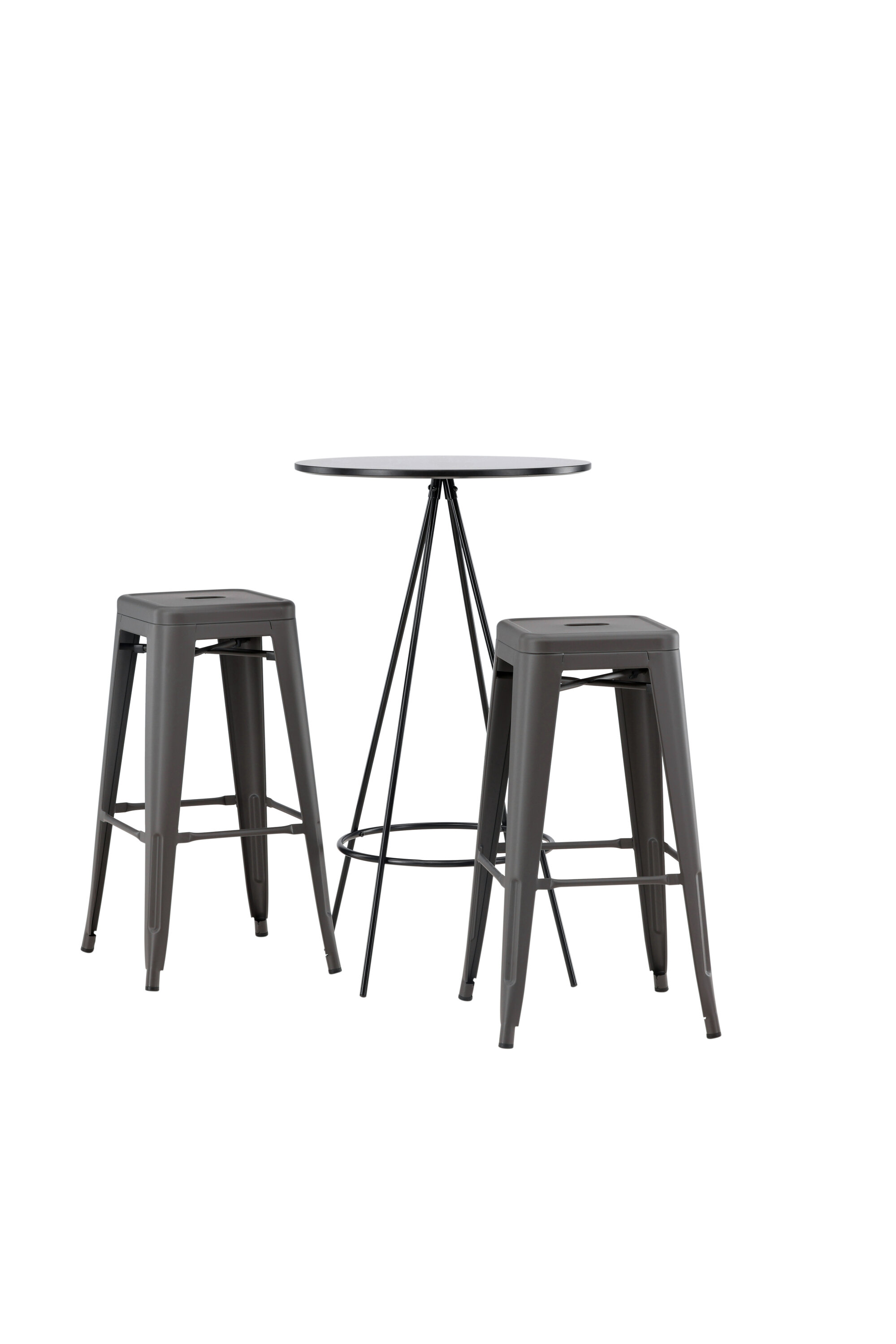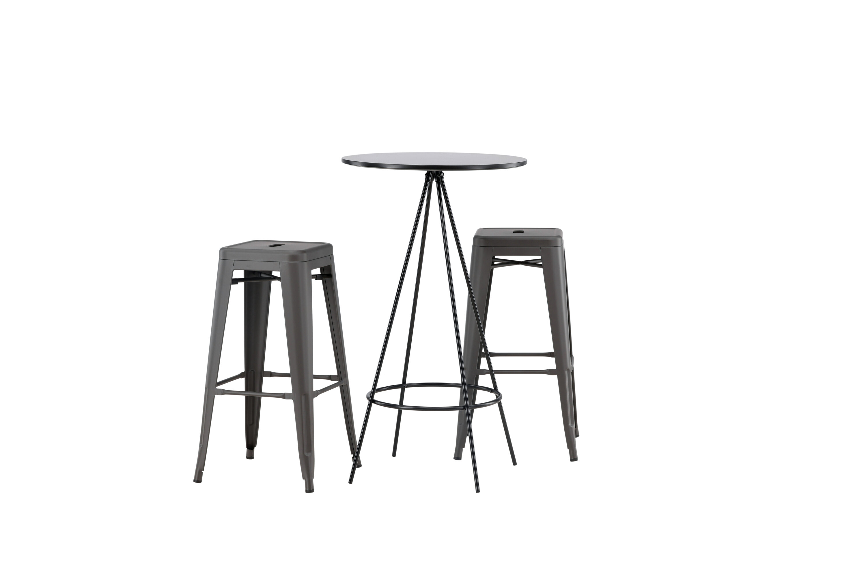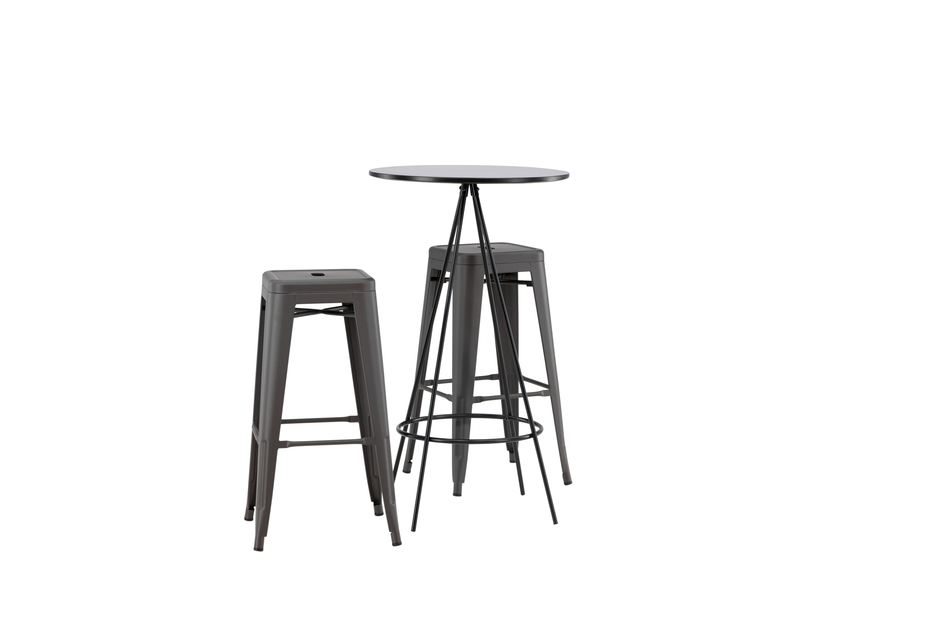 Milline vaatepilt! Bistro baarilaual on minimalistlik, skandinaavialik disain ja ümmargune lauaplaat mustast spooniga MDF-st. Õhulised koonusekujulised lauajalad on kergelt laienevad mustast metallist ja neil on integreeritud raam jalatoe jaoks. Siin täiuslik kombinatsioon Tempe sarja hallide baaripukkidega. Toolil on klassikaline disain kõrgemast taburetist, millel on kergelt laienevad jalad ja iste tumehallist terasest ning jalatugede raam. Siin viiakse teie sisekujundus uuele tasemele! Laua mõõdud: 60 cm.