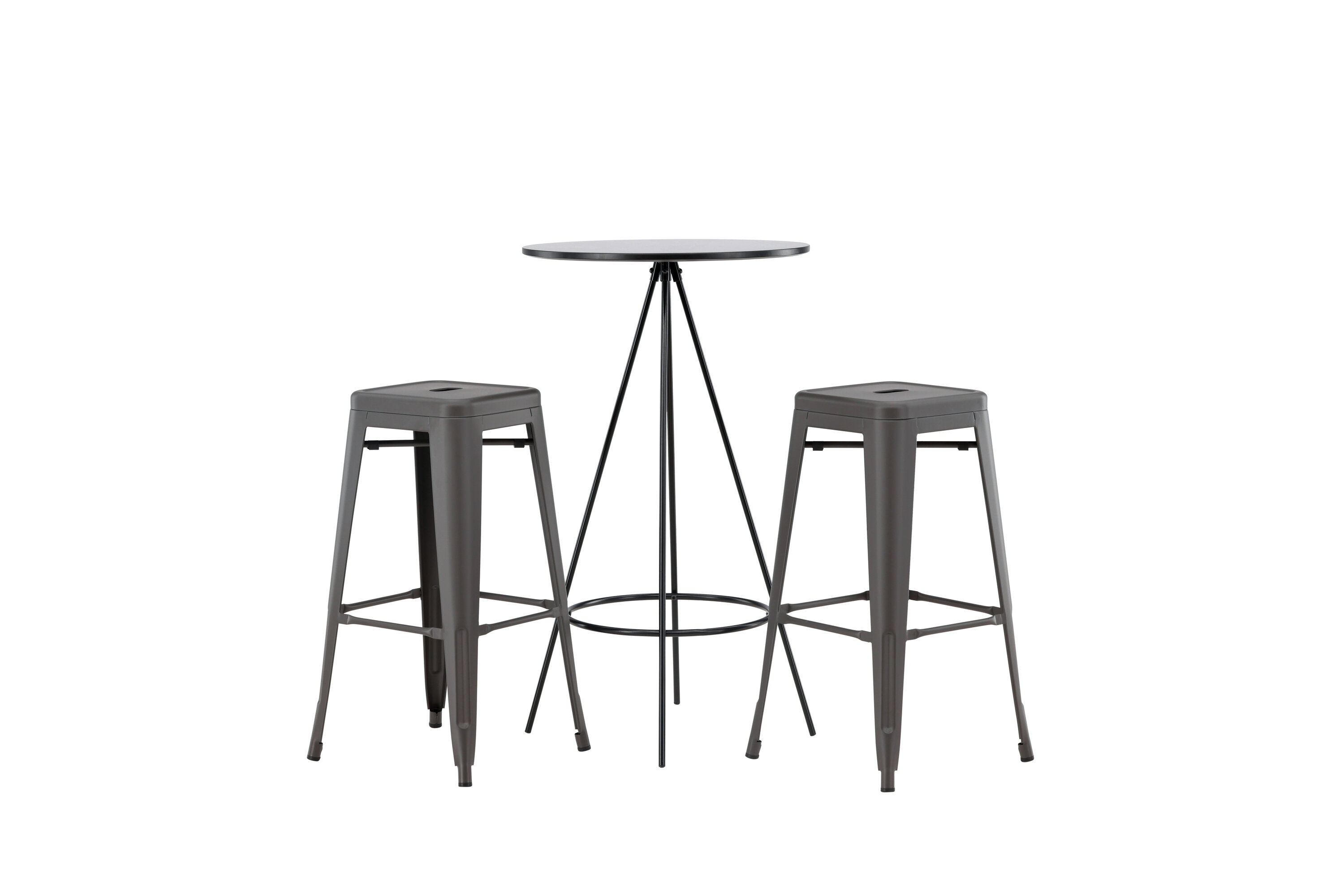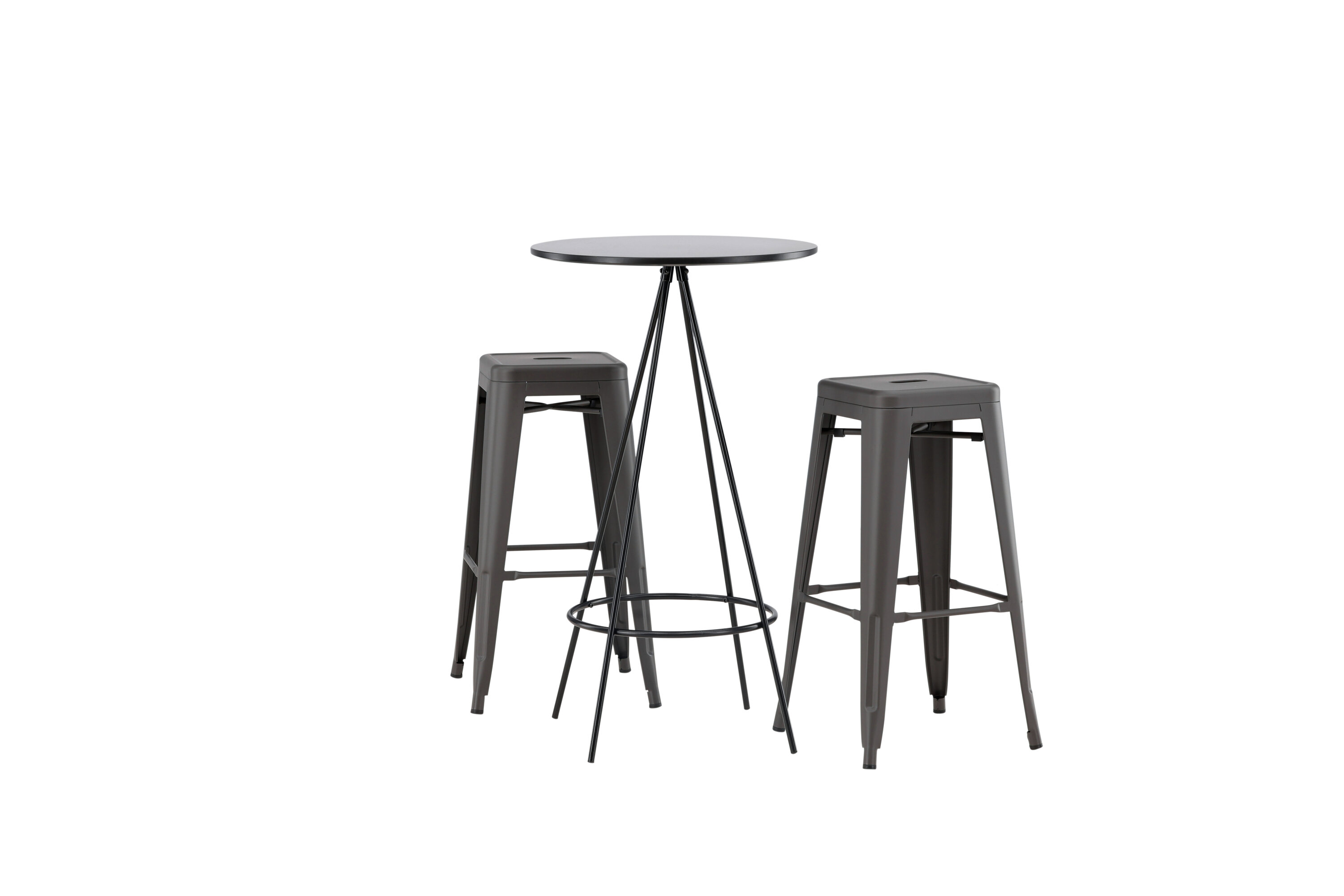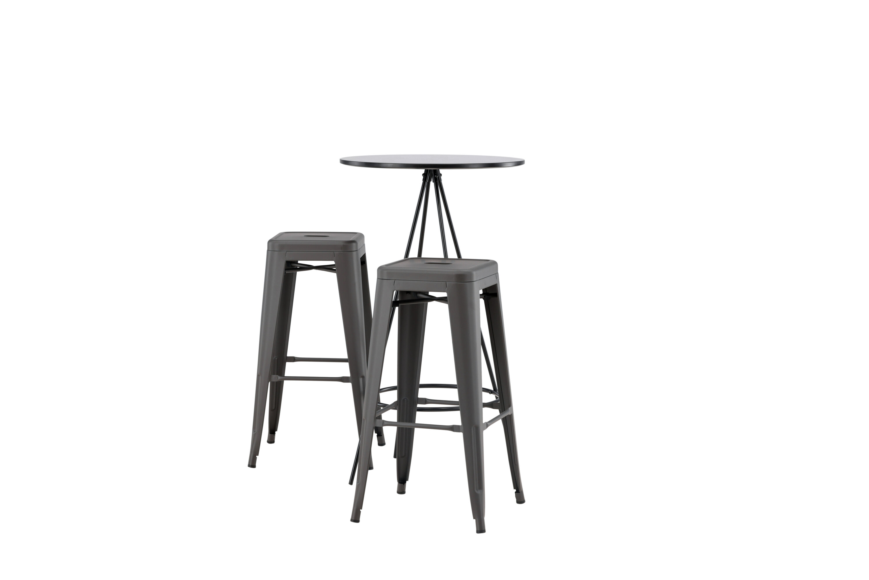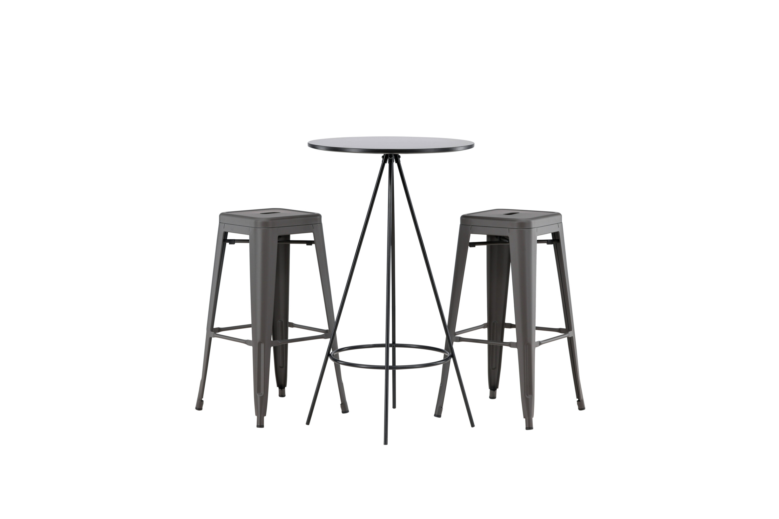 Milline vaatepilt! Bistro baarilaual on minimalistlik, skandinaavialik disain ja ümmargune lauaplaat mustast spooniga MDF-st. Õhulised koonusekujulised lauajalad on kergelt laienevad mustast metallist ja neil on integreeritud raam jalatoe jaoks. Siin täiuslik kombinatsioon Tempe sarja hallide baaripukkidega. Toolil on klassikaline disain kõrgemast taburetist, millel on kergelt laienevad jalad ja iste tumehallist terasest ning jalatugede raam. Siin viiakse teie sisekujundus uuele tasemele! Laua mõõdud: 60 cm.