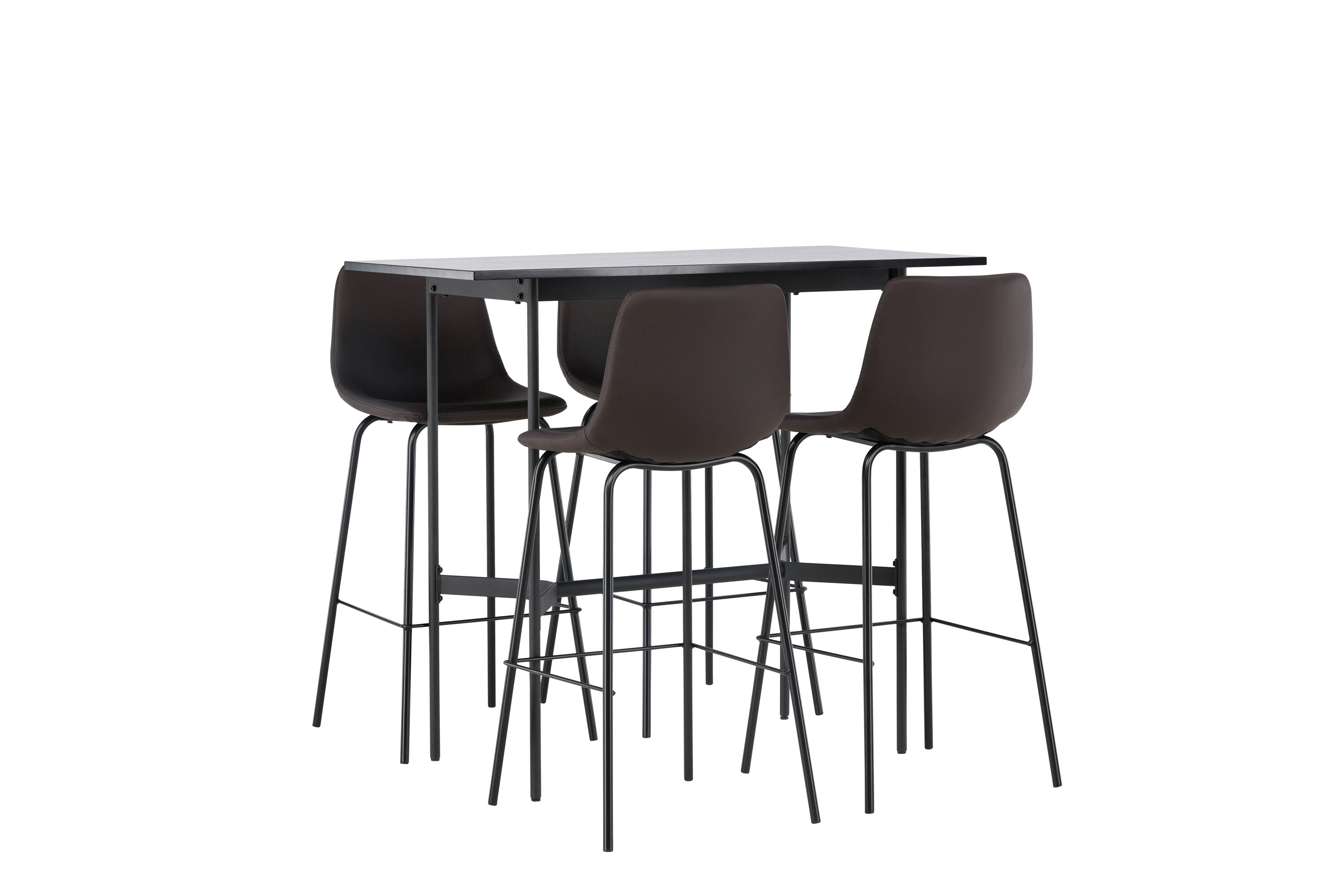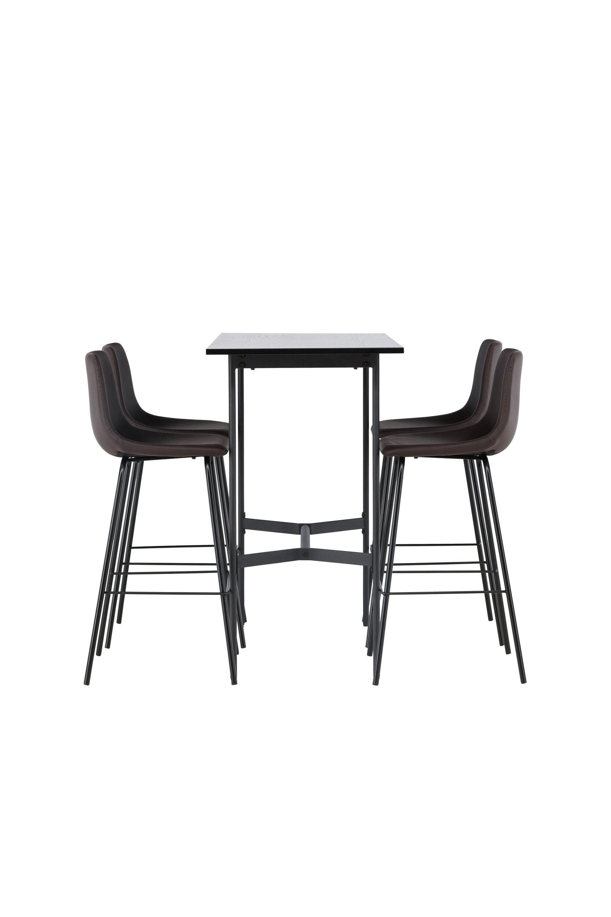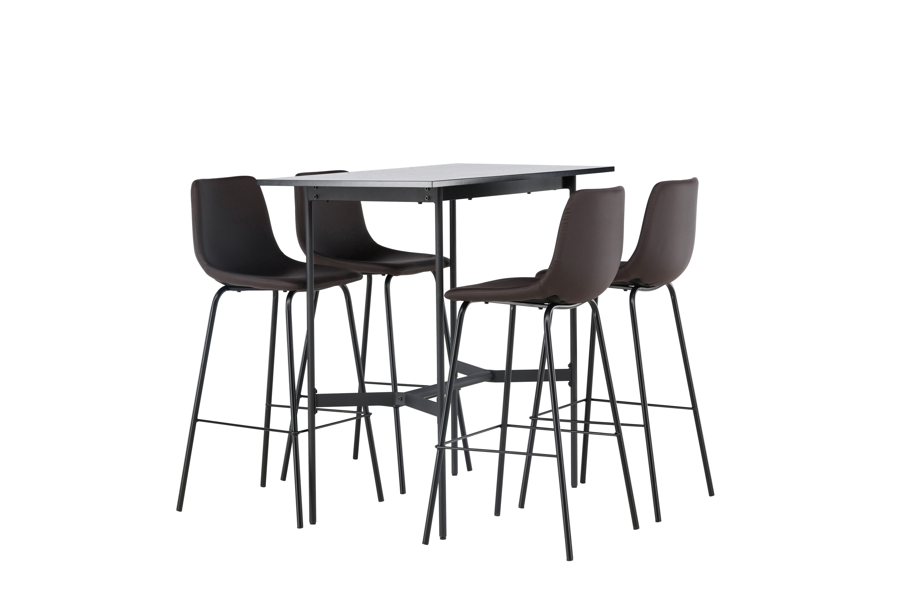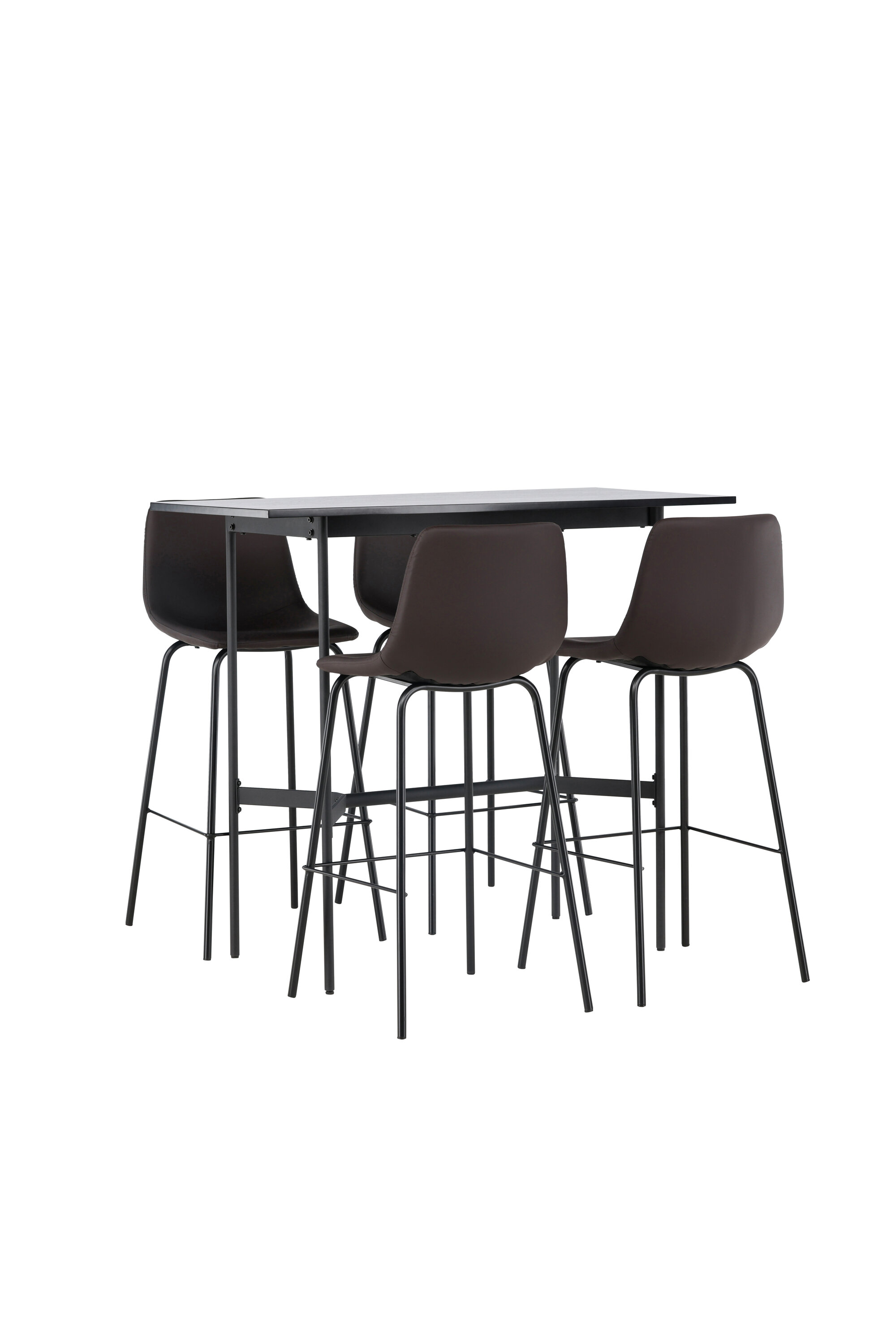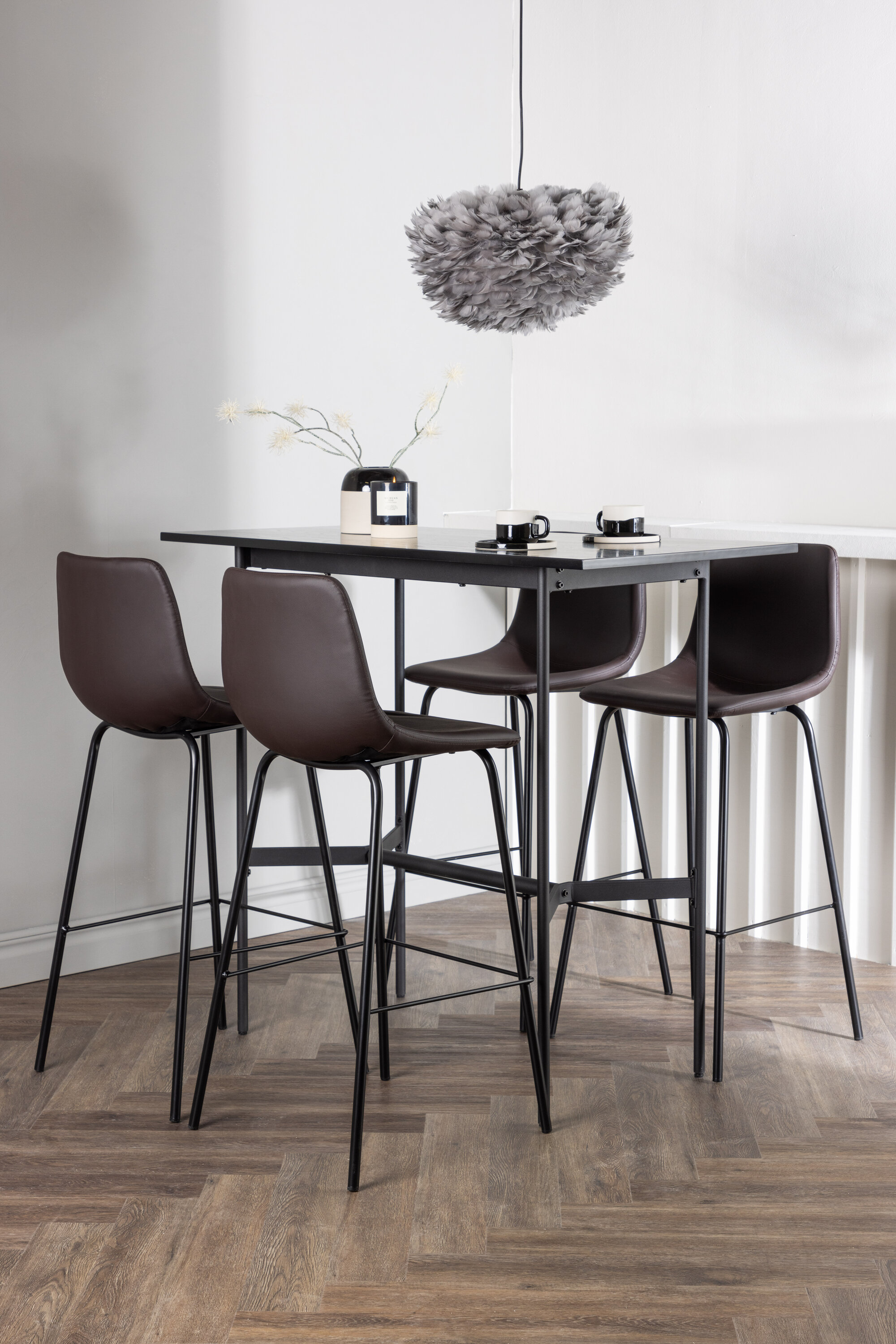 Andke oma sisekujundusele tõuge stiilse baarigrupiga! Minimalistlikul baarilaual Rax on õhuke mustast MDF-plaadist lauaplaat ja kitsad lauajalad koos integreeritud mustast metallist jalatoega. Siin stiilne kombinatsioon Alexi sarja pruunide baaripukkidega. Disain on hästi läbimõeldud: pruunist polsterdatud polüuretaannahast ja polüestrist täielikult polsterdatud tool ning musta pulbervärvitud metallist kitsas jalaasend koos integreeritud jalatoega lisamugavuse tagamiseks. Laua mõõdud: 120x60cm.