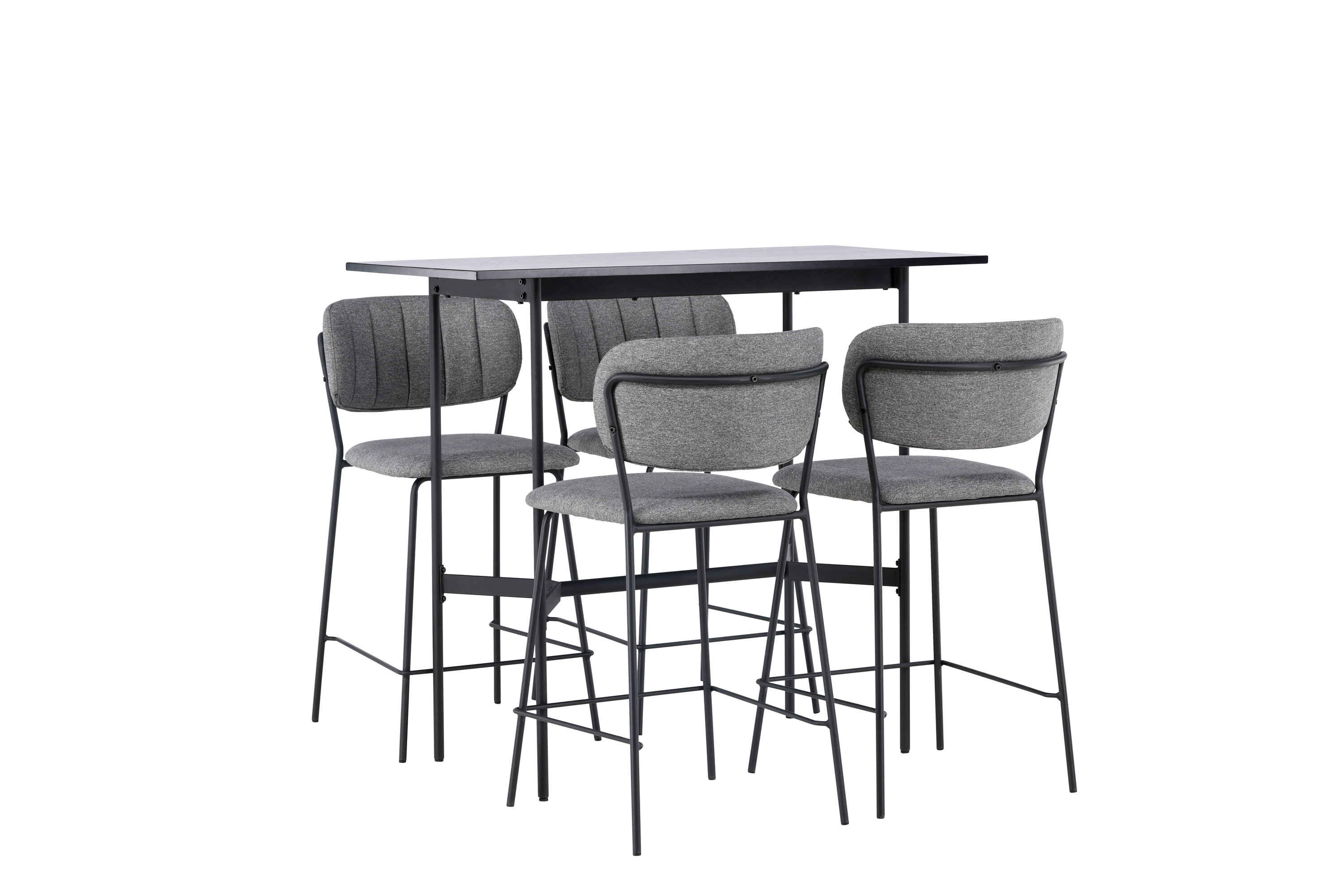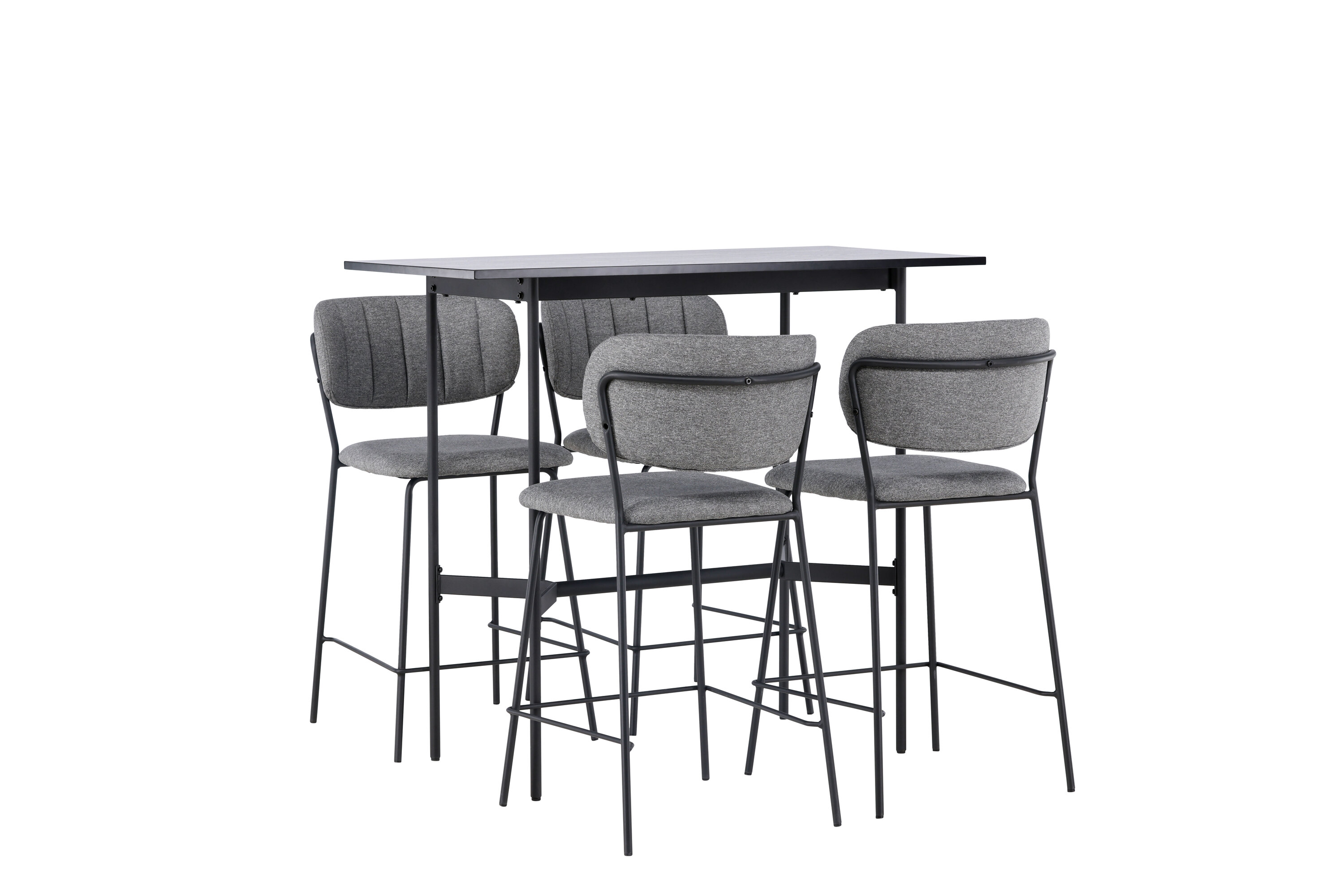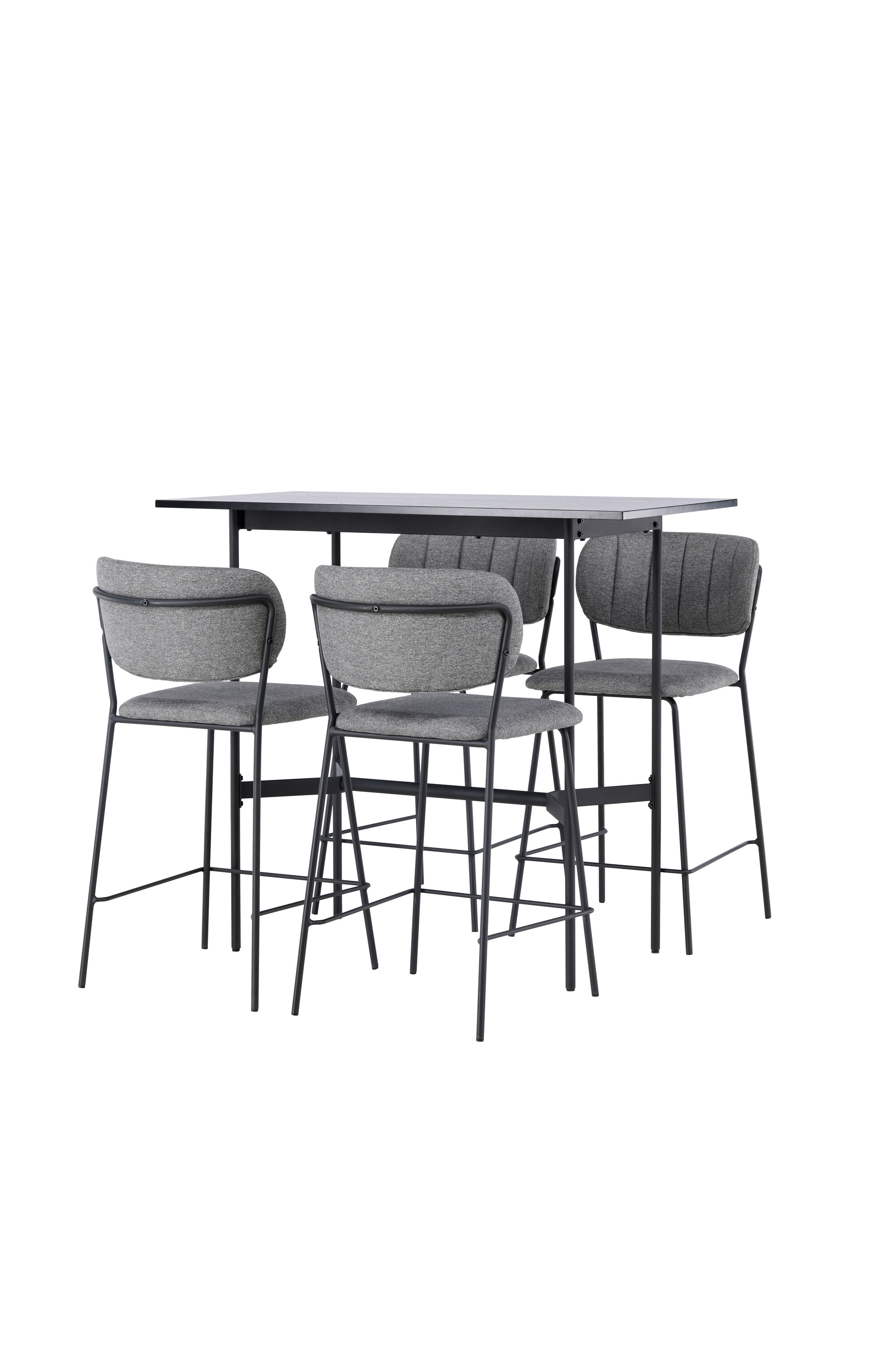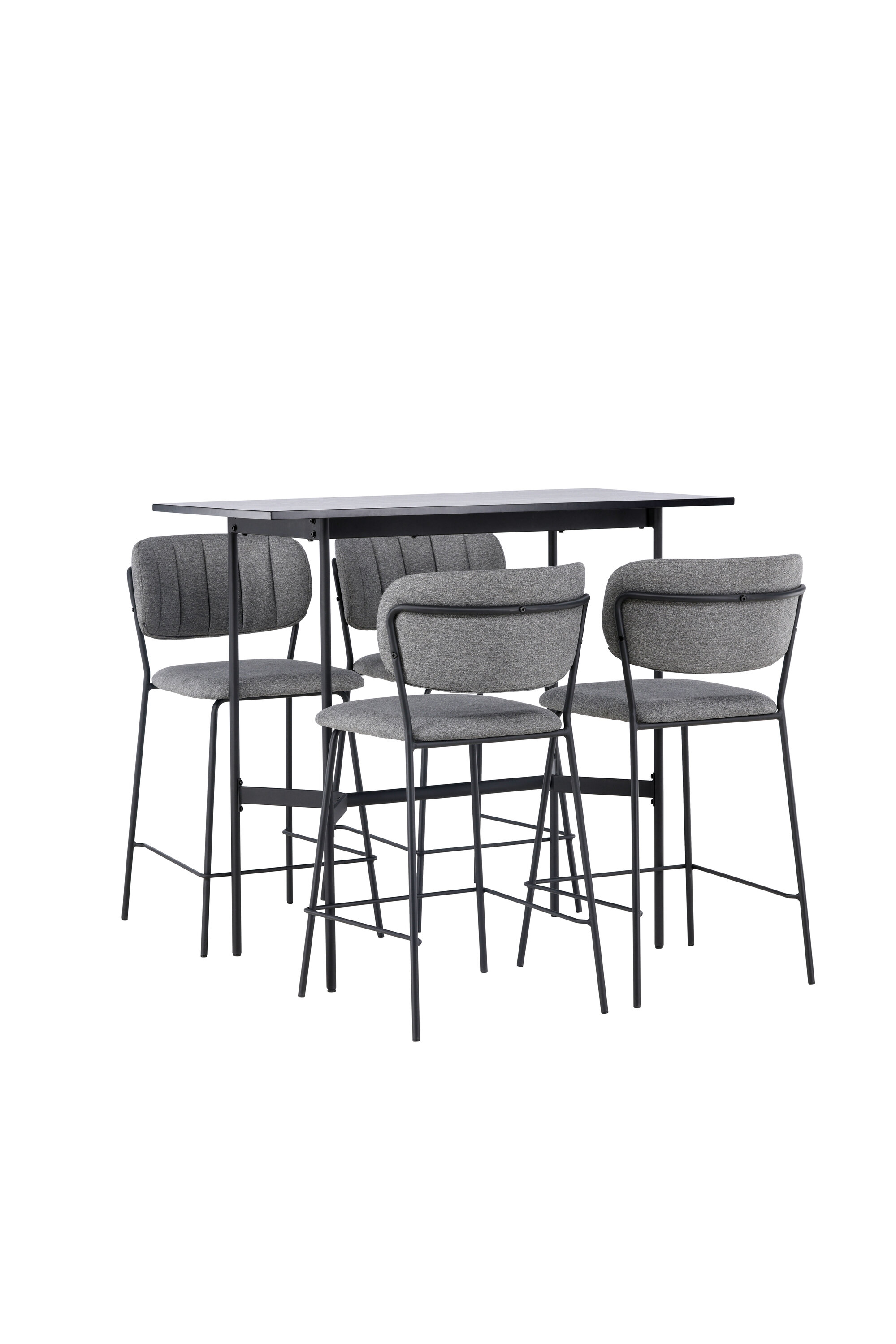 Stiilsed vormid ja skandinaavialik disain – ideaalne kombinatsioon! Minimalistlikul baarilaual Rax on õhuke mustast MDF-plaadist lauaplaat ja kitsad lauajalad koos integreeritud mustast metallist jalatoega. Siin koos Belli sarja hallide baaripukkidega. Toolil on täielikult polsterdatud disain, kergelt ümardatud seljatugi ja iste hallist polüesterkangast, millel on stiilsed dekoratiivsed õmblused. Tooli jalad on kitsad mustast terasest integreeritud jalatoega. Vaevalt see sellest paremaks muutub! Laua mõõdud: 120x60cm.