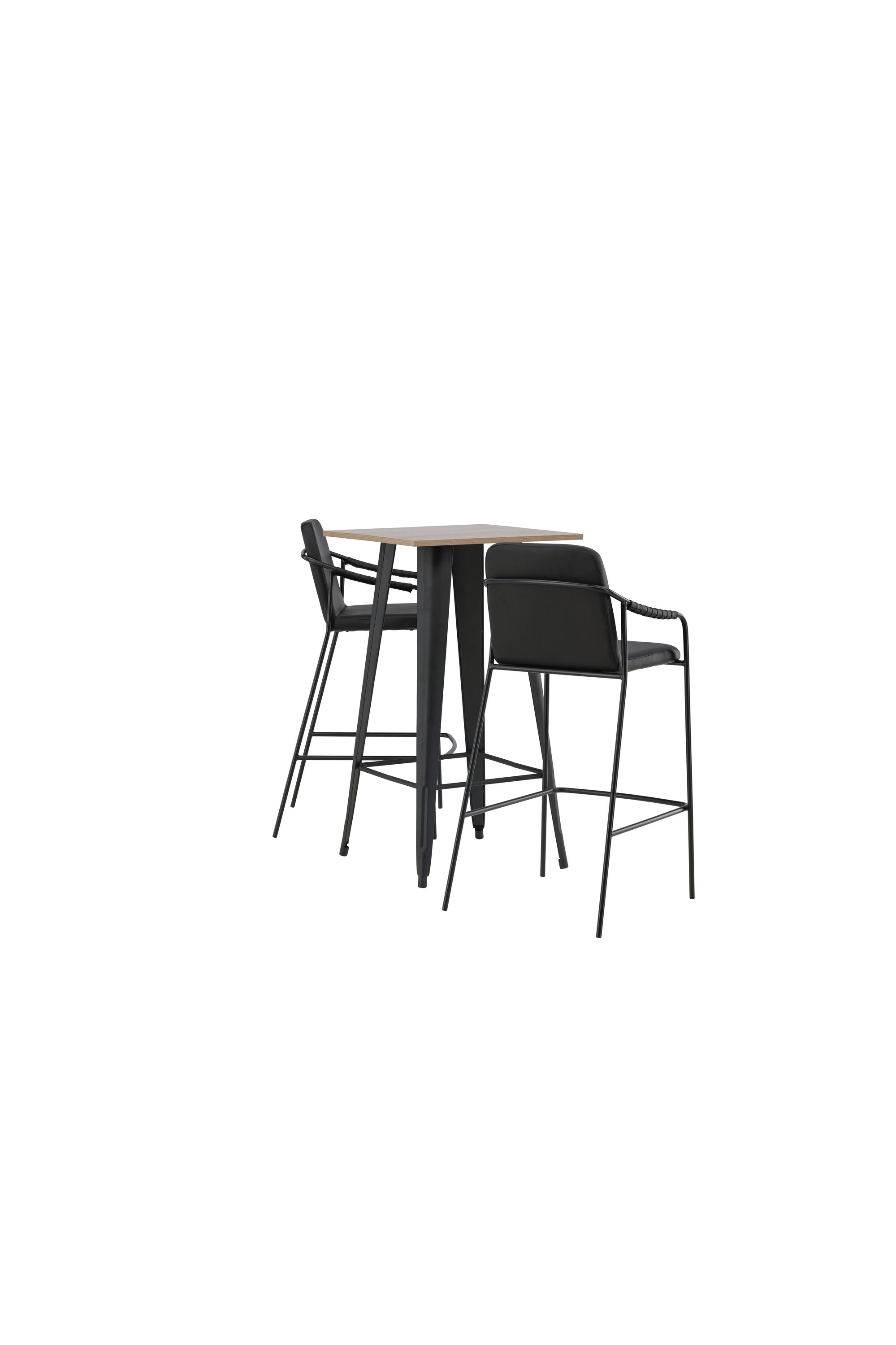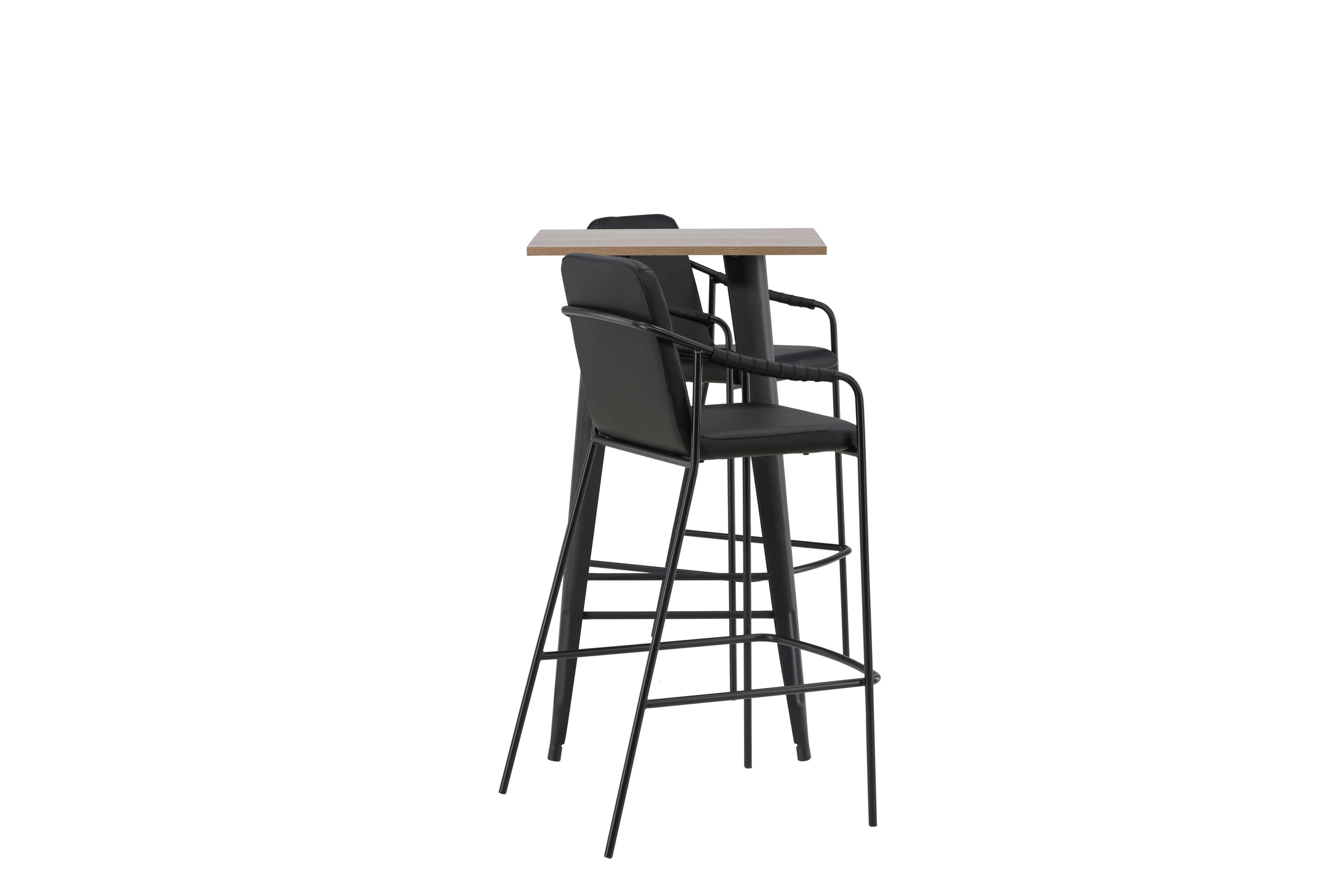 Sisusta väiksem köök nutikalt! Tempe baarilaual on ruudukujuline pähklivärvi MDF-plaadist lauaplaat ja kergelt laienevad mustast metallist lauajalad koos jalatoe raamiga, mis lisab mugavust. Siin koos mustade baaripukkidega sarjast Tvist. Toolil on polsterdatud iste ja täielikult polsterdatud mustast PU-st disain koos minimalistlike toolijalgade ja integreeritud mustast terasest käetugedega. Siin saavutate oma kodus uusi kõrgusi! Laua mõõdud: 60x60cm.