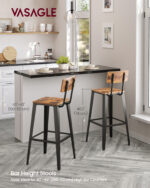 Toote andmed: – Värvus: vintage-pruun-must – Materjal: puitlaastplaat, teras – Tabureti mõõdud: 45,4 x 45,4 x 102,2 cm (S x L x K) – Istme mõõdud: 34 x 34 cm (S x L) – Istme kõrgus (maapinnast): 74 cm – Jalatoe kõrgus (maapinnast): 30,5 cm – Seljatoe kõrgus (istmest): 28,2 cm – Seljatoe mõõdud: 34 x 15 cm (S x L) – Seljatoe kaldenurk: 103° – Tabureti kaal: 13,8 kg – Tabureti maksimaalne staatiline koormus: 136 kg Tarnekomplekt: – 2 x baaritooli – 1 x tarvikute pakett – 1 x juhend