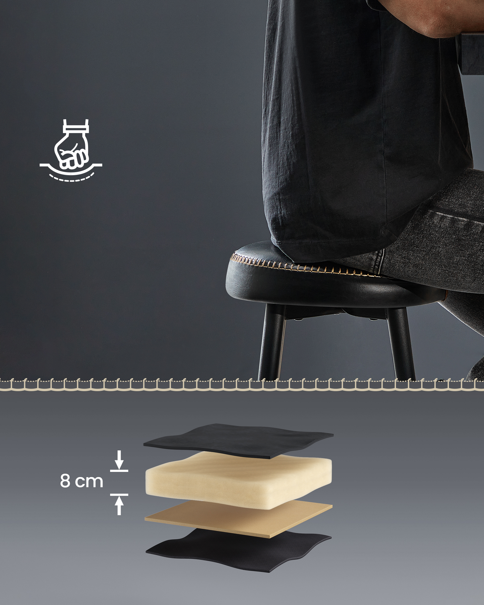 Vineer, PU nahk, käsn, teras |
