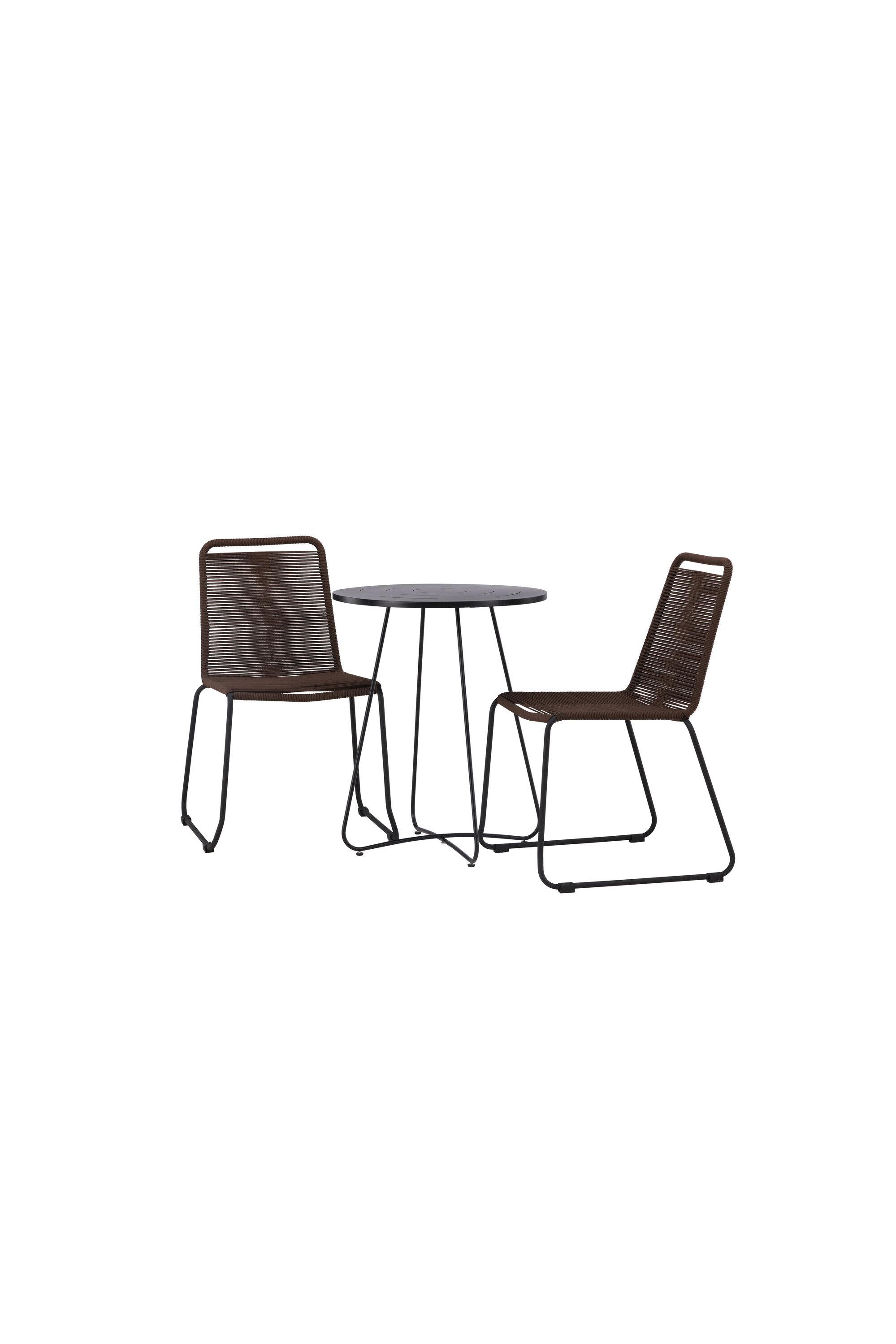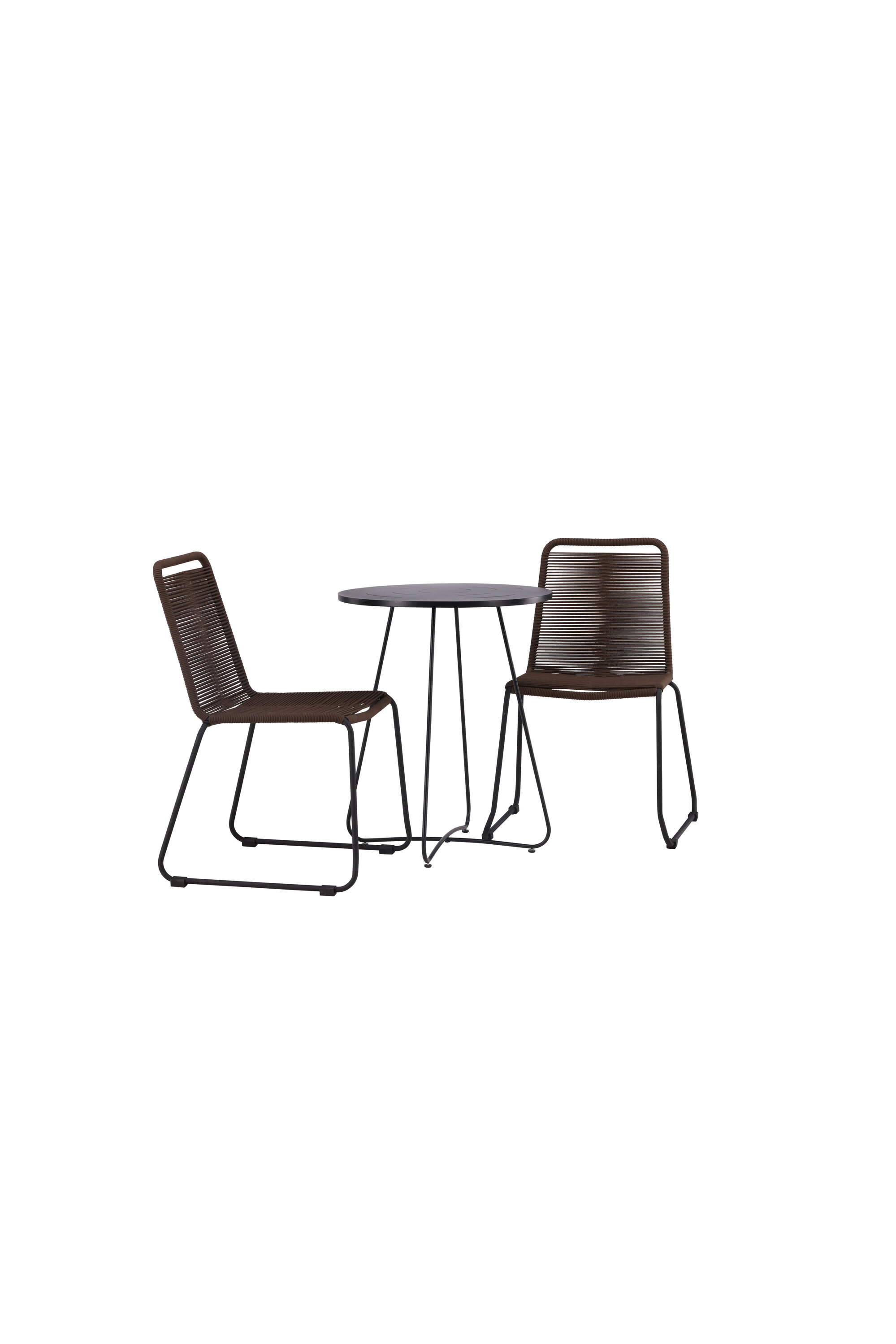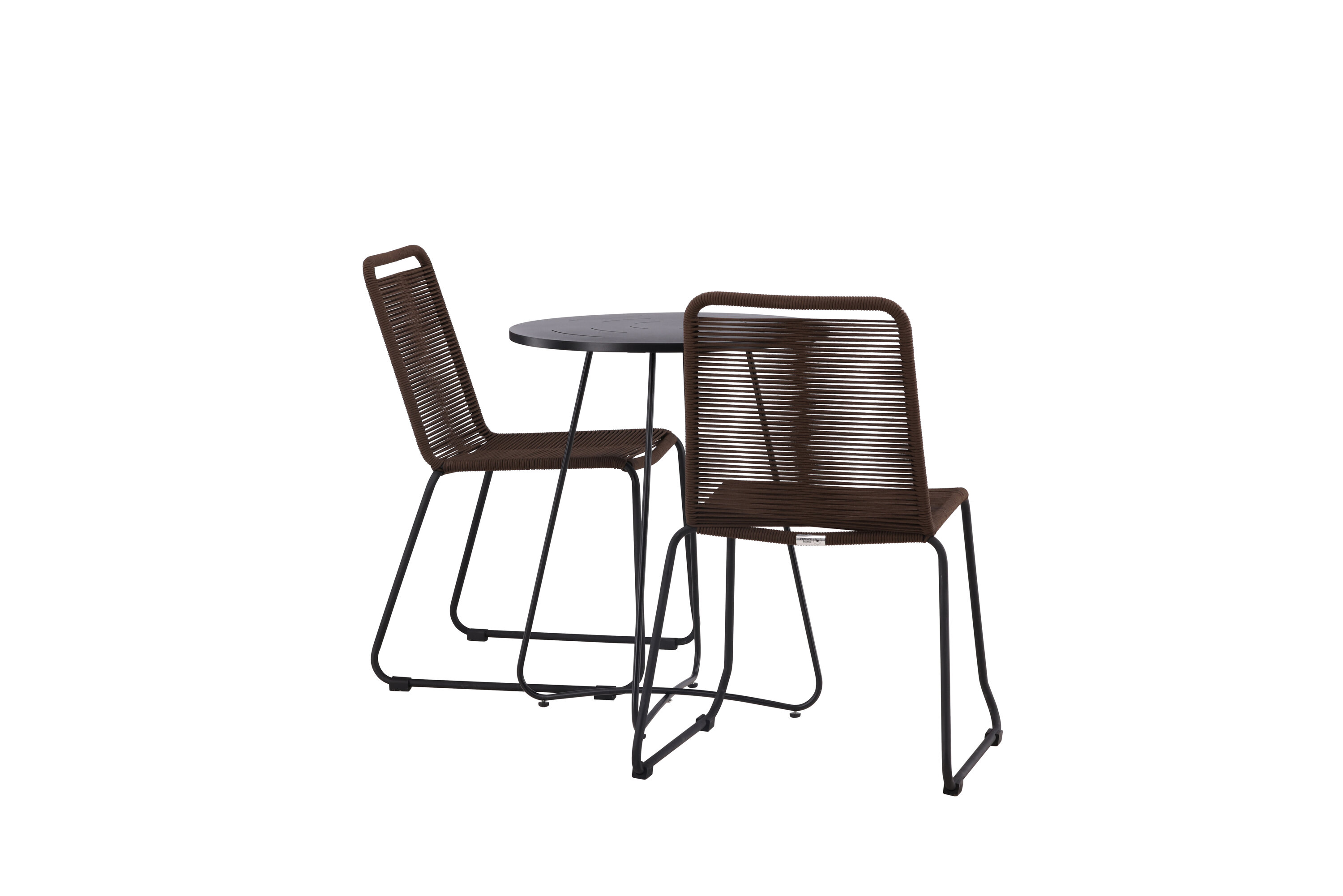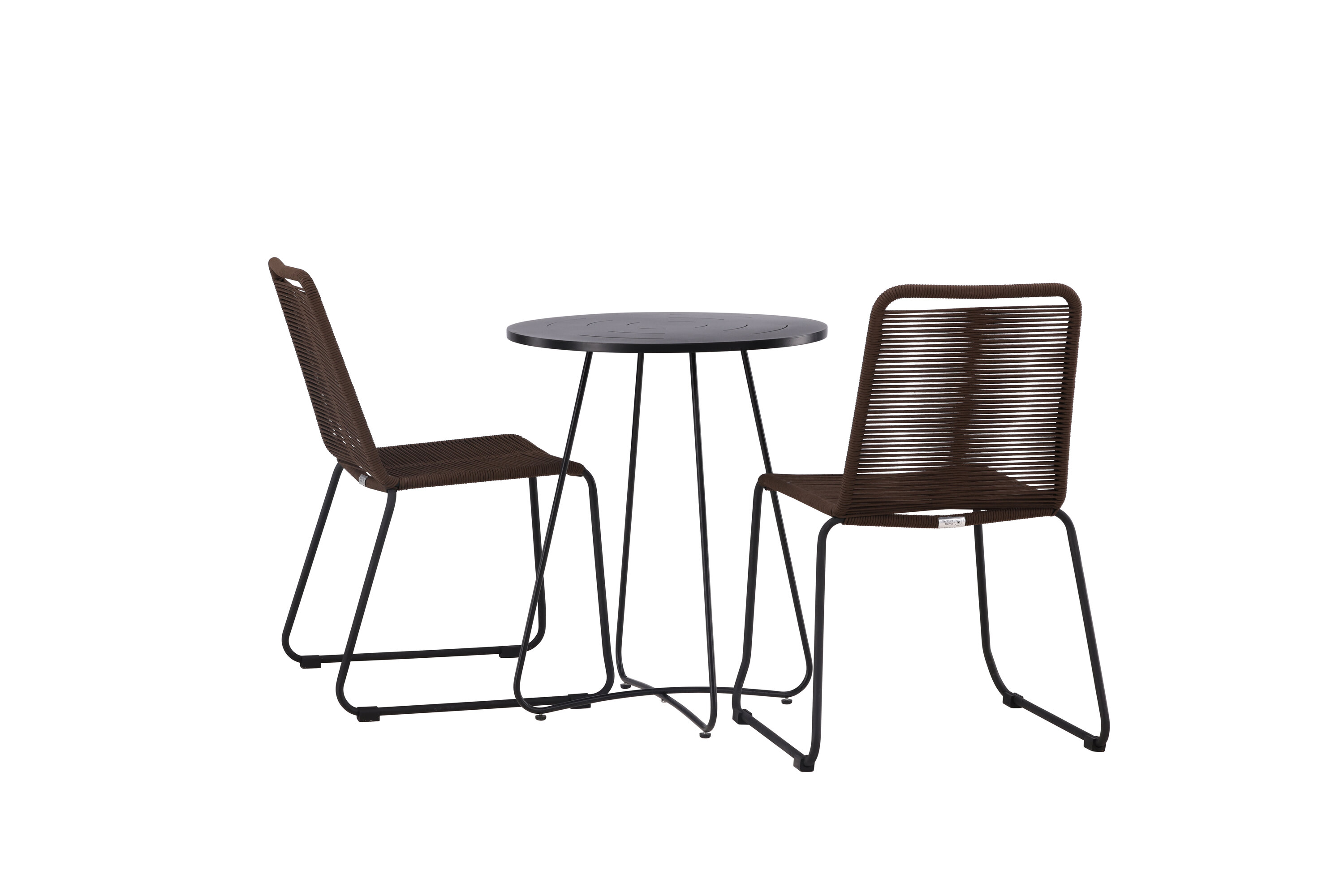 Maalähedane ja kaasaegne – ideaalne kohvikugrupp väikesele rõdule või terrassile! Bacong sarja võluv kohvikulaud on ümara plaadi ja saledate mustast terasest jalgadega. Siin on stiilne kombinatsioon 2 Lindose seeria söögitooliga. Tool on pruuni värvi vastupidavast köiest ja sobib ideaalselt välitingimustes kasutamiseks. Joo sel suvel kohvi õues ja naudi meeldivaid hetki! Laua läbimõõt: 60 cm.