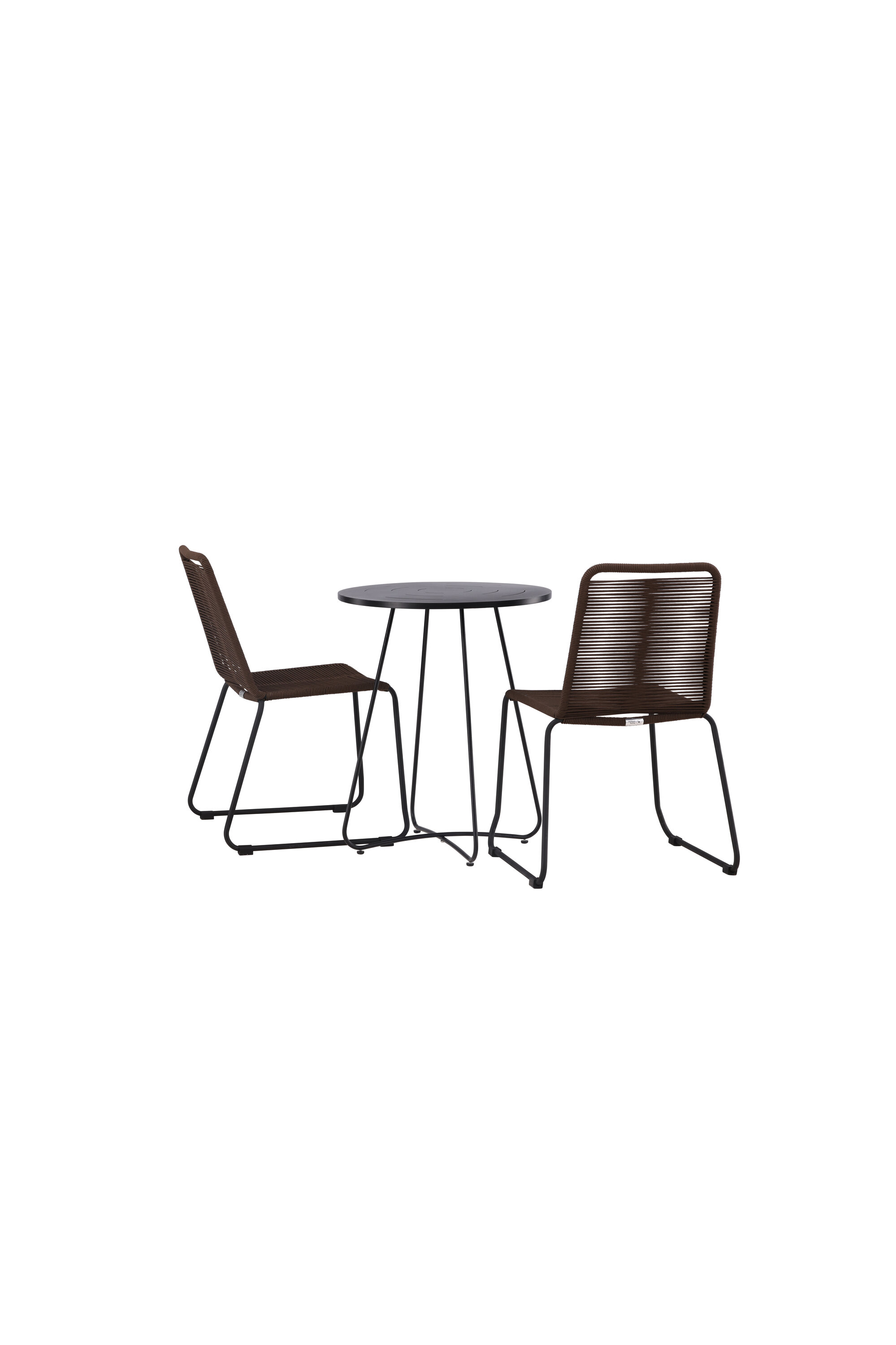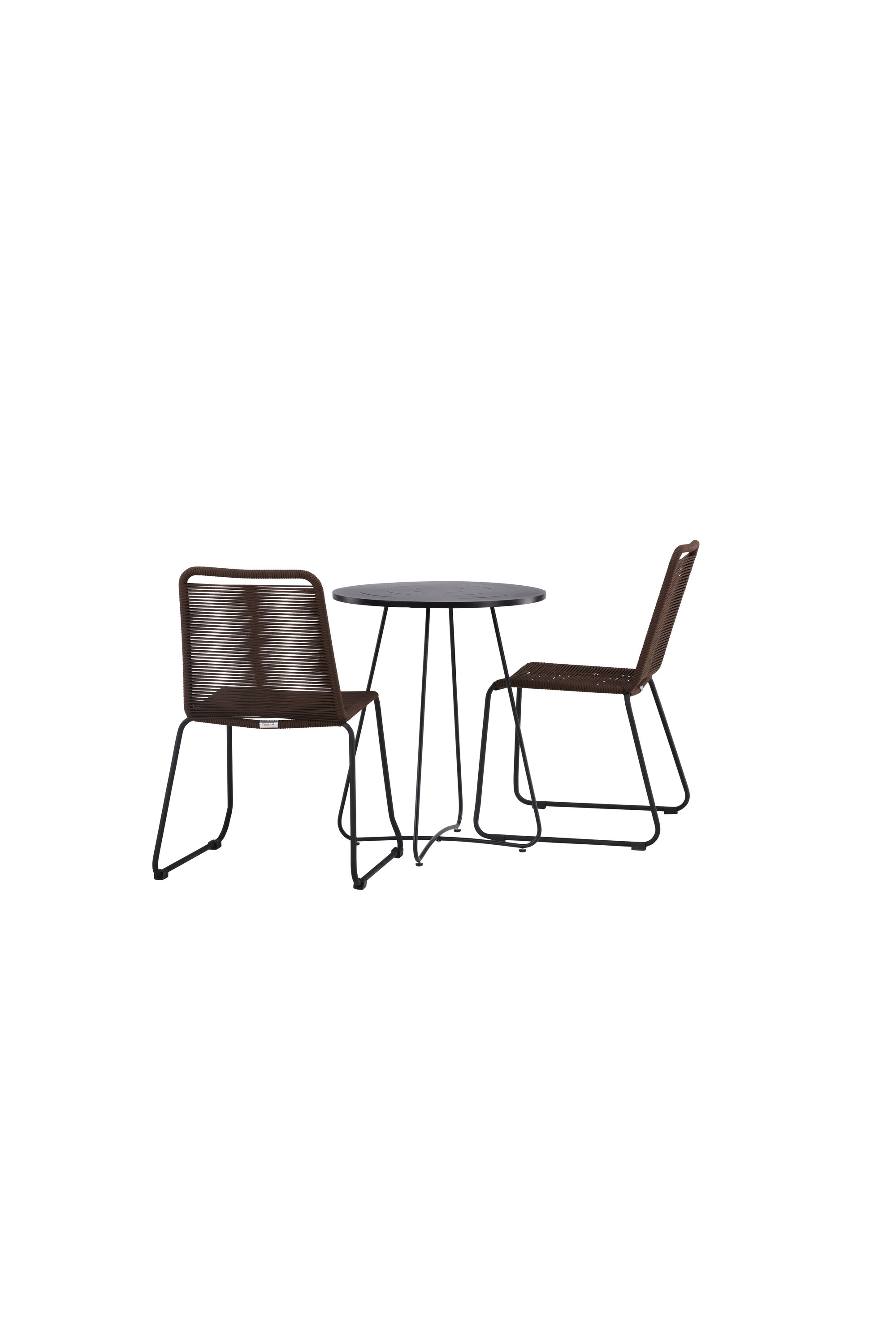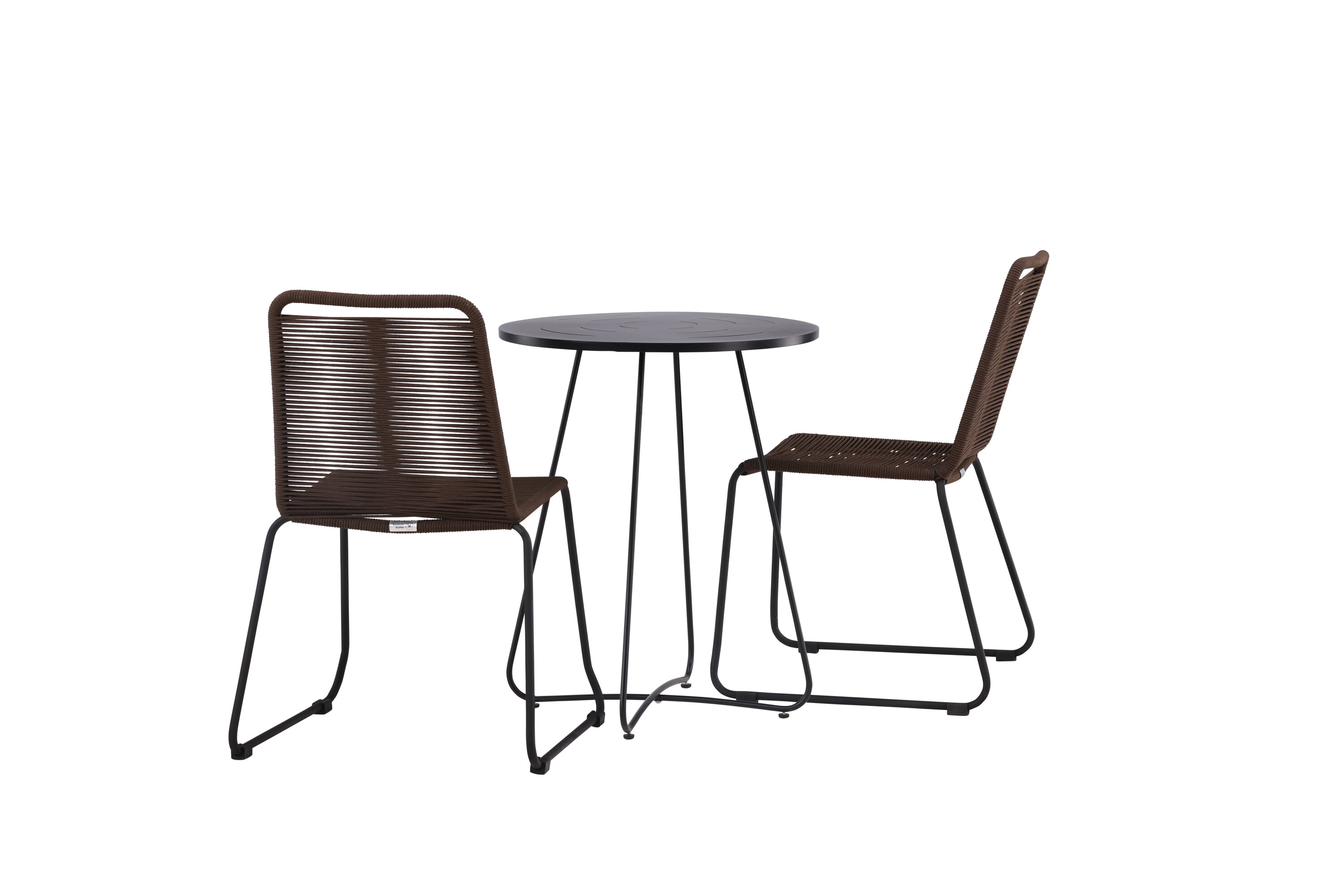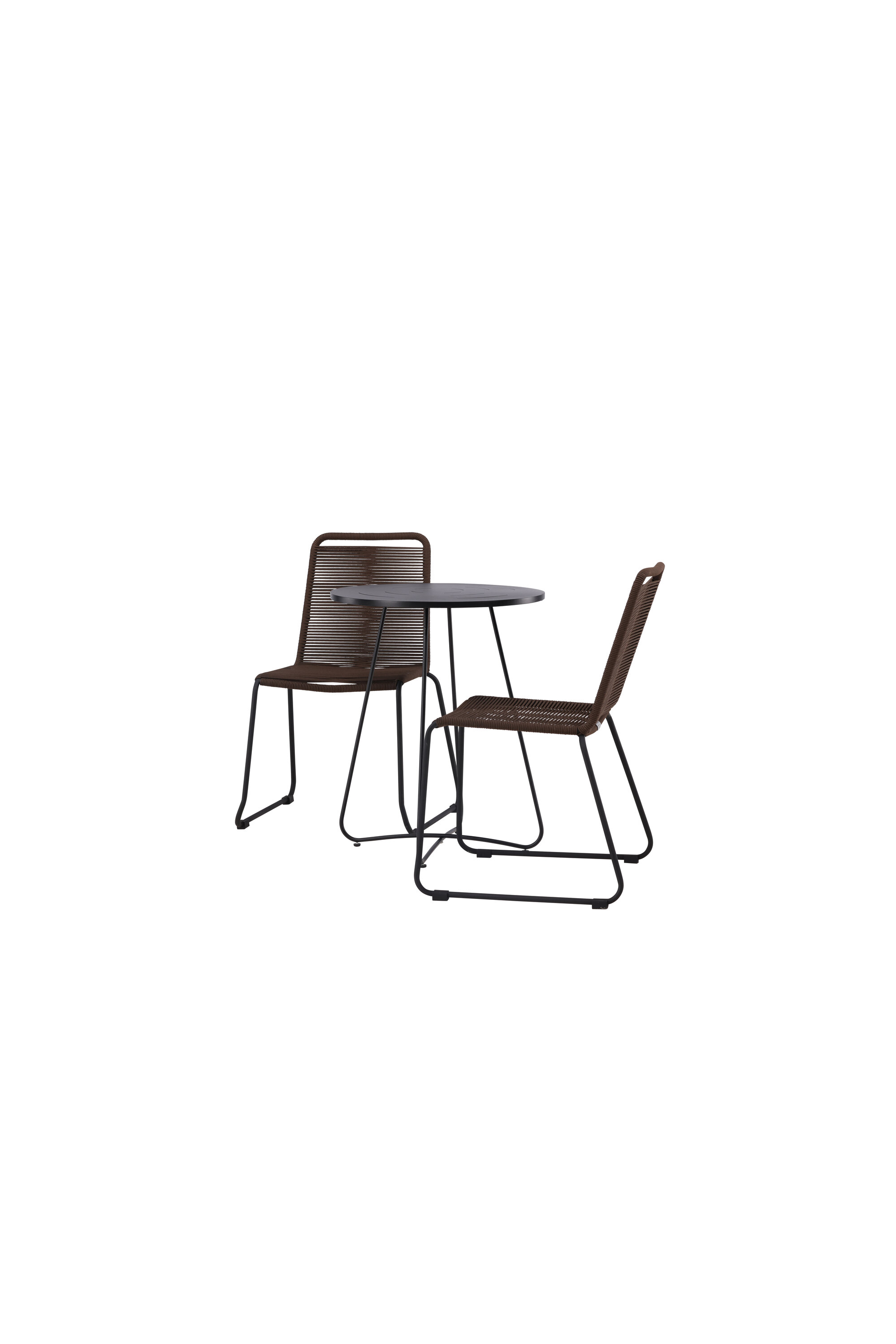 Maalähedane ja kaasaegne – ideaalne kohvikugrupp väikesele rõdule või terrassile! Bacong sarja võluv kohvikulaud on ümara plaadi ja saledate mustast terasest jalgadega. Siin on stiilne kombinatsioon 2 Lindose seeria söögitooliga. Tool on pruuni värvi vastupidavast köiest ja sobib ideaalselt välitingimustes kasutamiseks. Joo sel suvel kohvi õues ja naudi meeldivaid hetki! Laua läbimõõt: 60 cm.
