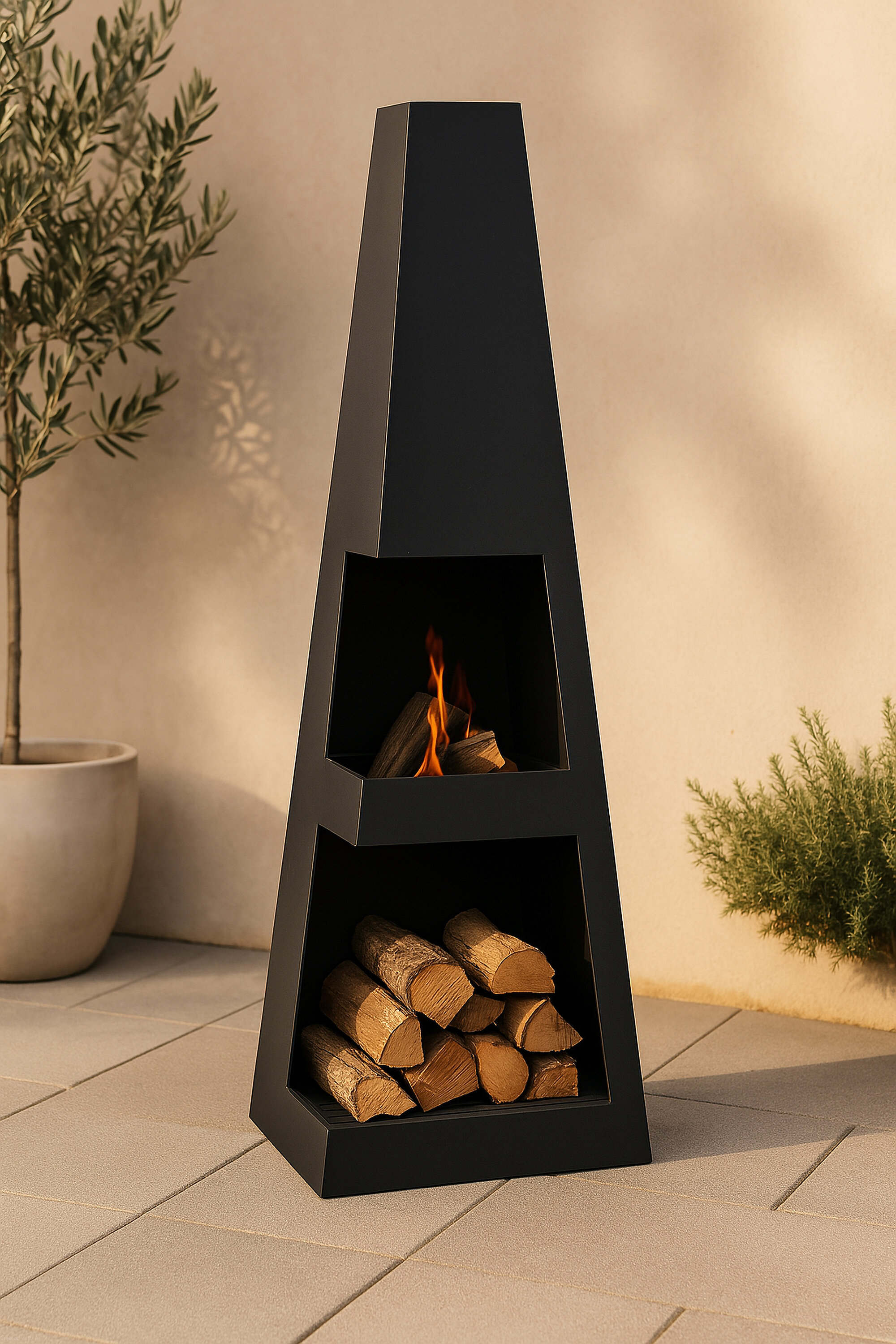 Suurendage õue hubasust selle soojendava kaminaga sarjast Bastian. Disain on stiilne, kandilise korpusega, mis muutub ülaosa suunas järk-järgult kitsamaks. Kamin on valmistatud mustast terasest, avaga kahel erineval tasapinnal. Siin saab varasuve ja hilissuve õhtute ette soojendamiseks ja külalistele mõnusalt väikese lõkke teha. Pidage meeles, et ärge jätke kaminat järelevalveta. Materjalide ja hooldusnõuannete kohta lisateabe saamiseks vaadake meie näpunäiteid.