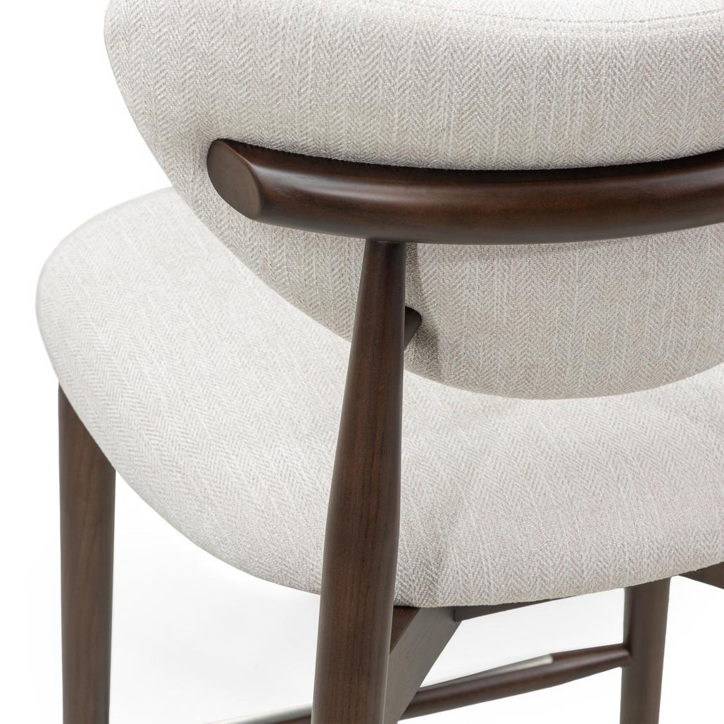 JULIETTE baaritool on harmooniline segu moodsast disainist ja mugavusest mis sobib ideaalselt igasse interjööri. Selle ümar kuju ja beež polster annavad sellele peene ja elegantse ilme lisades ruumile soojust ja hubasust. Mugav iste ja kontuurne seljatugi tagavad toe isegi pikkade einete ajal. Sooja pähklipuu viimistlusega täispuidust jalad lisavad stiili pakkudes ka stabiilsust ja vastupidavust. JULIETTE sulandub sujuvalt nii minimalistliku kui ka klassikalisema interjööriga rõhutades nende iseloomu. See on erakordne valik kõigile kes hindavad oma kodus funktsionaalseid ja esteetiliselt meeldivaid lahendusi. Omadused: Iste ja seljatugi polsterdatud beeži kangaga; Saarepuust jalad; Soe pähklipuu viimistlus jalgadel; Kontuurne seljatugi; Jalatugi on tugevdatud metallplaadiga kulumise vältimiseks; Mõõtmed: Kõrgus: 98 5 cm; Laius: 52 cm; Sügavus: 55 cm; Istme kõrgus: 65 cm; Istme sügavus: 47 cm.