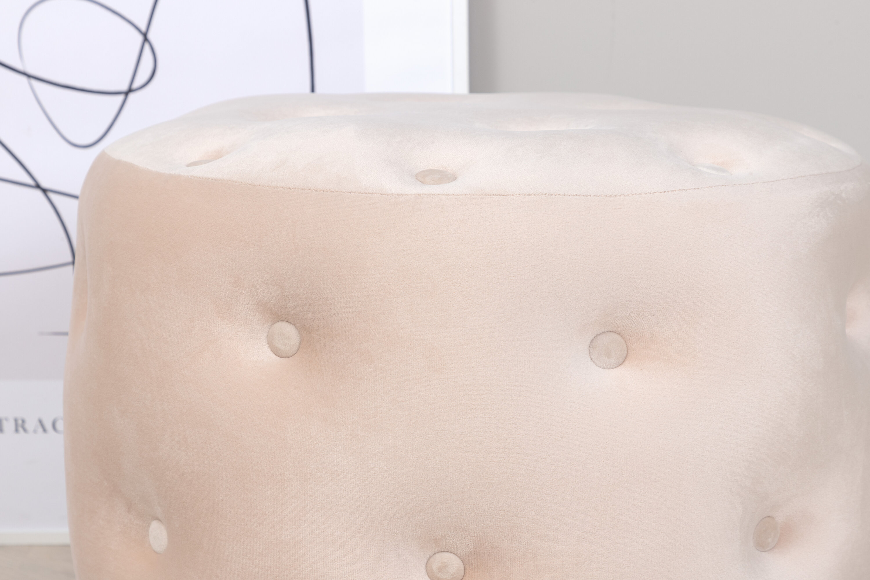Looge moeteadlik pilkupüüdev välimus, mis avaldab muljet! Istmepuhvris Benjamin on luksuslik disain sügavalt kleepuvate ja sametise polsterdatud nööpidega. Pehmed vormid ja beež värv annavad ruumile kutsuva tunde ja stiilse läike. Pehme vahutäidis muudab kaubaaluse istumise mugavaks – kasutage lisaistmena, kui külalisi on palju, puhkage pärast pikka päeva jalgu või asetage pasjanss stiiliikooniks. See istmepahvak tagas interjööri järgmisele tasemele. Valmistatud vahtplastist, puuvillakiust, sametkangast ja kumerast puidust. Puffs Mõõdud: Kõrgus: 44 cm, läbimõõt: 55 cm.