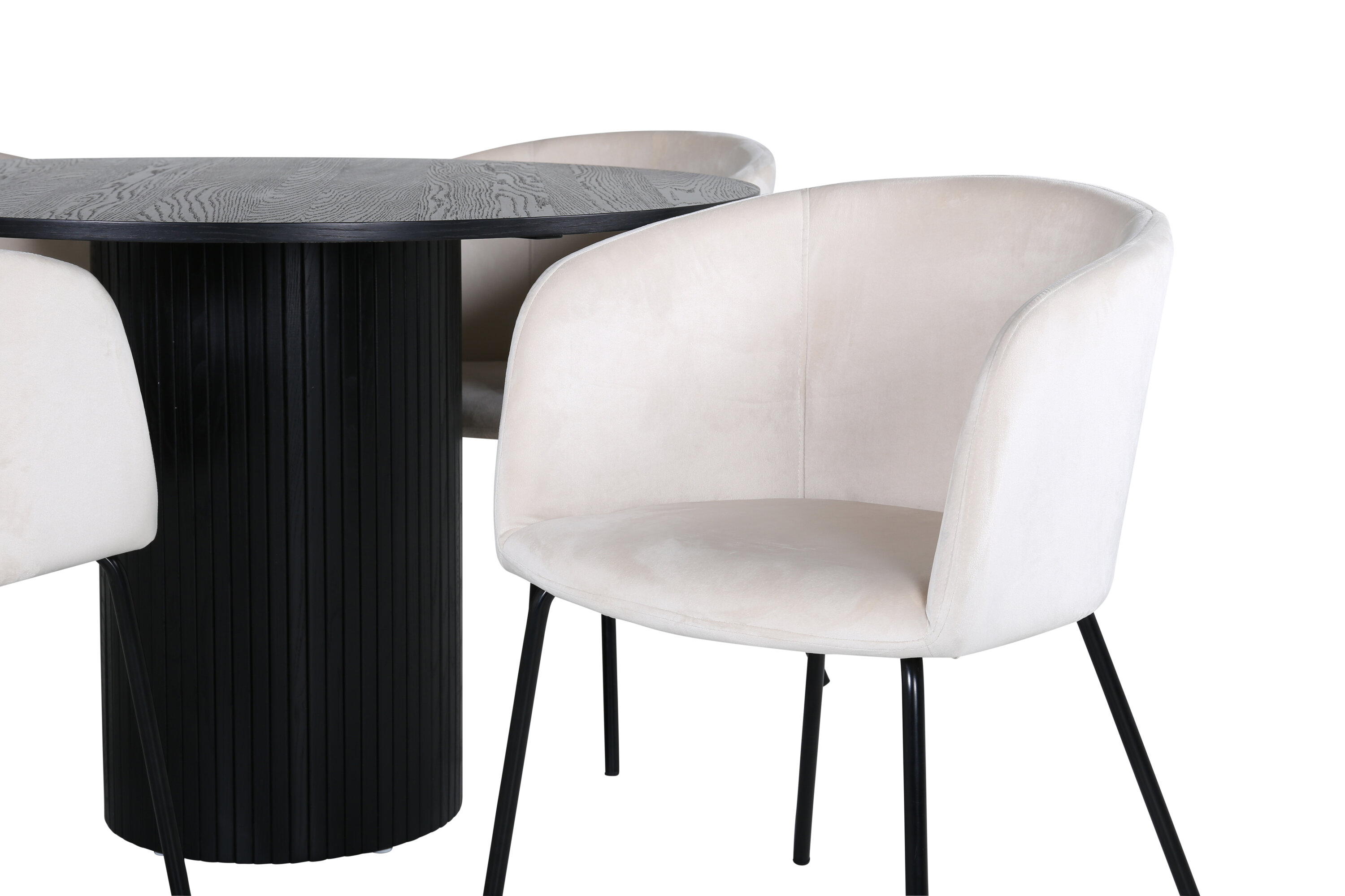 Moodne, stiilne ja pompoosne – loo luksuslik pilgupüüdja kodu südamesse! Meie ühtlaselt musta värvi ümmargusel söögilaual Bianca on trendikas disain koos MDF-plaadiga lauaplaadiga ja vastupidava soonikuga raamiga, mis jätab püsiva mulje. Siin on täiuslik kombinatsioon 4 luksusliku disainiga Berit söögitooliga. Tool on pompoosse disainiga beežis sametis ja toolijalad on stiilselt kitsad mustast rauast. Sisustage kutsuvalt ja looge oma koju stiilne välimus!