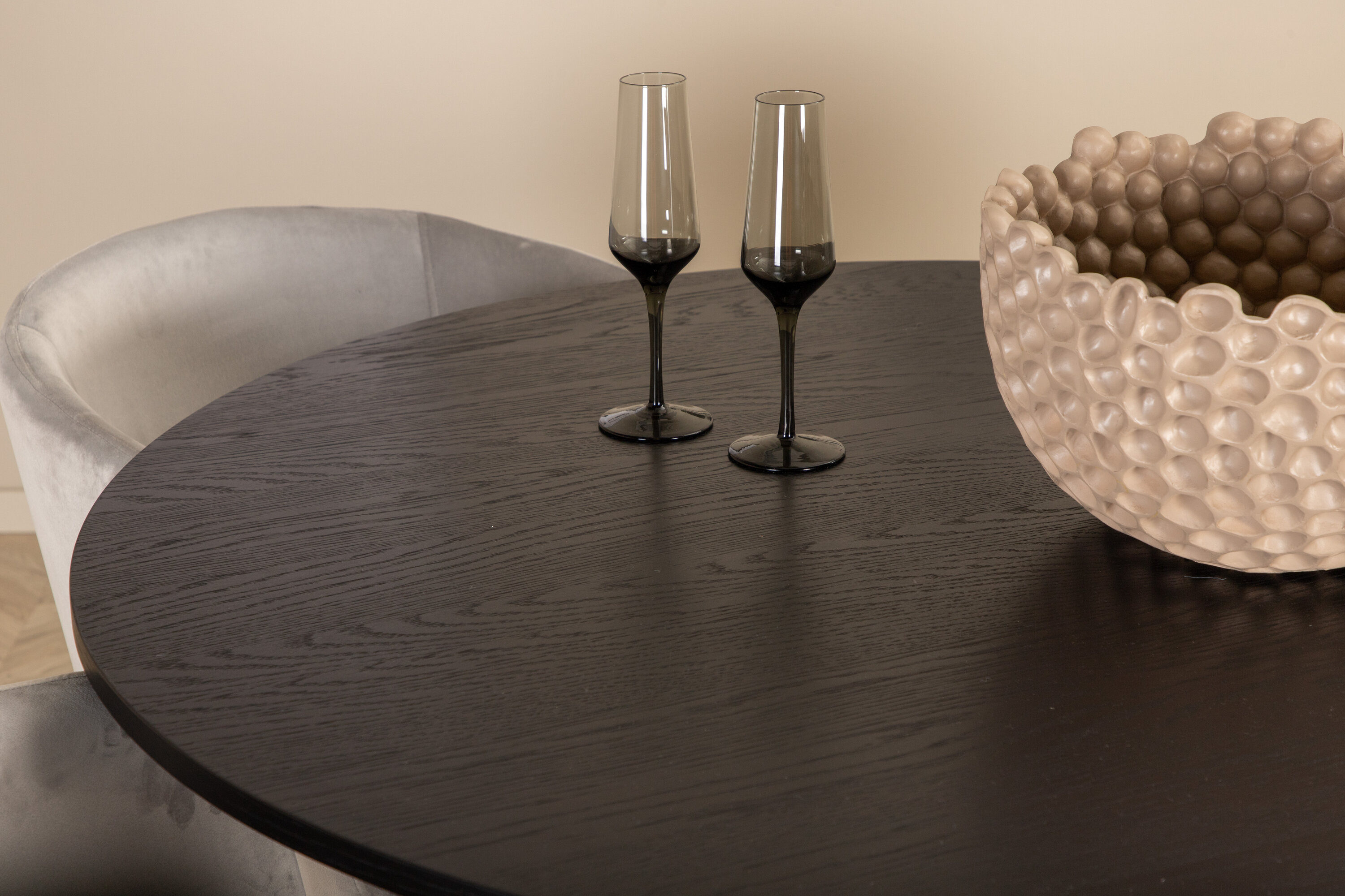 Moodne, stiilne ja pompoosne – loo luksuslik pilgupüüdja kodu südamesse! Meie ühtlaselt musta värvi ümmargusel söögilaual Bianca on trendikas disain koos MDF-plaadiga lauaplaadiga ja vastupidava soonikuga raamiga, mis jätab püsiva mulje. Siin on täiuslik kombinatsioon 4 luksusliku disainiga Berit söögitooliga. Tool on pompoosse disainiga maitsestatud hallist sametist ja toolijalad on stiilselt kitsad mustast rauast. Sisustage kutsuvalt ja looge oma koju stiilne välimus!
