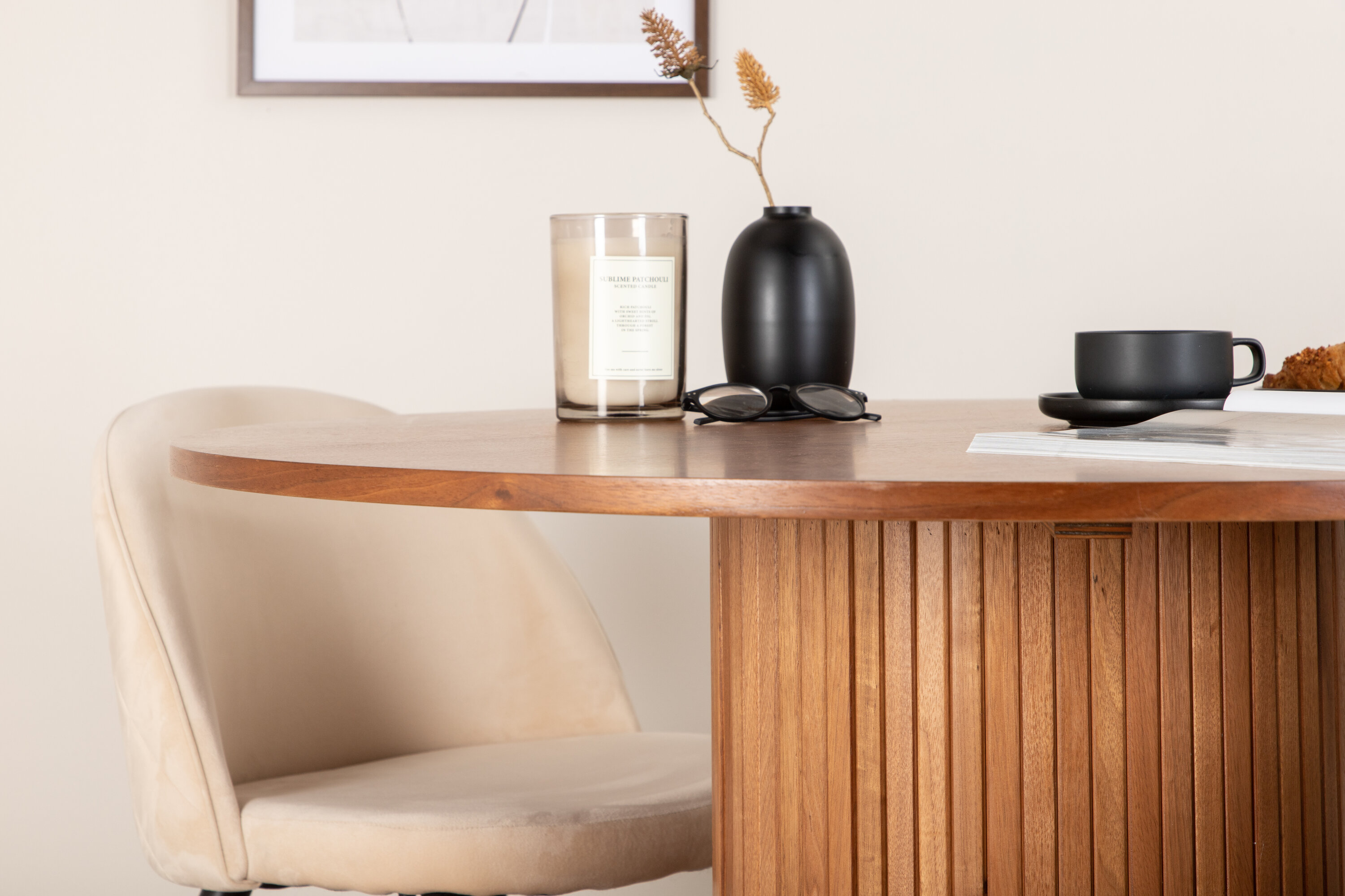 Loo kutsuv pilgupüüdja kodu südames! Meie trendikas pähklivärvides ümmargune söögilaud Bianca sobib ideaalselt nii elutuppa kui ka avarasse kööki. Lauaplaat on pähklivärvi MDF spooniga ja korpus on vastupidav pähklipuust, samuti musta värvi puidust ja MDF-st soonikuga, mis jätab ühtlase mulje. Siin koos 4 meie populaarse söögitooliga Velvet Stitches, mis loovad elutoas kena terviku. Toolijalad on kergesti laienevad mustaks rauast ja beežid sametsed istmed annavad ruumile kena läike. Nautige meeldivaid sööke!