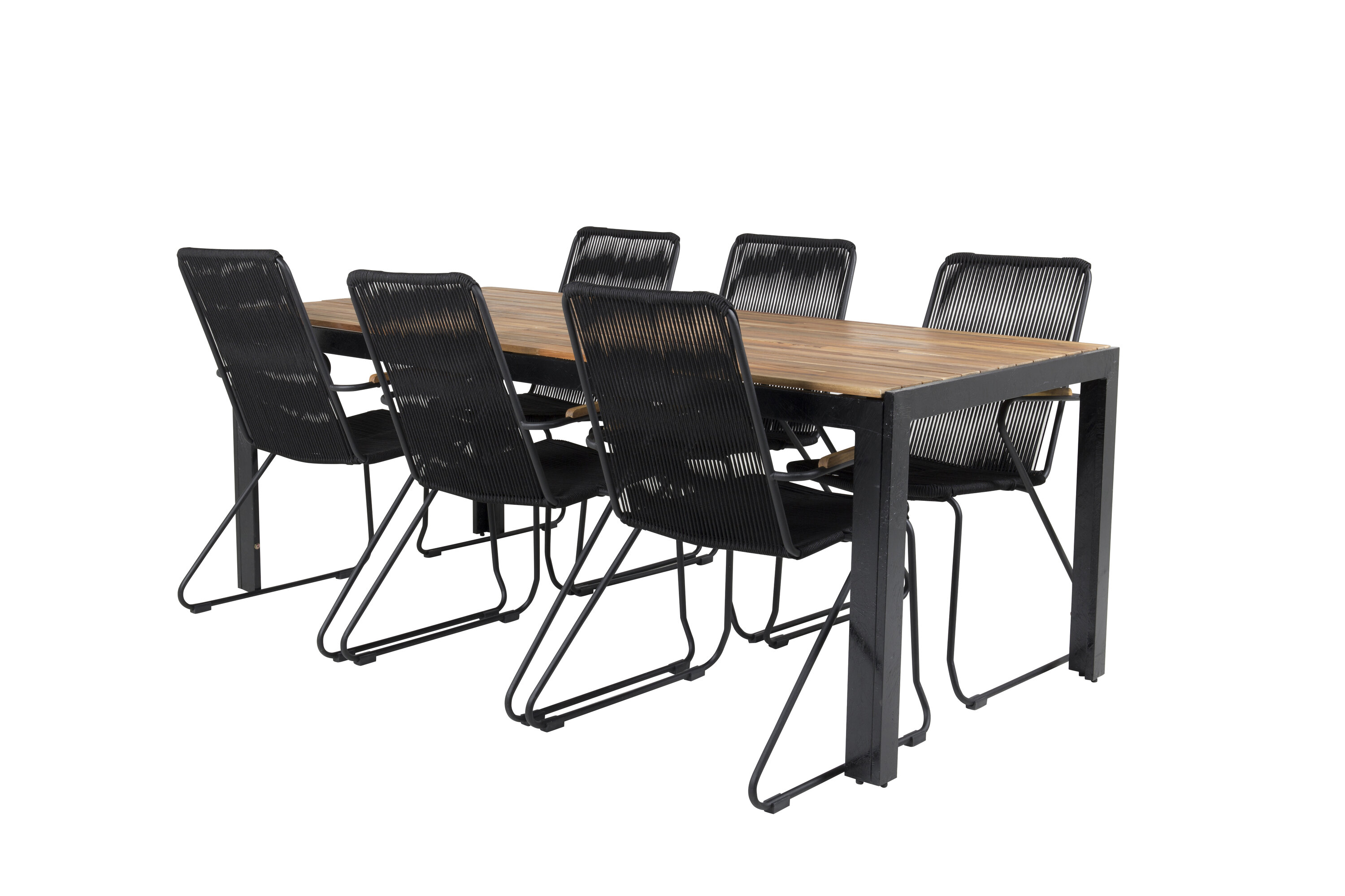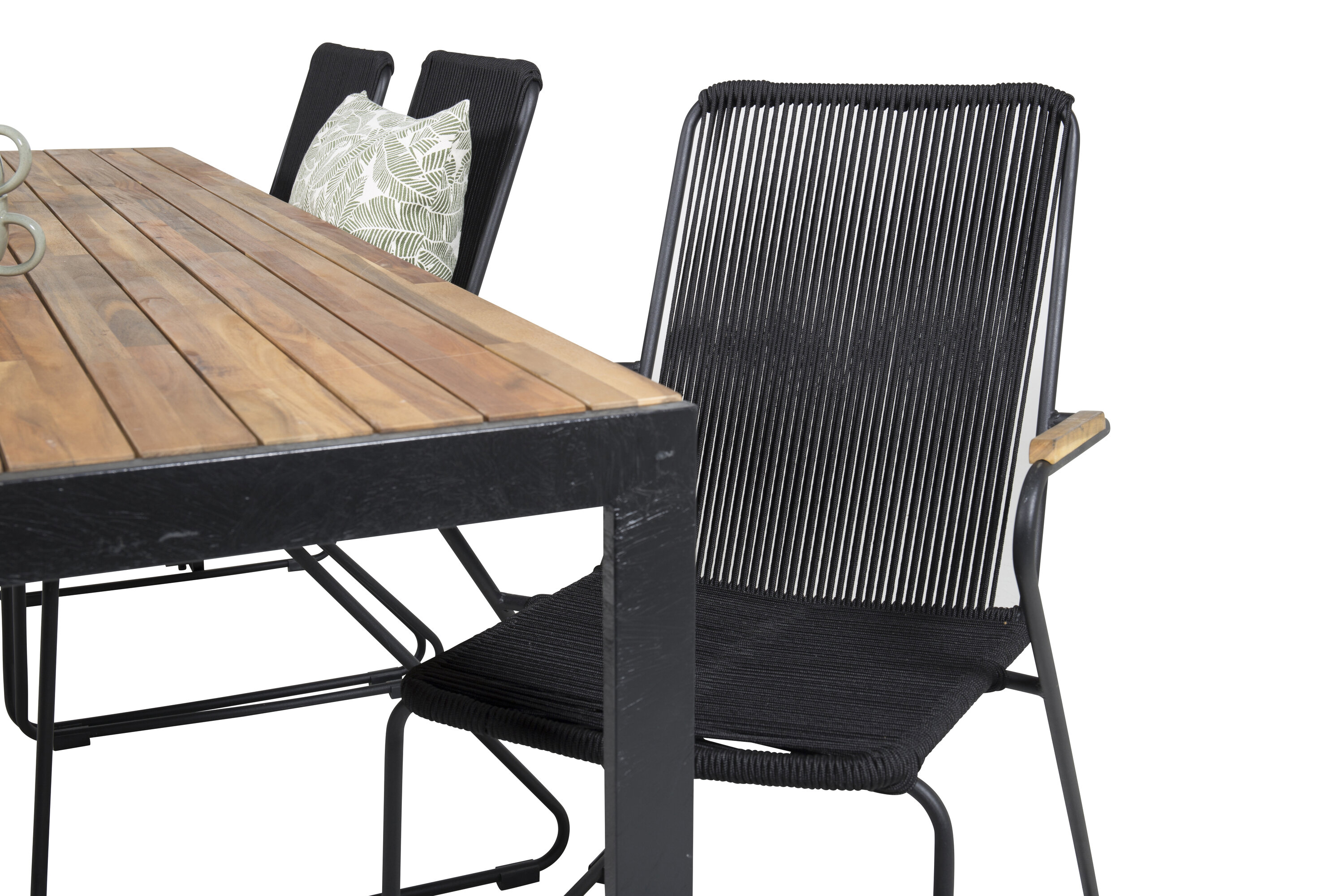 Boi söögitoolid maitsvast köiskonstruktsioonist koos Boi mustast alumiiniumkonstruktsioonist söögilauaga. Söögilaual on akaatsiast lauaplaat, mis annab luksusliku ja hubase tunde.