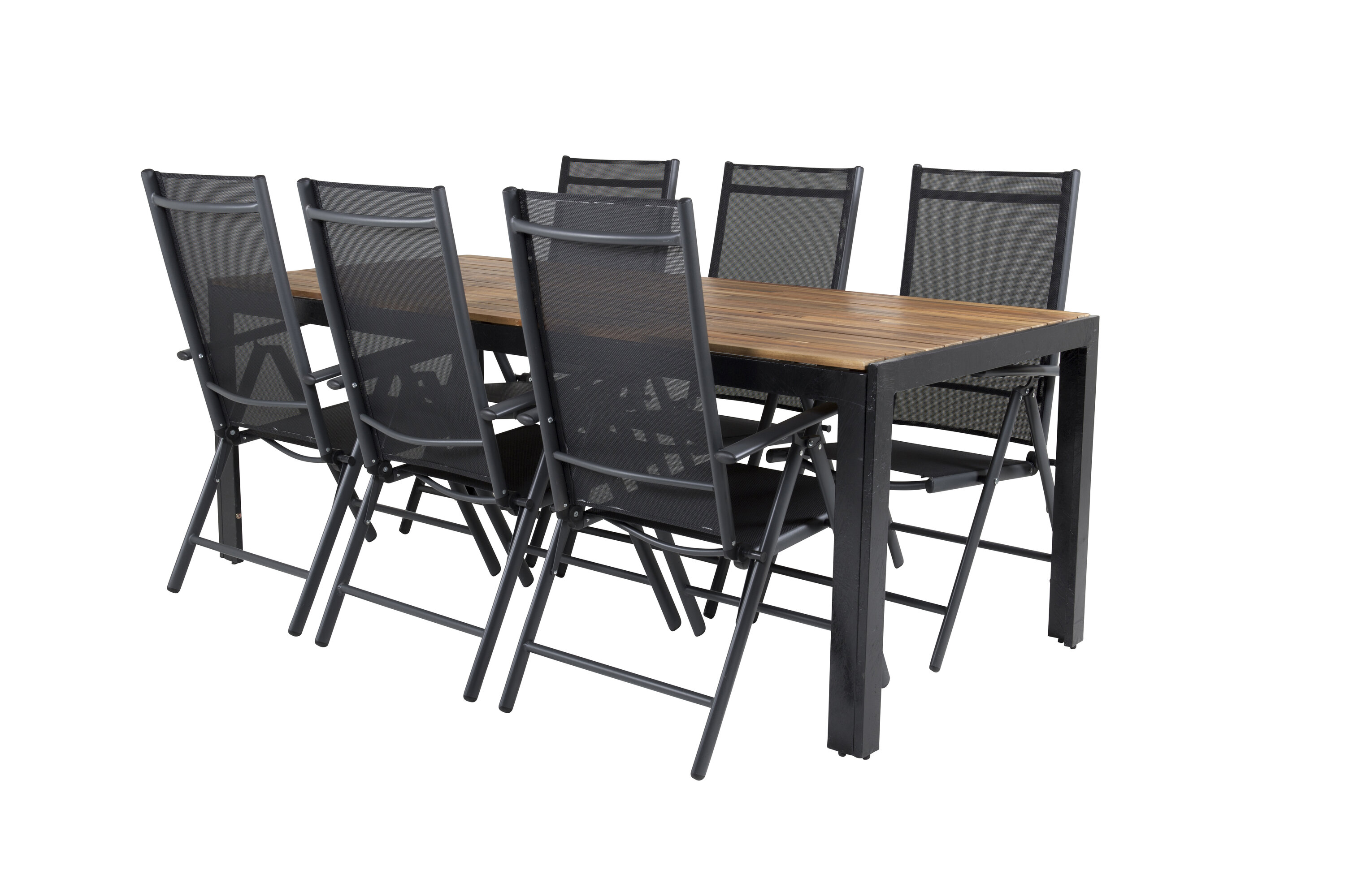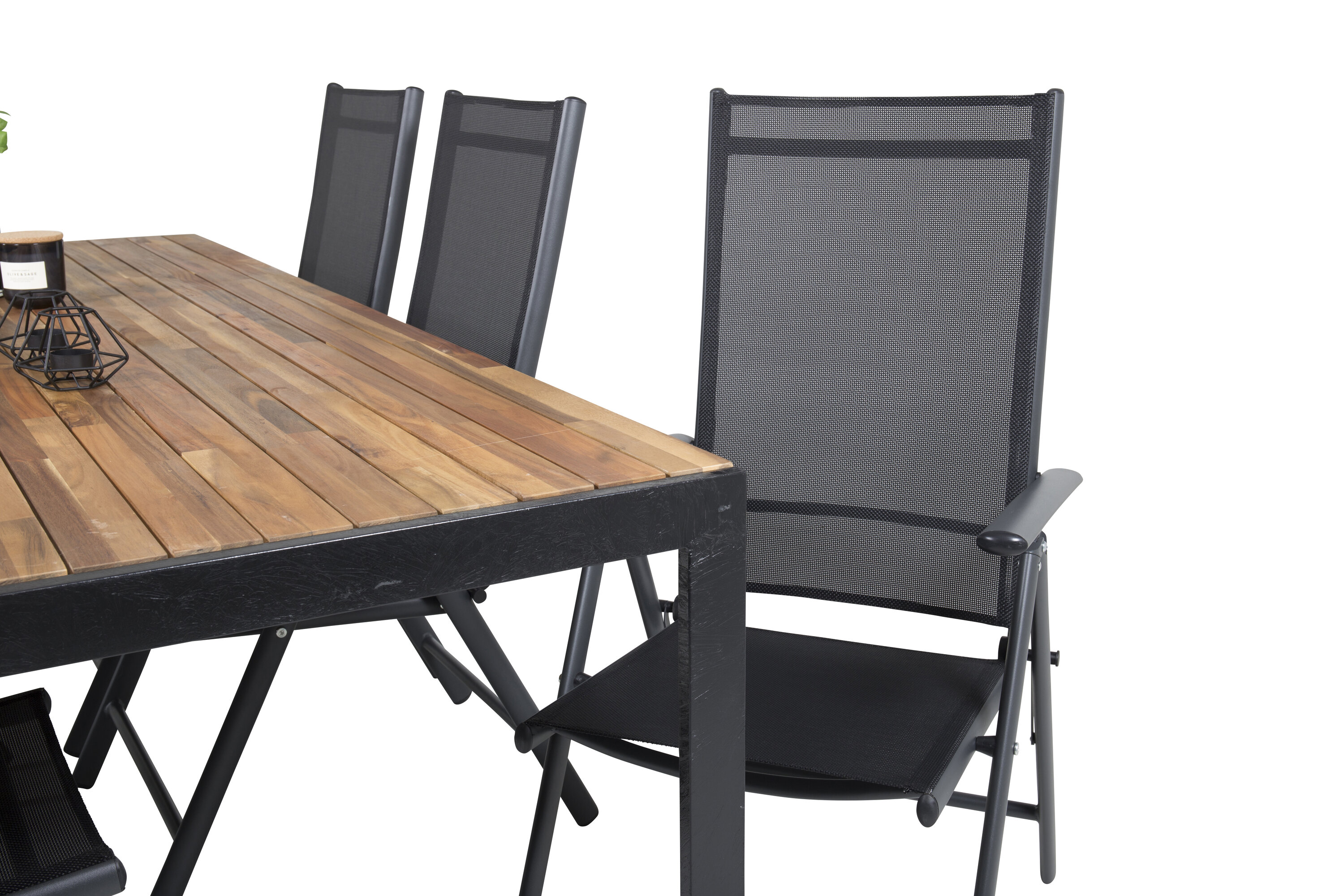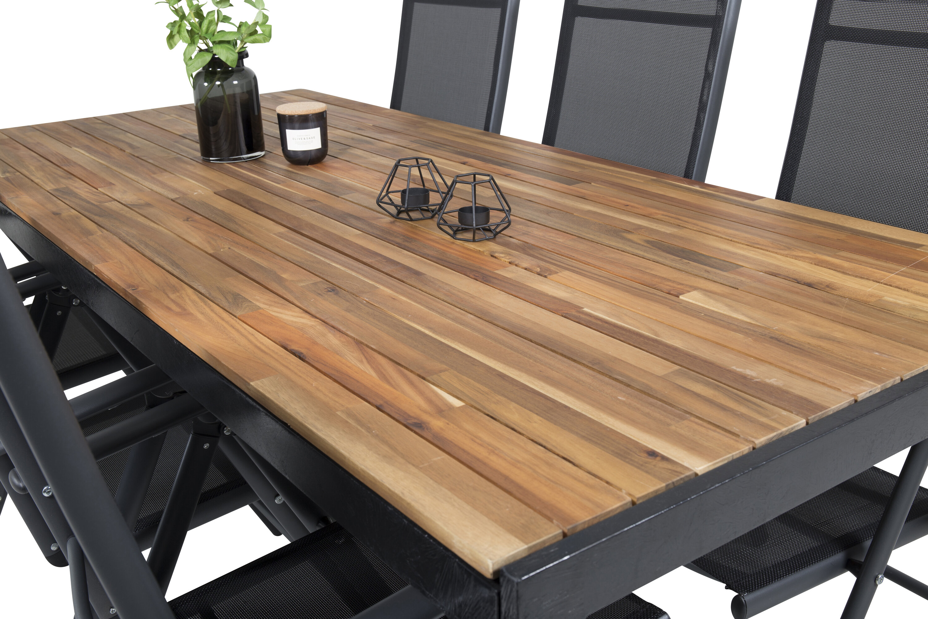 Mustast alumiiniumkonstruktsioonist Boi söögilaud kena lauaplaadiga akaatsia. Siin koos meie 5-positsiooniliste toolidega Break. Tee ruumi pikkadeks ja mugavateks suvisteks õhtusöökideks!