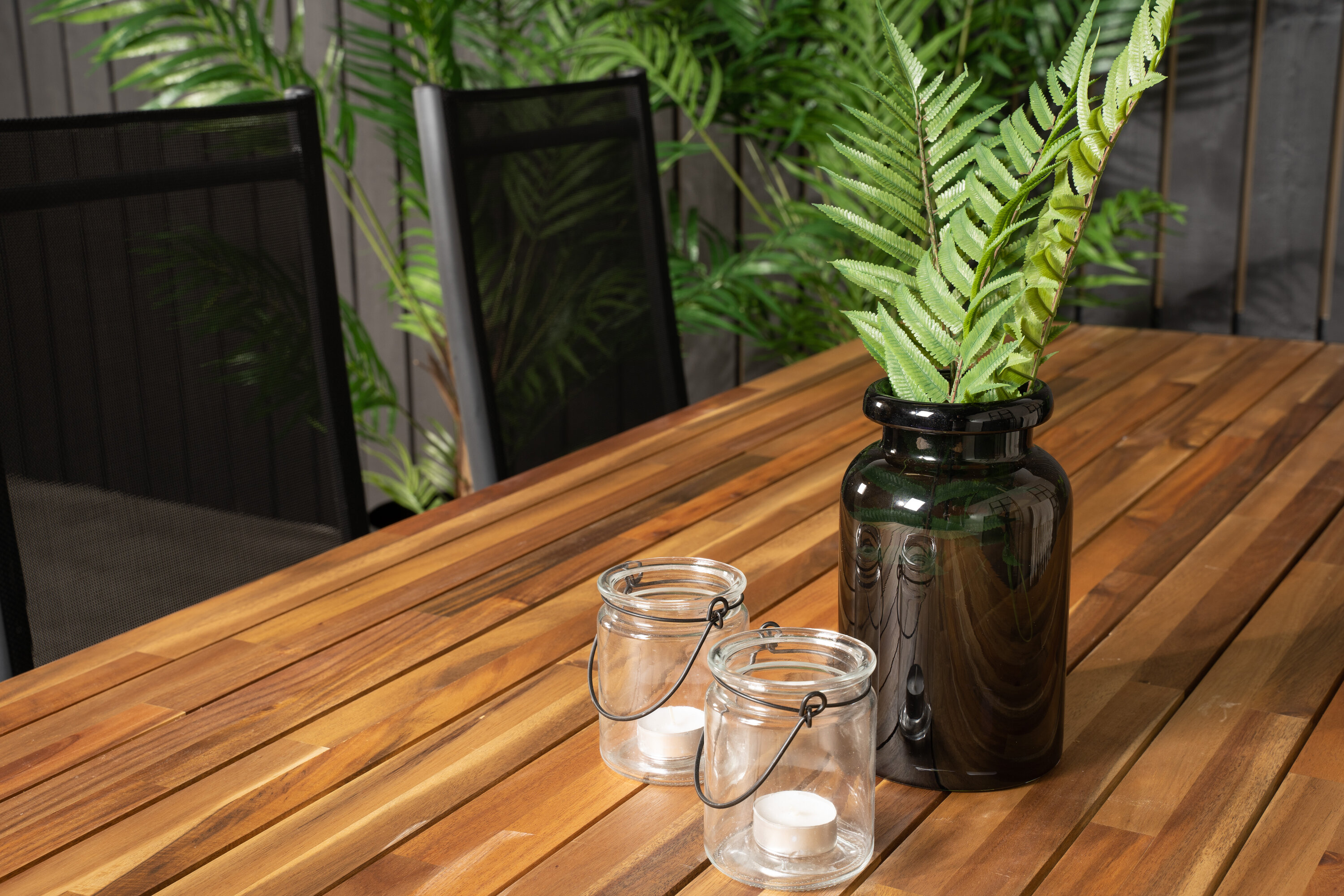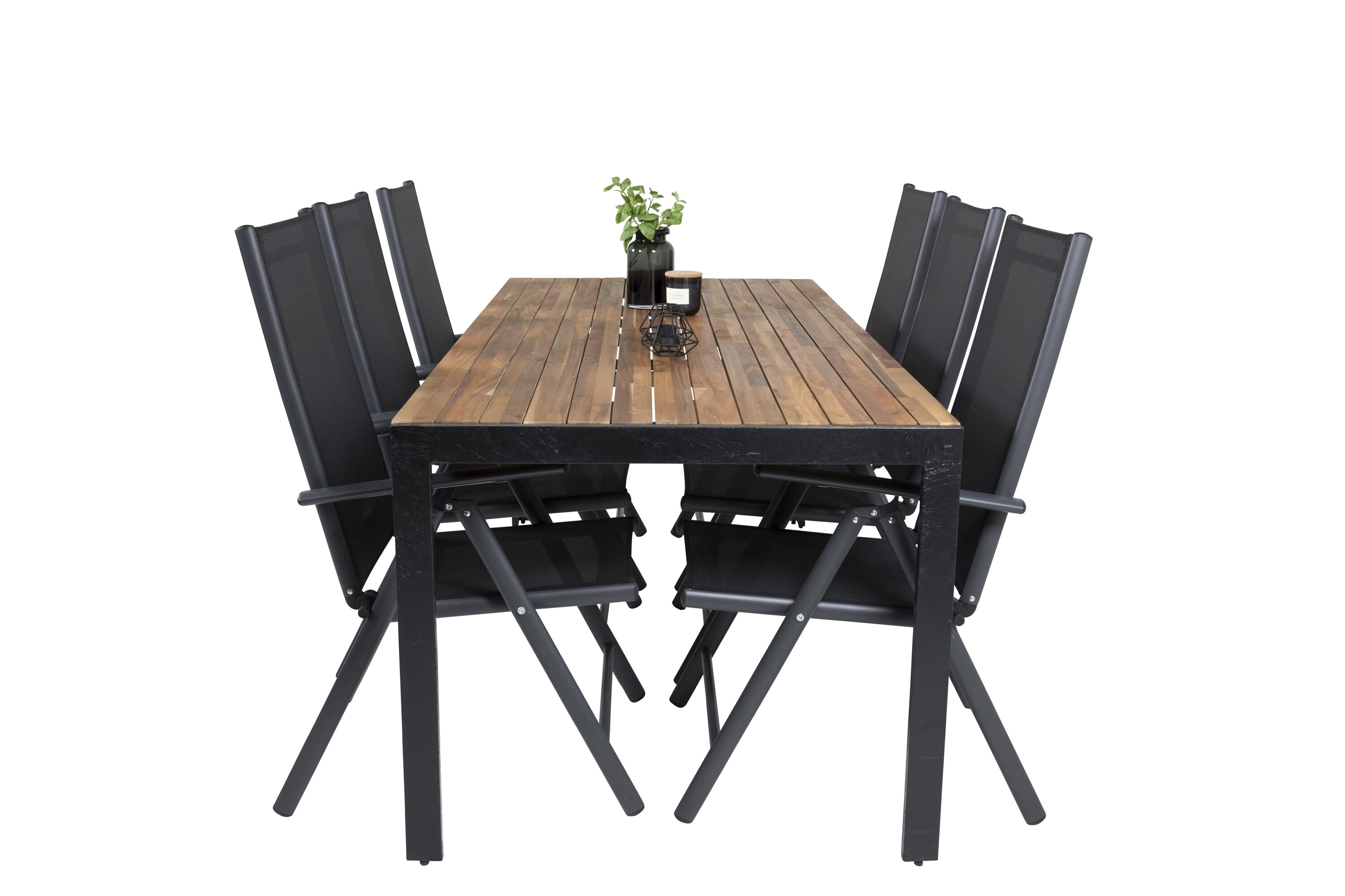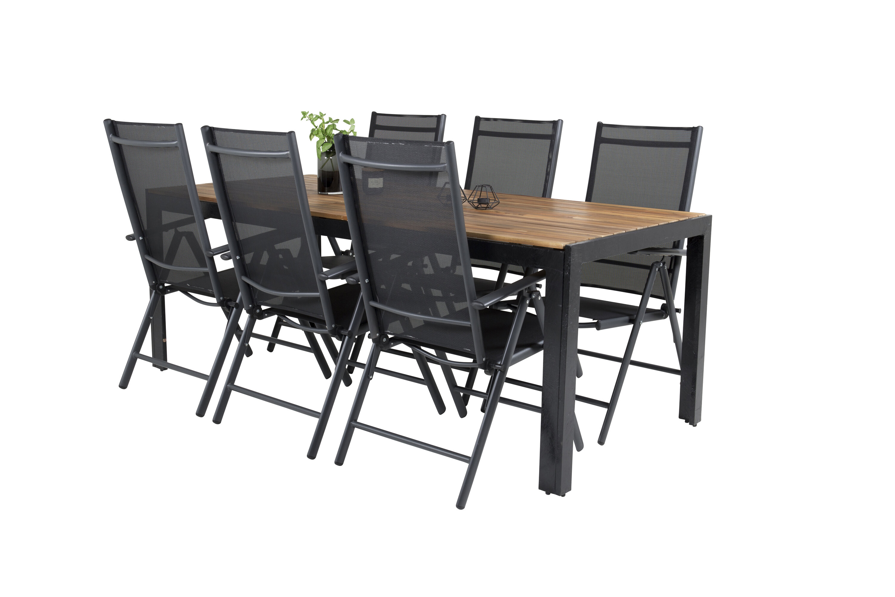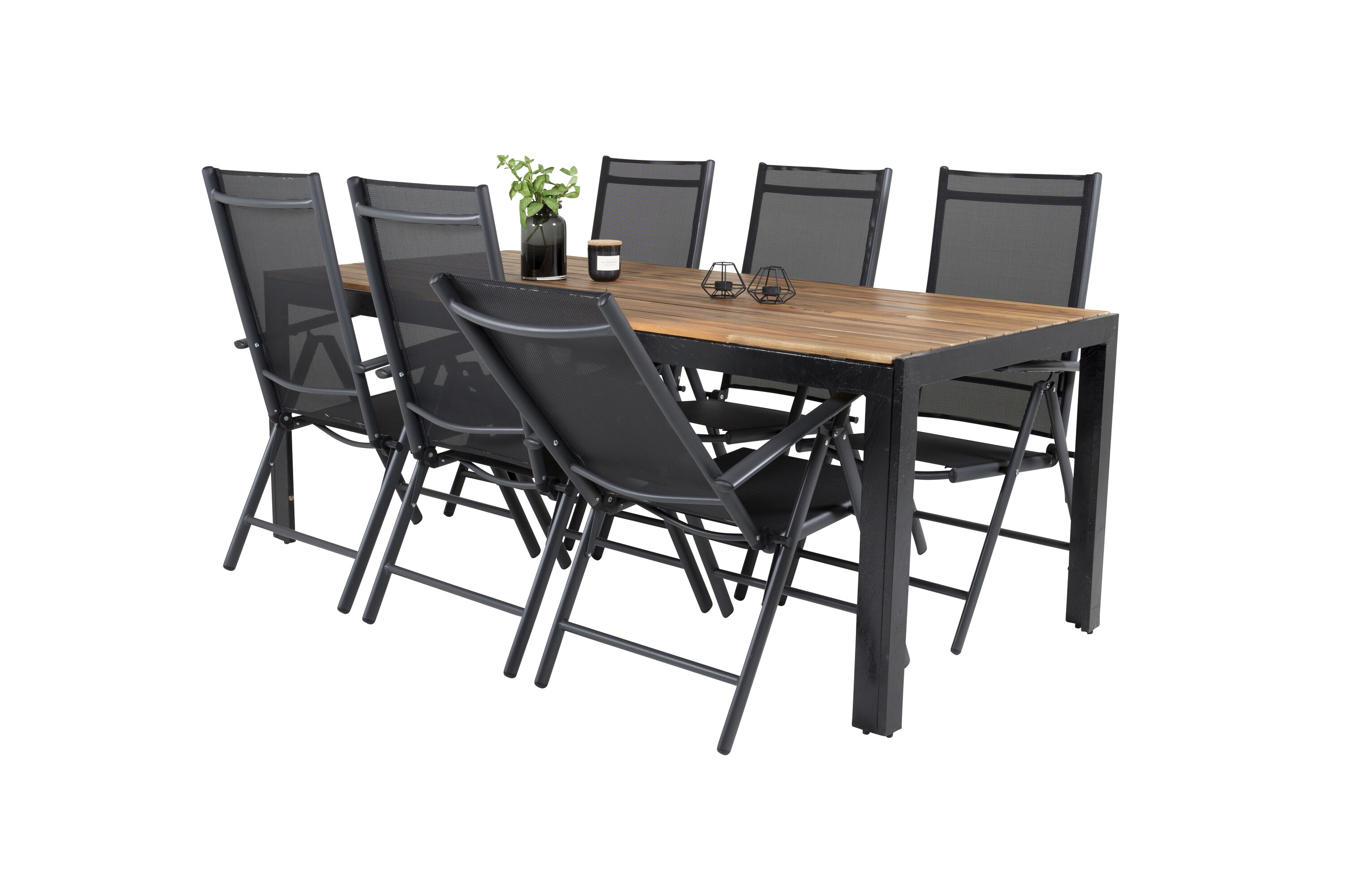 Mustast alumiiniumkonstruktsioonist Boi söögilaud kena lauaplaadiga akaatsia. Siin koos meie 5-positsiooniliste toolidega Break. Tee ruumi pikkadeks ja mugavateks suvisteks õhtusöökideks!