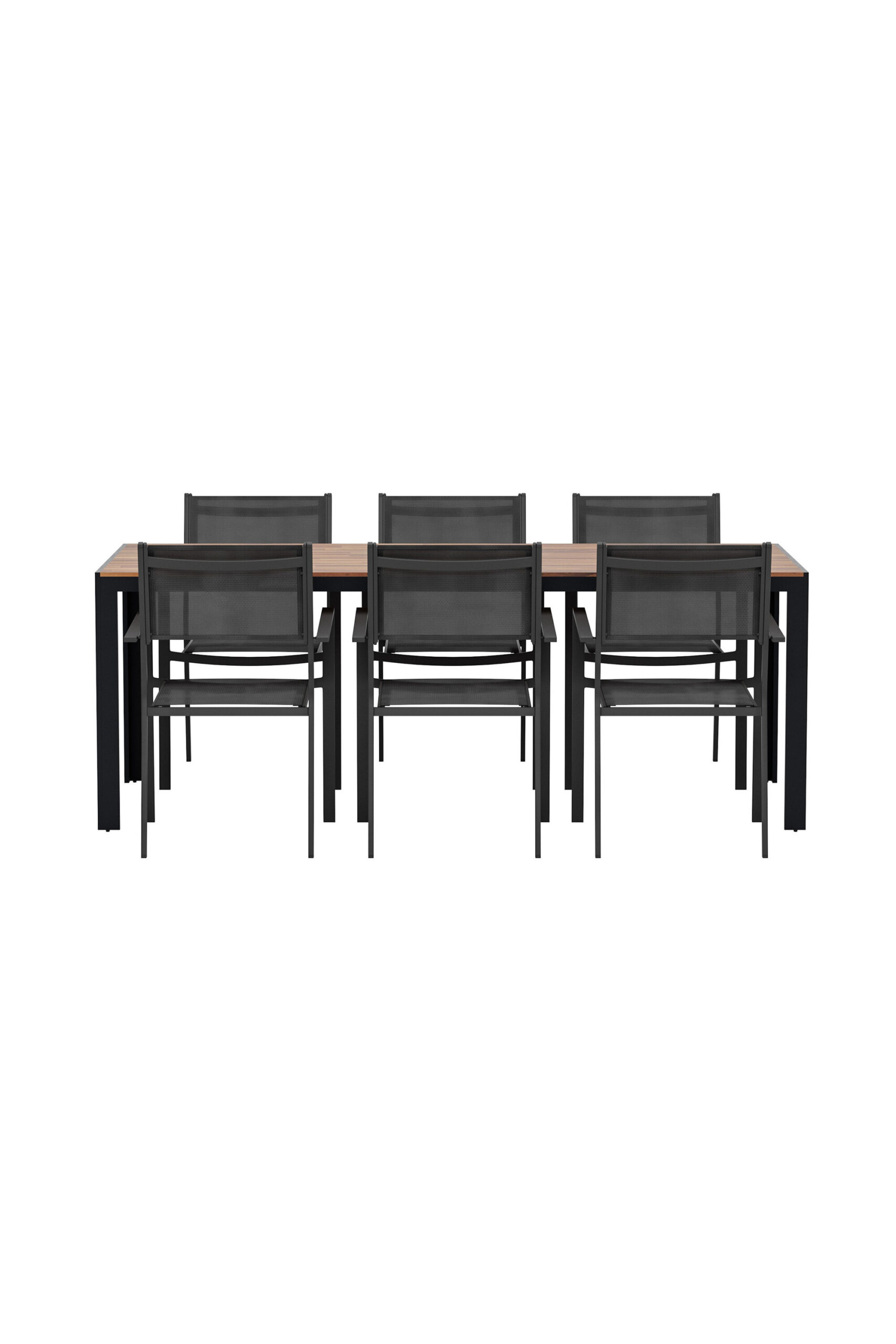 Selle stiilse Copacabana toolide ja põhjamaise disainiga Boisi söögilaua kombinatsiooniga looge moodne ja kutsuv välisöögituba. Copacabana söögitoolil on tugev ja klanitud mustast alumiiniumist konstruktsioon ning pehme must tekstiilist iste. Tool on mugav, vastupidav ja virnastatav – ideaalne nutikaks ja praktiliseks siseõue sisustamiseks. Söögilaud Bois avaldab muljet oma puhaste põhjamaiste joonte ja klassikalise ilmega. Dekoratiivne akaatsiapuust lauaplaat on kombineeritud mustade metalljalgadega, et luua ajatu ja loomulik tunne. Ruumikas ja stabiilne laud, mis sobib ideaalselt suvisteks eineteks ja seltskondlikeks koosviibimisteks. Koos loovad Copacabana ja Bois stiilse, funktsionaalse ja vastupidava söögikomplekti – ideaalne imelisteks õhtusöökideks õues.