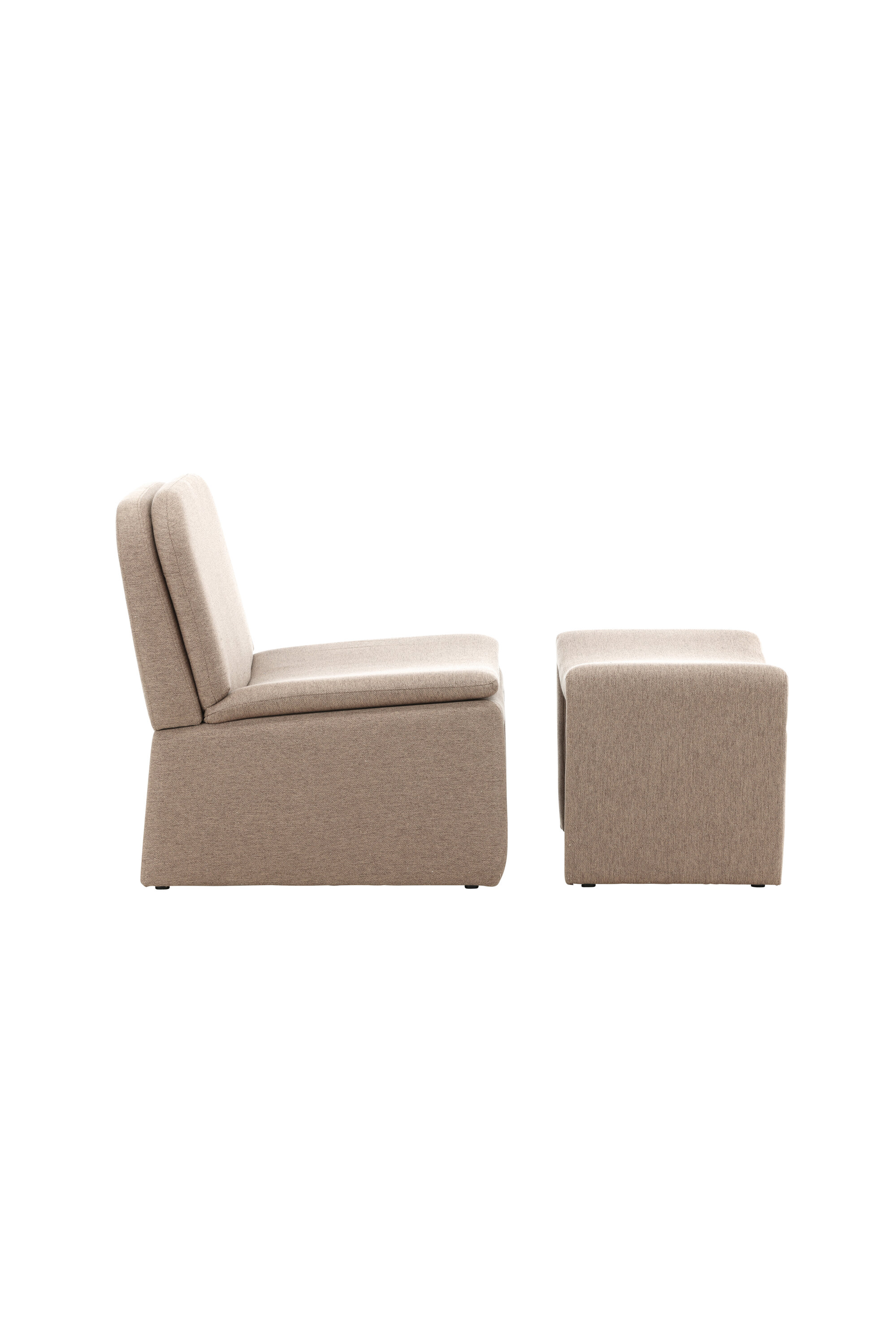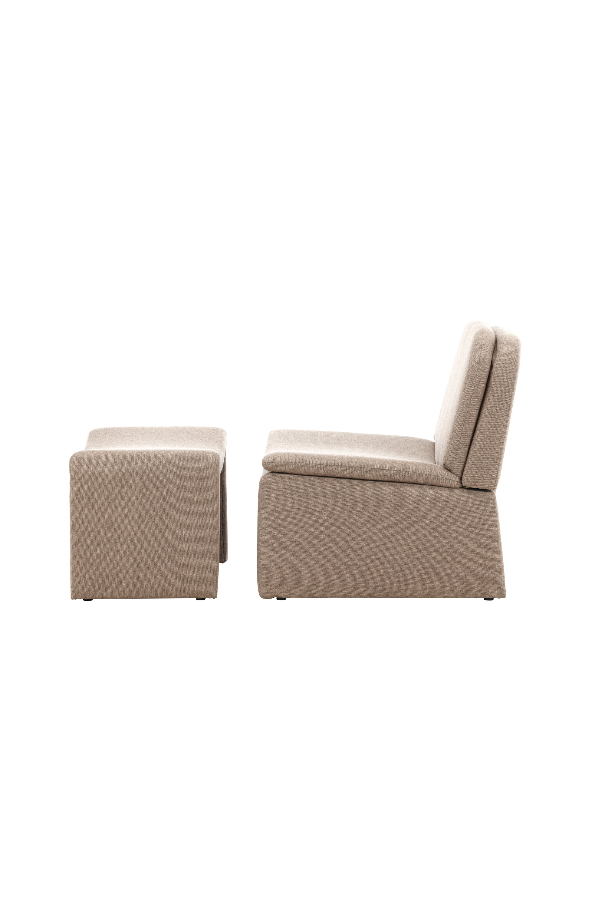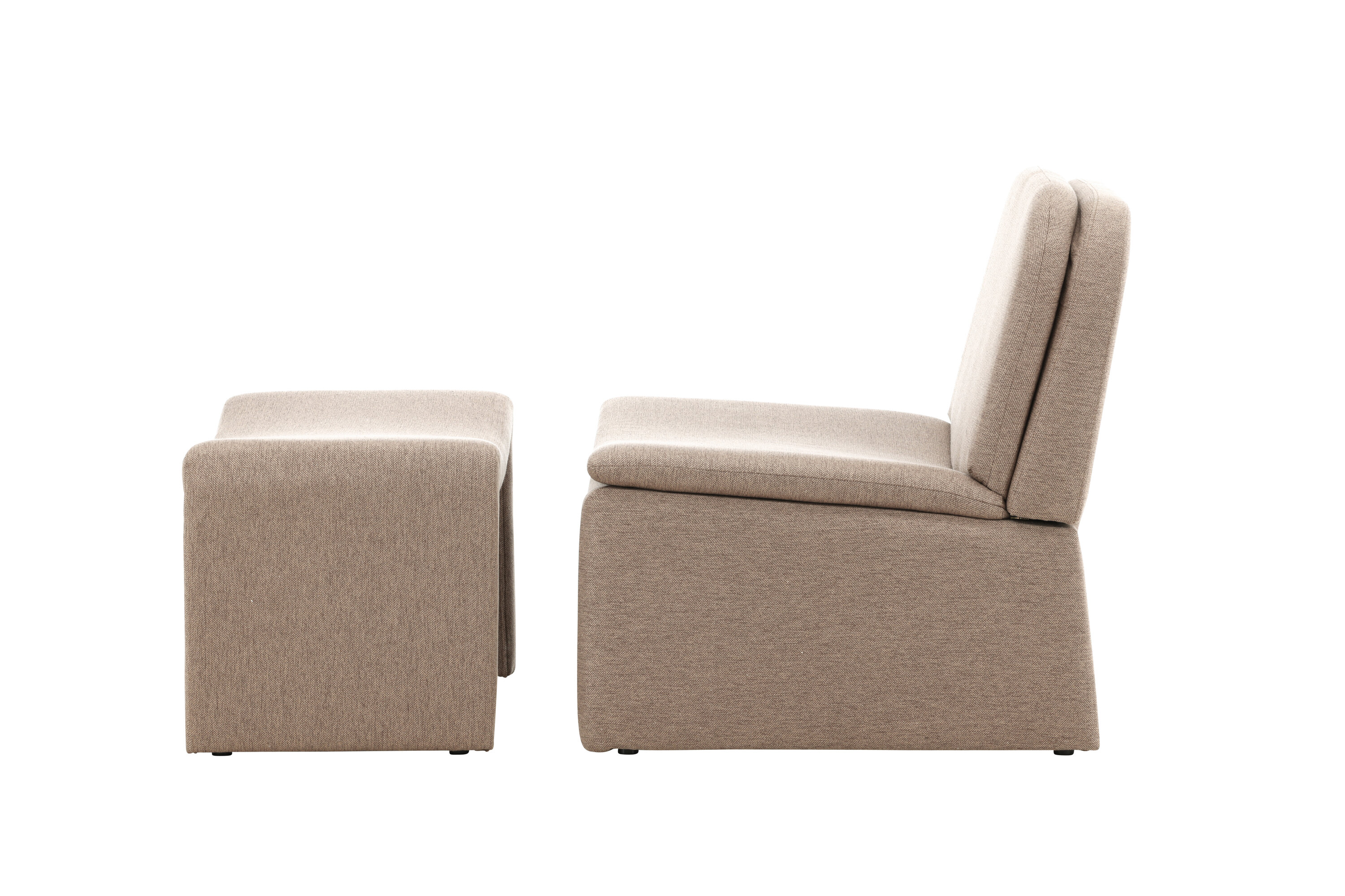 Avastage tugitool, milles on ühendatud minimalistlik disain ja kõrge mugavus. See klanitud tugitool koos sobiva jalatallaga on täielikult polsterdatud kauni pruuni kangaga, mis loob sooja ja peene tunde, mis sulandub sujuvalt igat tüüpi interjööri.