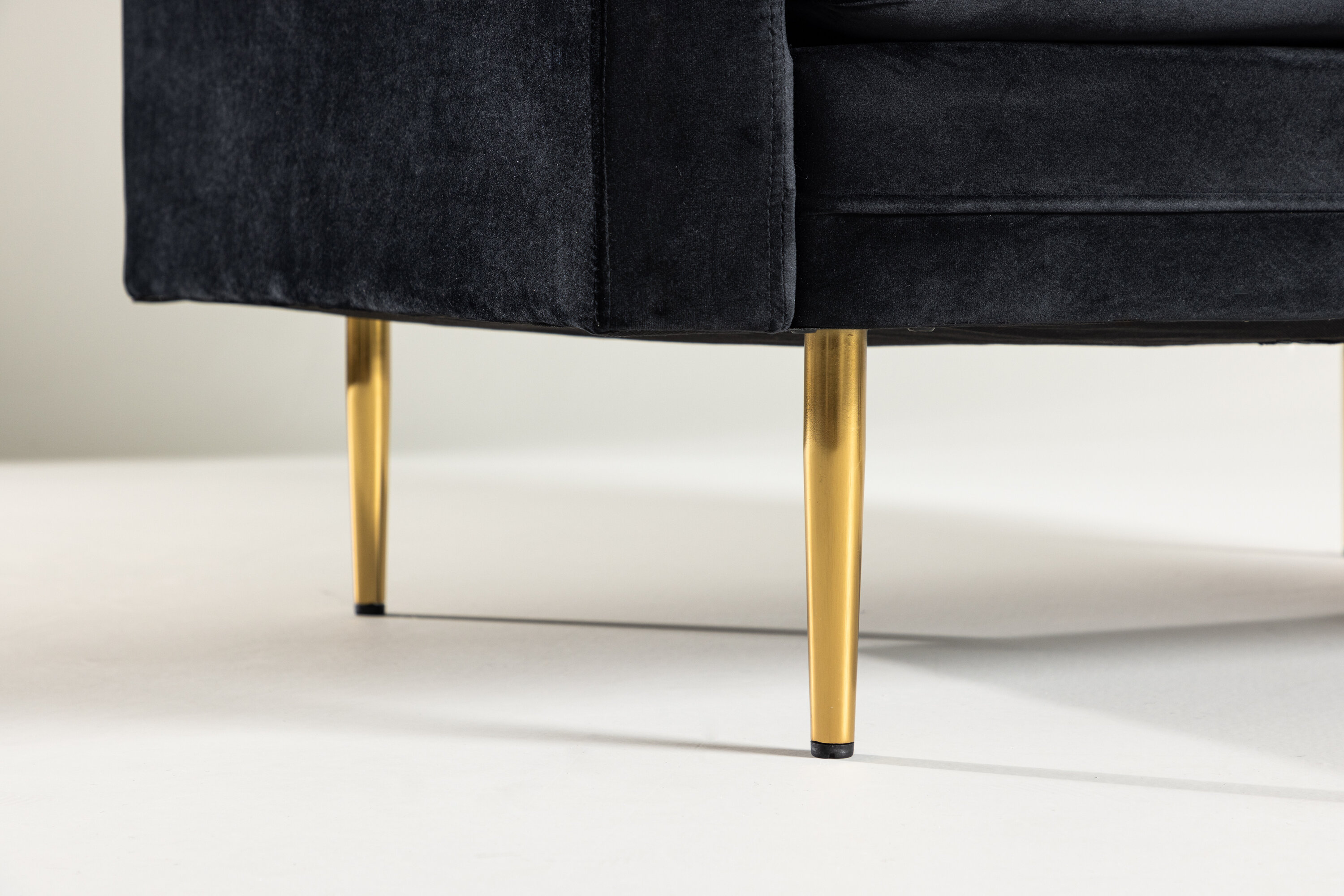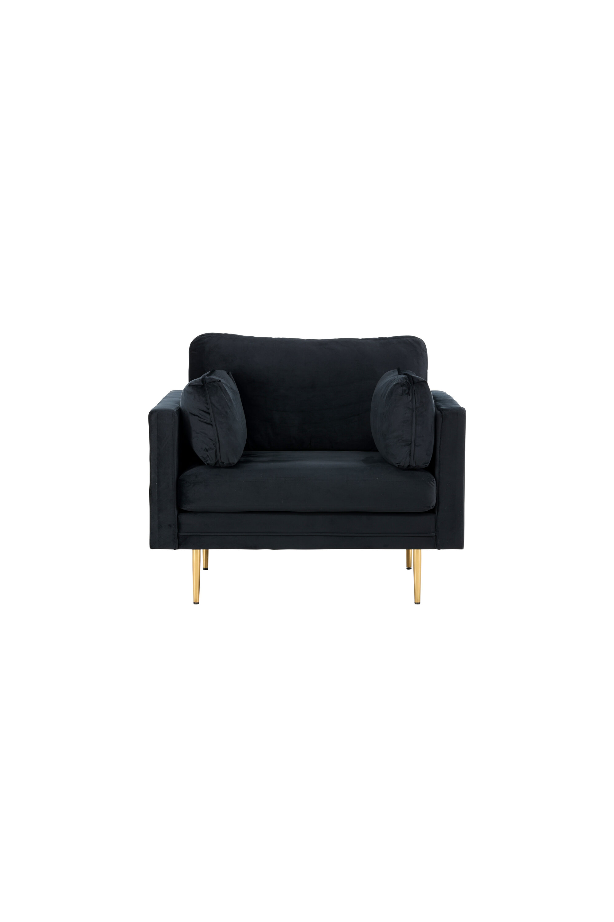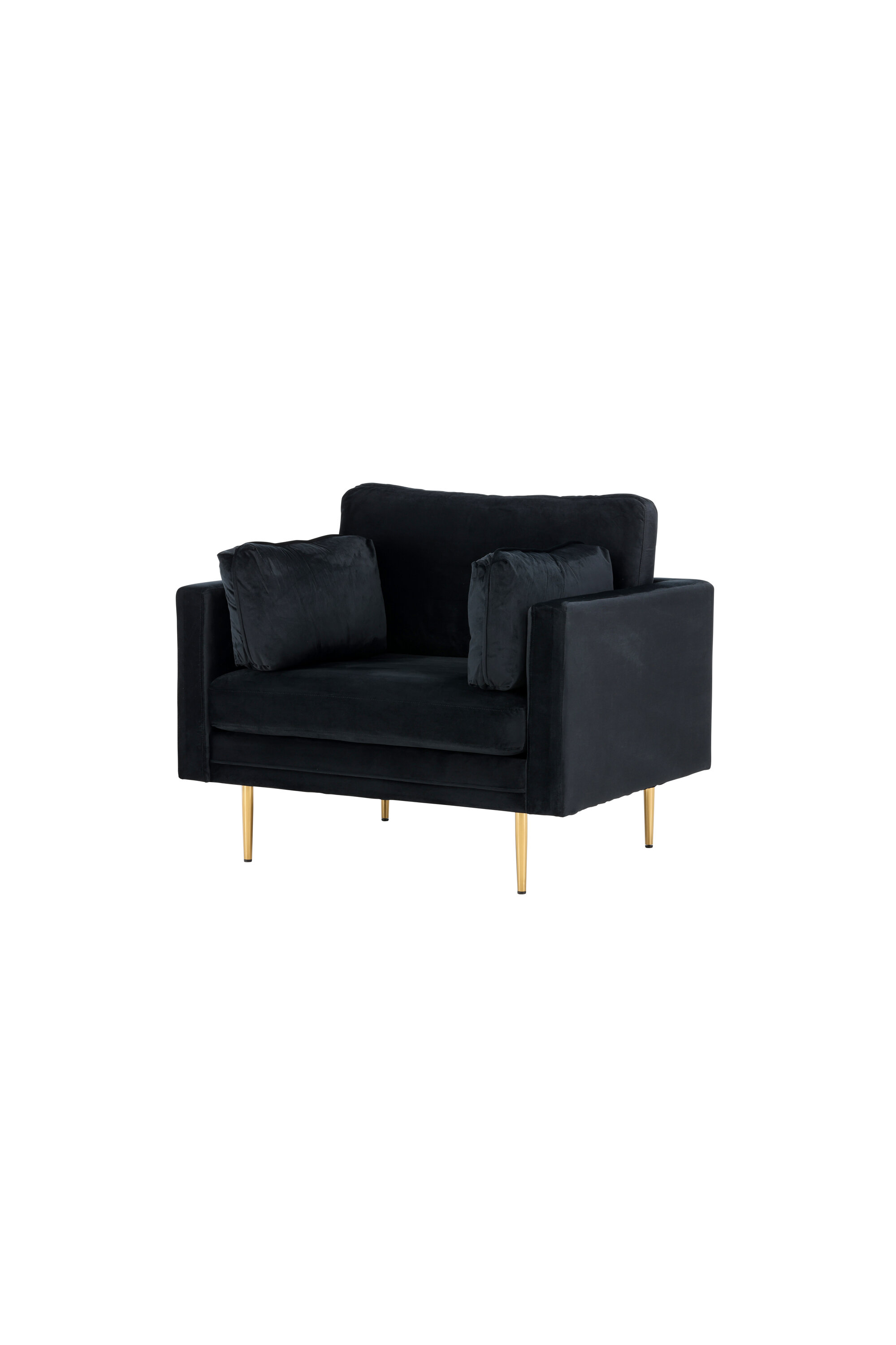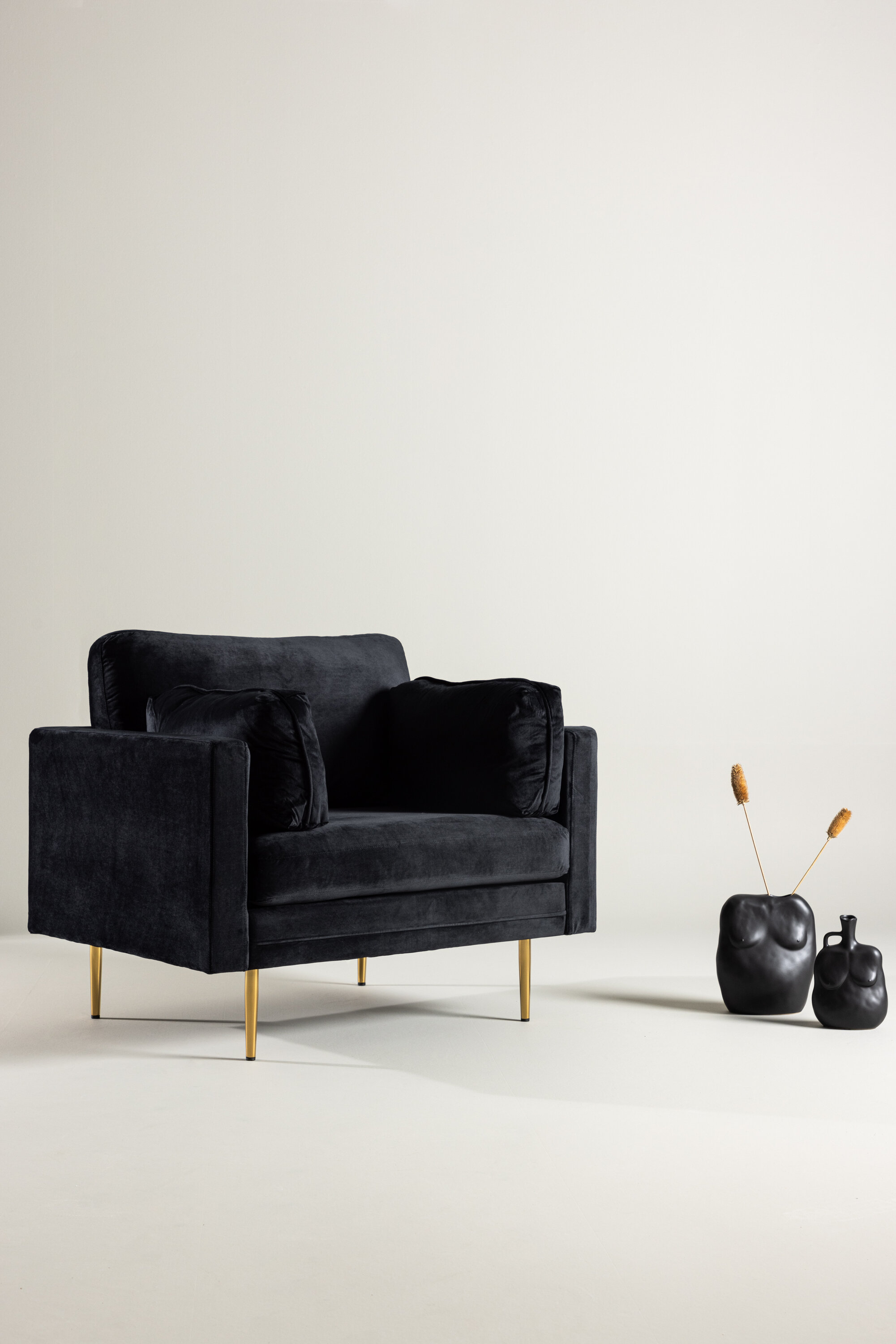 Boom on suure mugavuse ja elegantse disainiga kaasaegne tugitooli unistus! Julgelt musta sametkangaga riietatud tugitool jätab elutuppa elegantse mulje ja armsa läike. Sirge, kuid pehme disain ja õhukesed kõrged jalad loovad õhulise ja kutsuva tunde. Lihtsalt uskumatult läbimõeldud üldine disain kaetud seljatoega, mis võimaldab tugitooli paigutada keset tuba. Sisusta üksi stiiliikoonina või rühmas koos meie 3-kohalise diivaniga, mis on saadaval ka sarjas Boom.