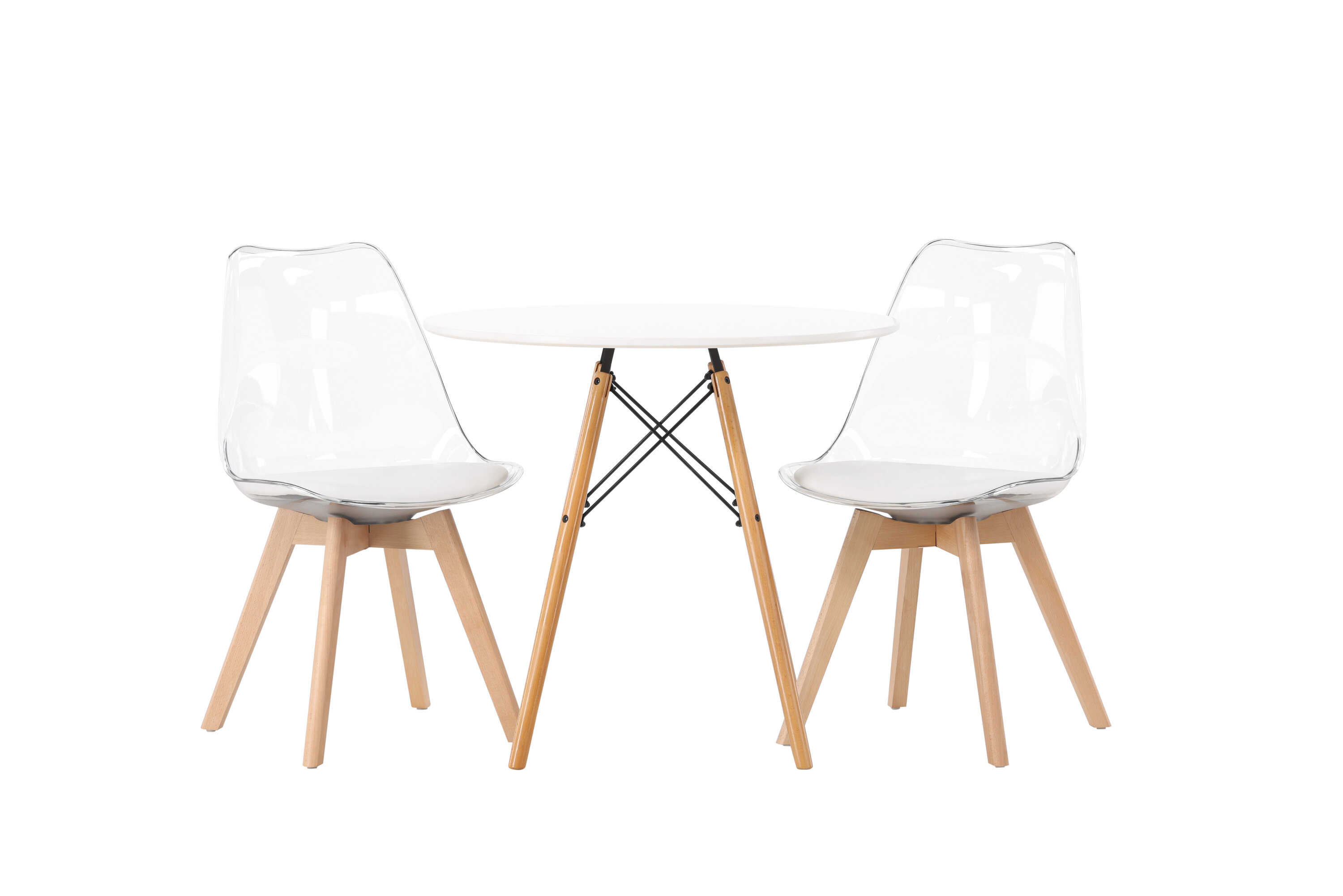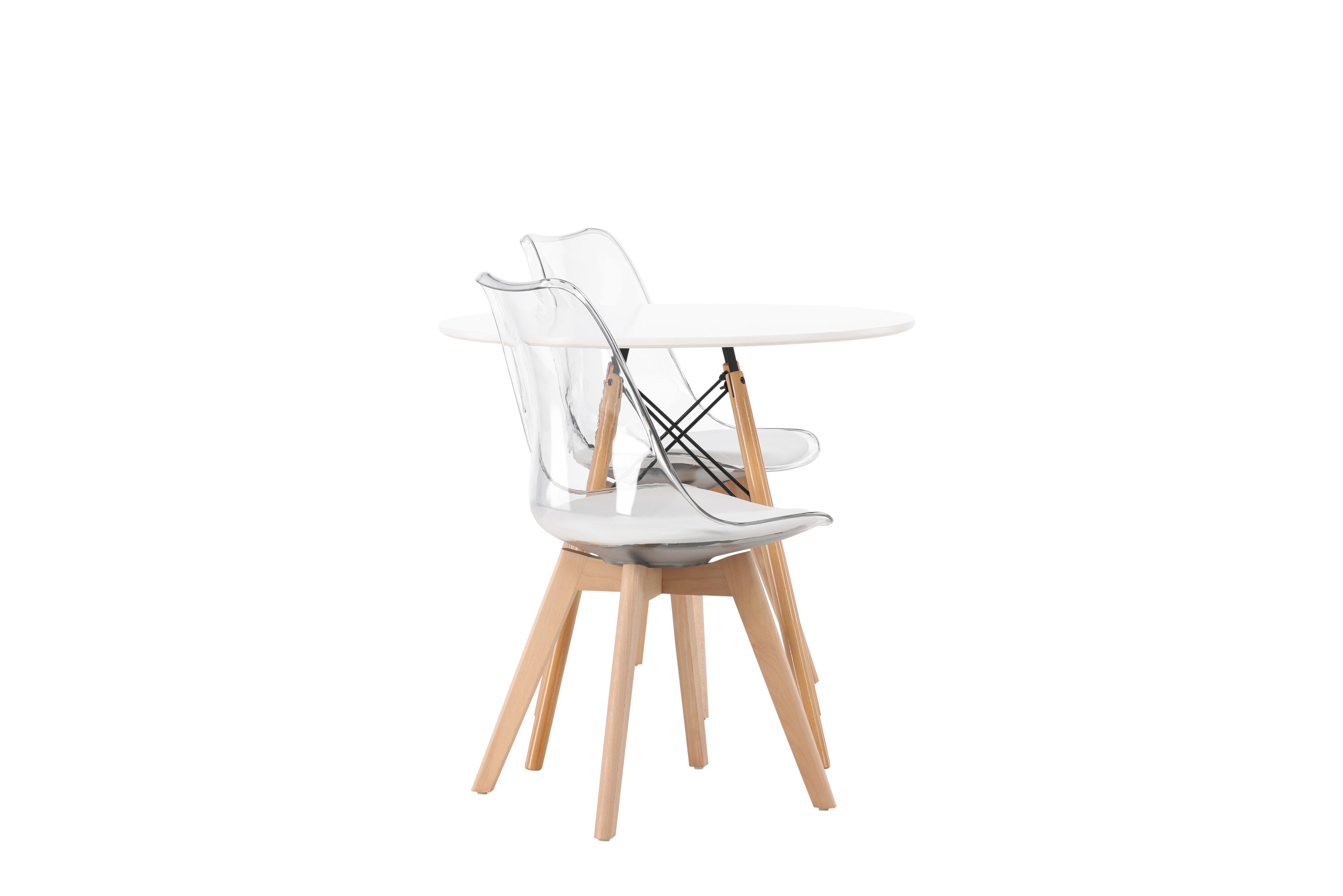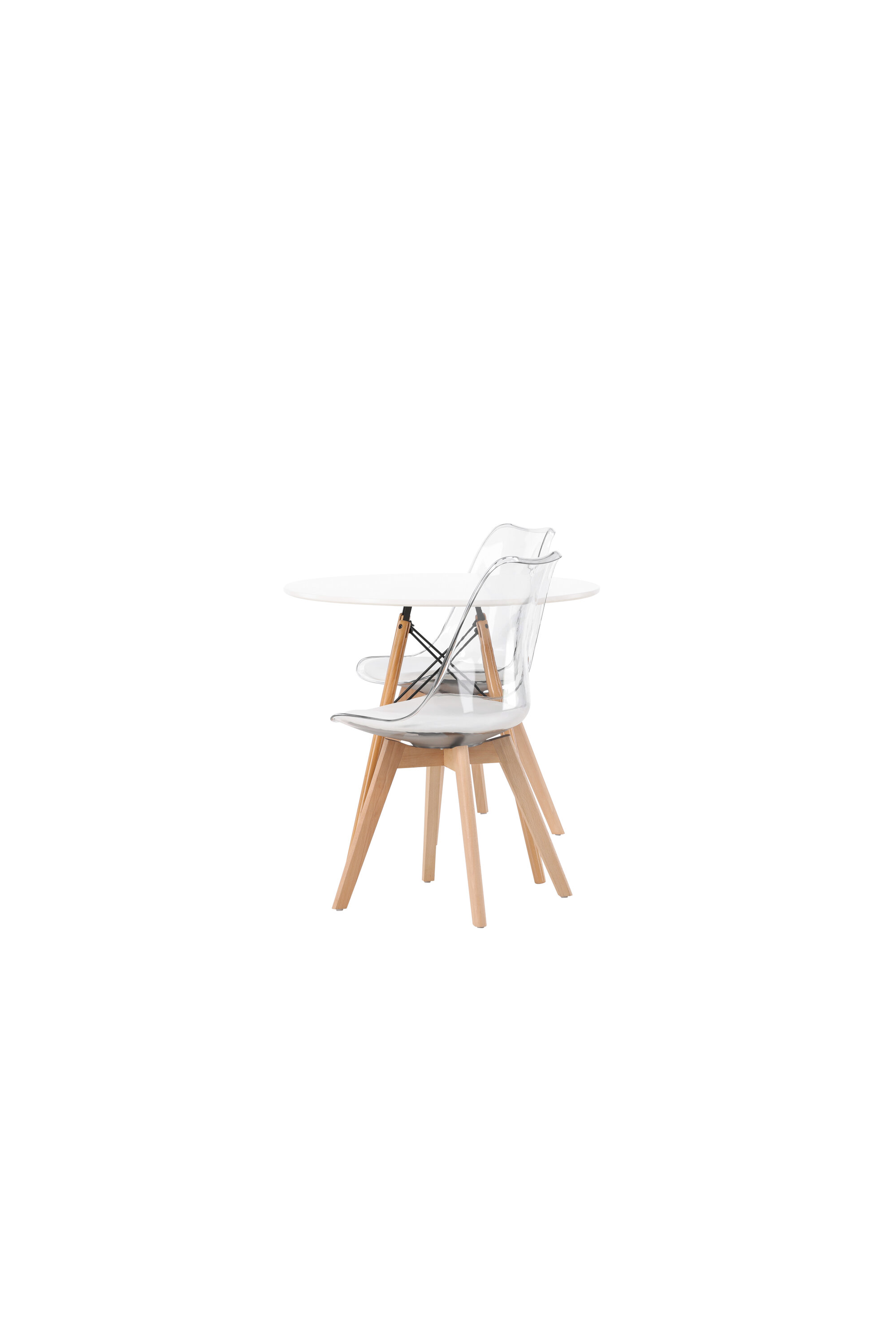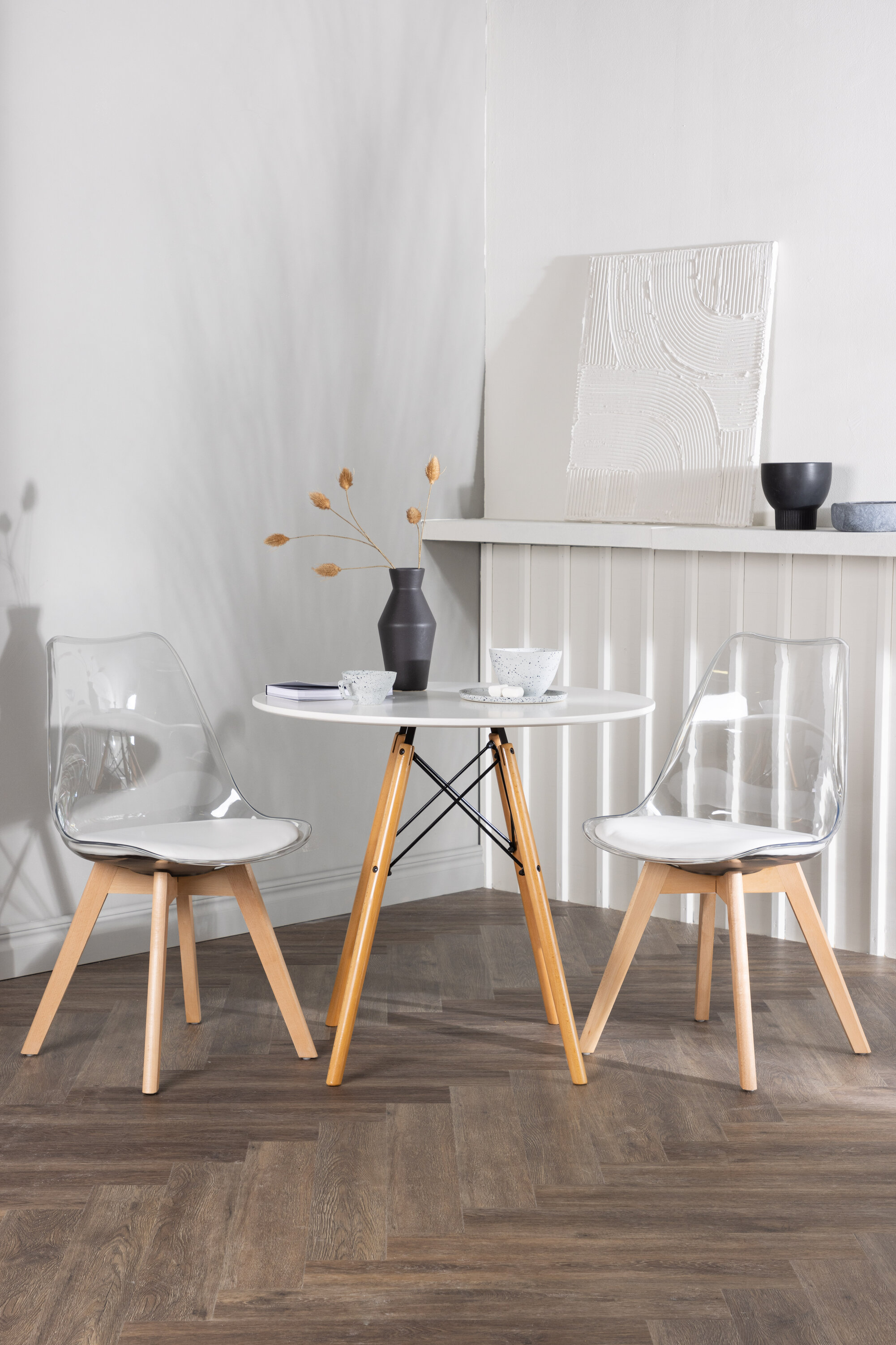 Moeteadlik pilgupüüdja! Ümmargune söögilaud Danburi on klassikalise disainiga, millel on valgest MDF-st ümmargune lauaplaat ja pöökpuidust kergelt laienevad jalad mustast terasest dekoratiivsete detailidega. Siin koos nutikate ja trendikate söögitoolidega sarjast Edvin. Läbipaistev iste on PET-materjalist koos valge istmepadjaga, mis lisab mugavust ja tooli jalad on kergelt laienenud naturaalsest puidust. Siin loote isikupärase ja trendika õhkkonna! Laua läbimõõt: 60 cm.