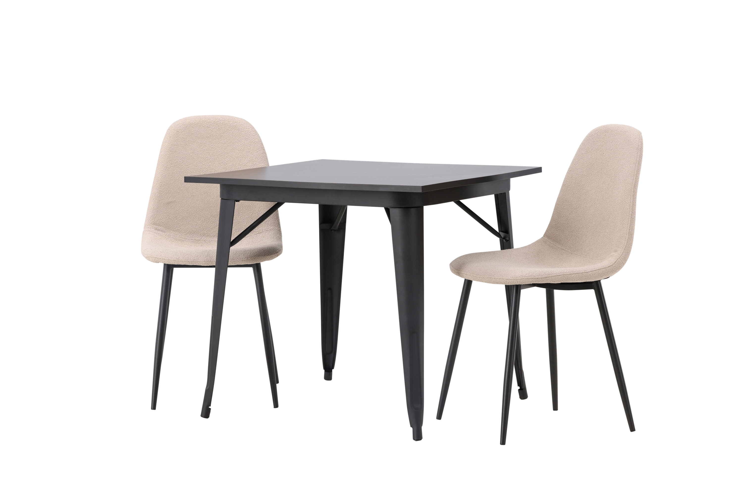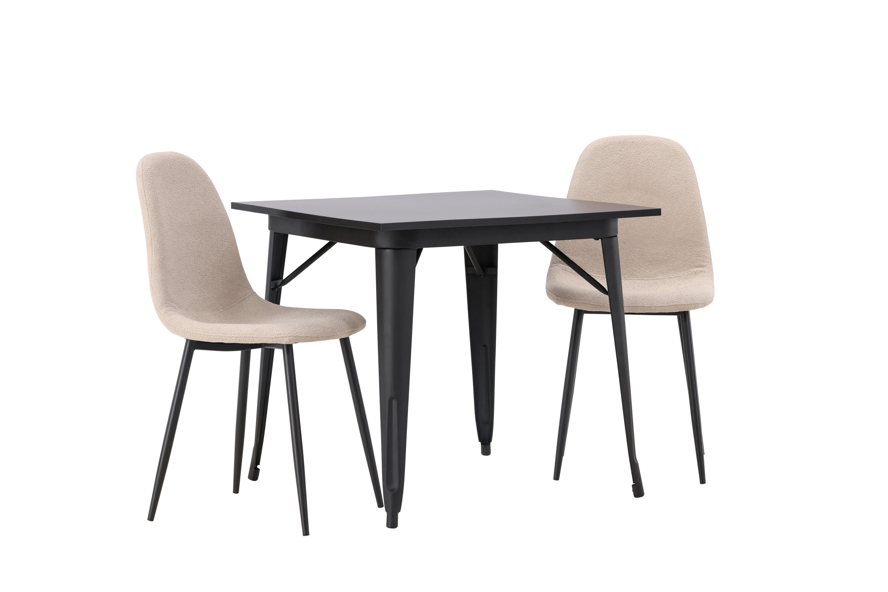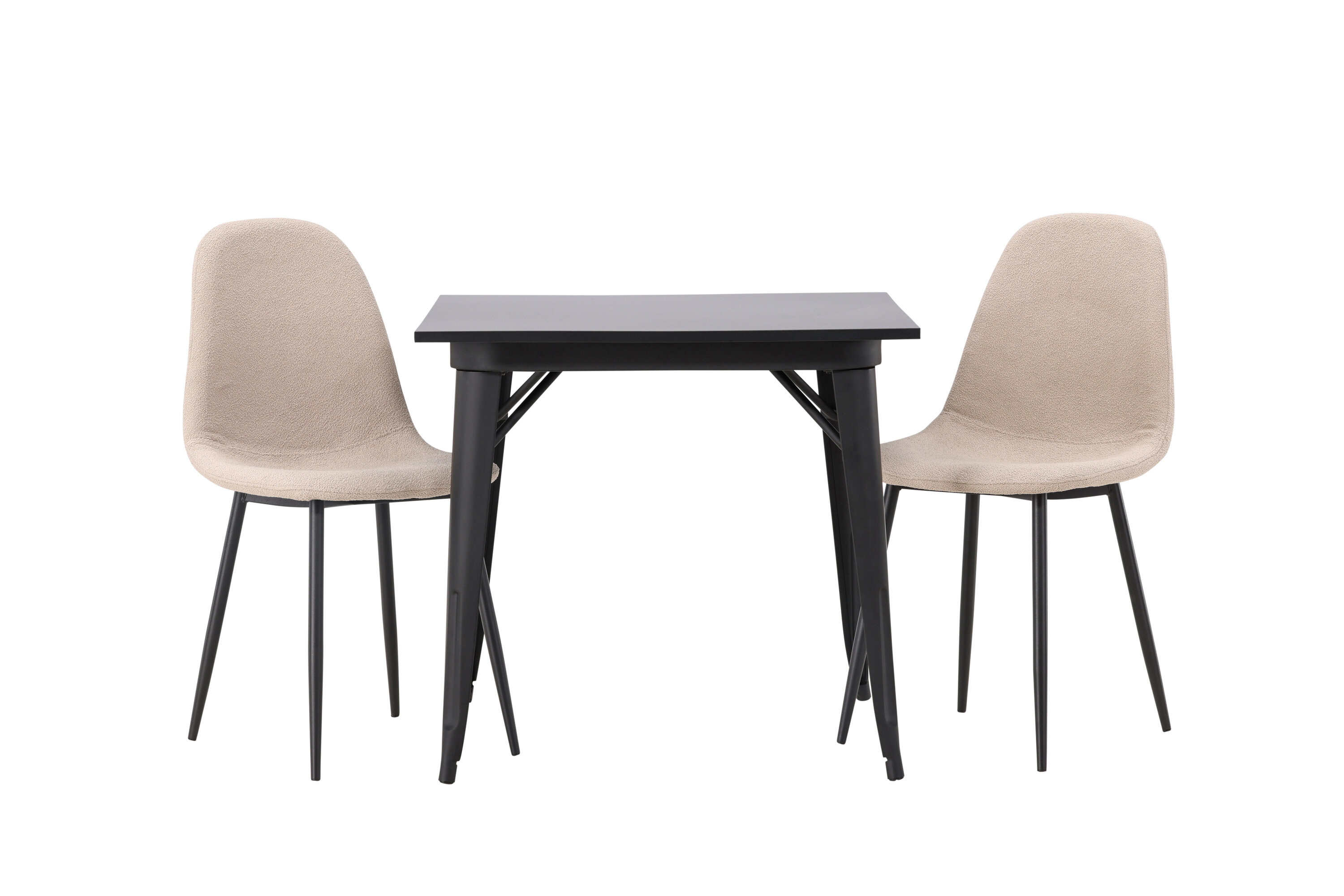 Pehmed vormid ja soojad värvid! Meie kandiline söögilaud Tempe on kena suuruse ja trendika skandinaavialiku disainiga. Valmistatud mustast MDF-ist lauaplaadiga ja mustast metallist lauajalad. Siin moodsas kombinatsioonis Polari seeria beežide söögitoolidega. Toolil on täielikult polsterdatud disain, jalad on mustast pulbervärvitud metallist ning ümar seljatugi ja iste pehme polstriga beežist kimpkangast. Istuge mugavalt ja nautige võluvat söögigruppi! Laua mõõdud: 80x80cm.