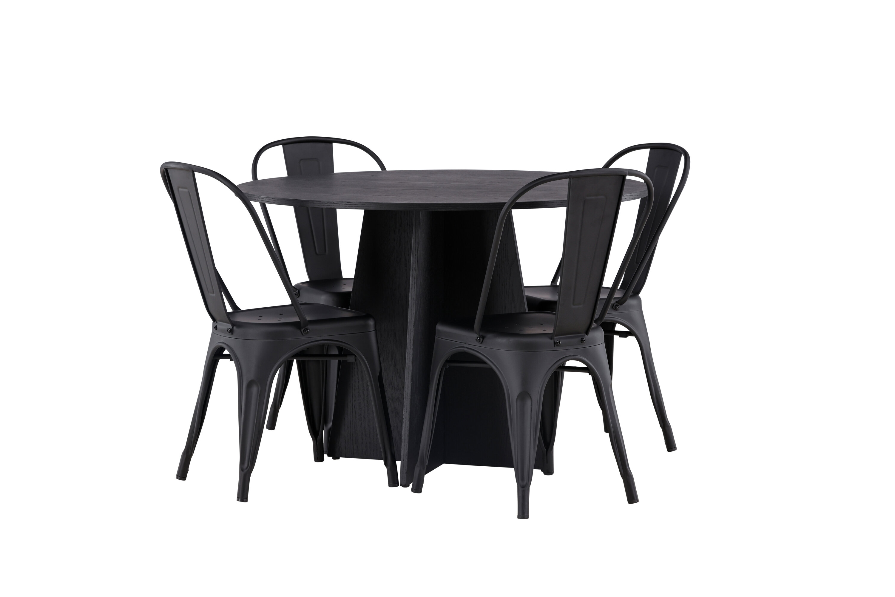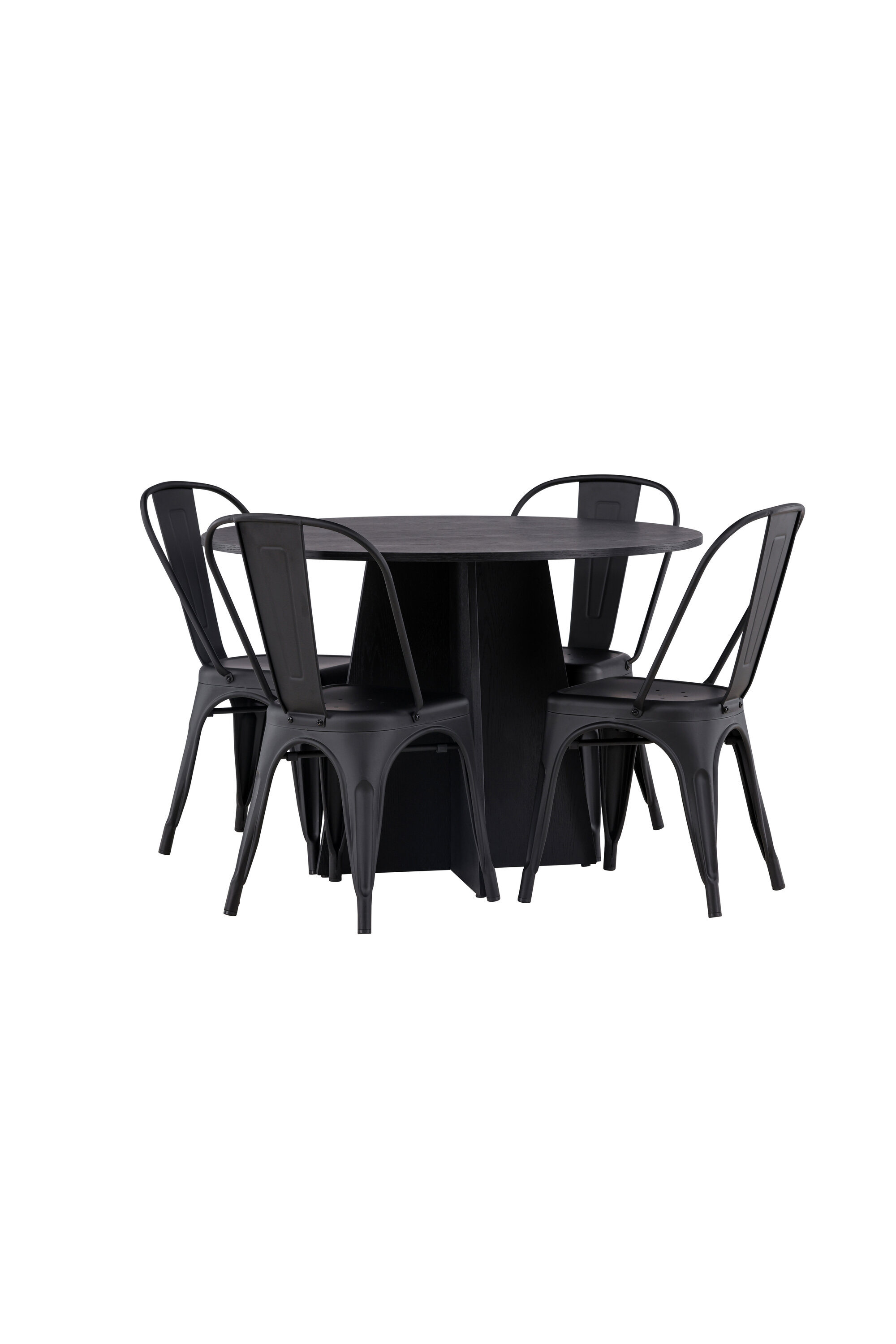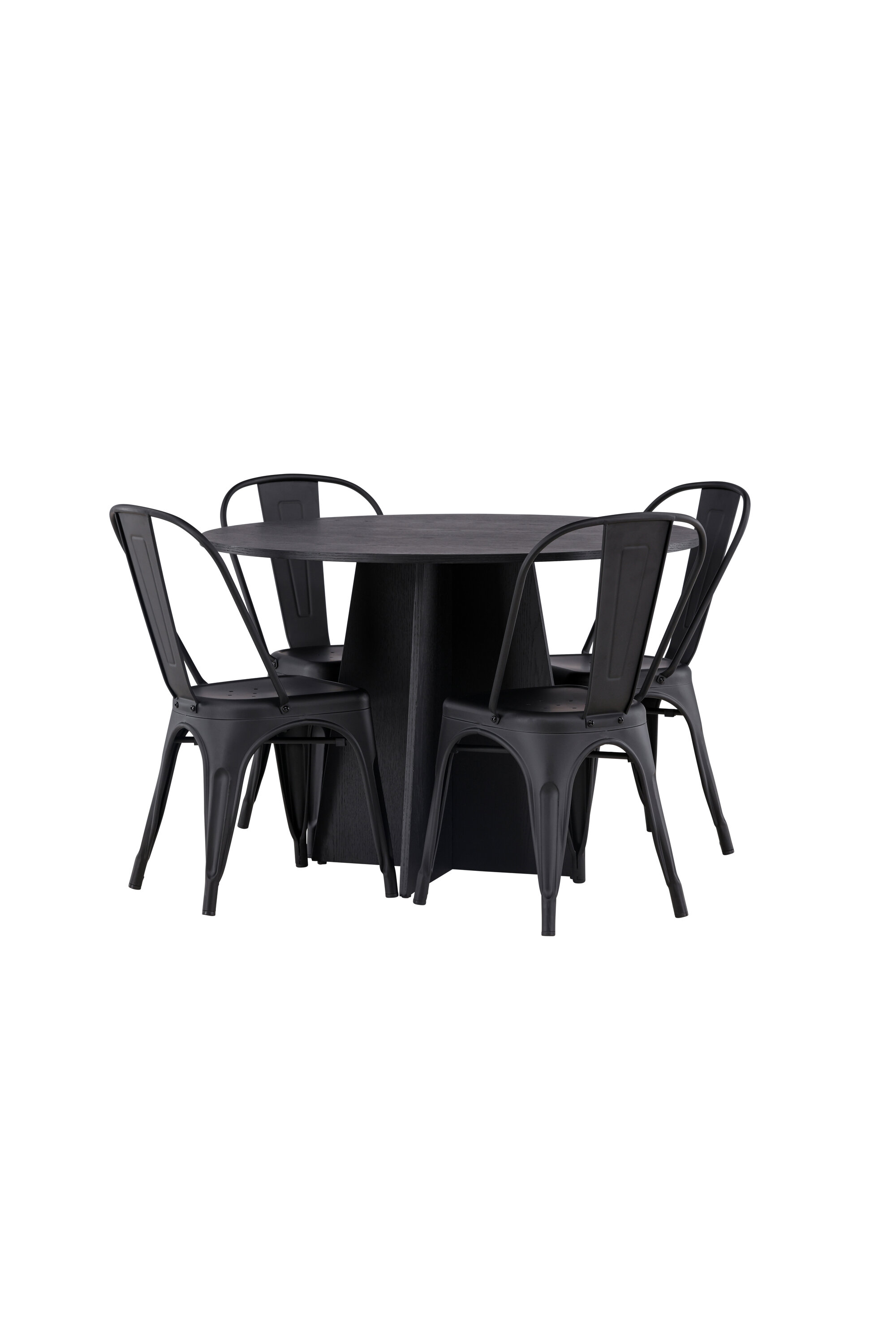 Loo oma koju trendikindel atmosfäär! Ühtlaselt mustas värvitoonis ümmargusel söögilaual Bootcut on spooniga MDF-ist lauaplaat ja disainirikas raam, mis jätab üldpildile armsa mulje. Siin koos meie Tempe sarja mustade söögitoolidega. Tooli kergelt laienevad jalad, mis sujuvalt istme ja seljatoega kokku puutuvad stiilse disainiga, ühtlaselt mustast metallist. Sisusta kodu süda kutsuvalt! Laua mõõdud: 110 cm.