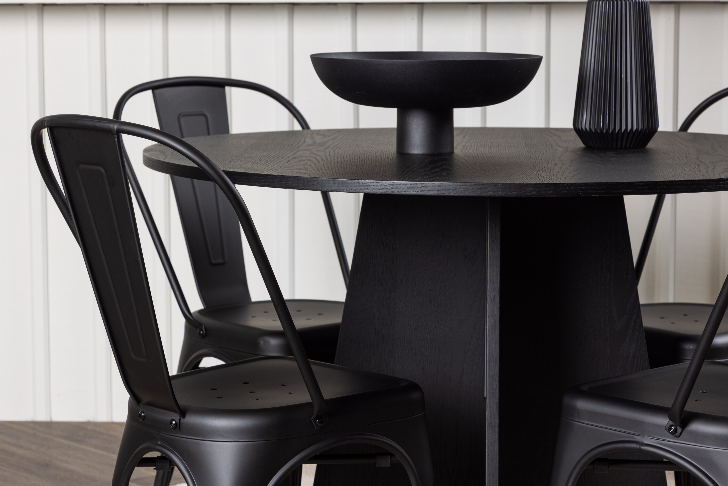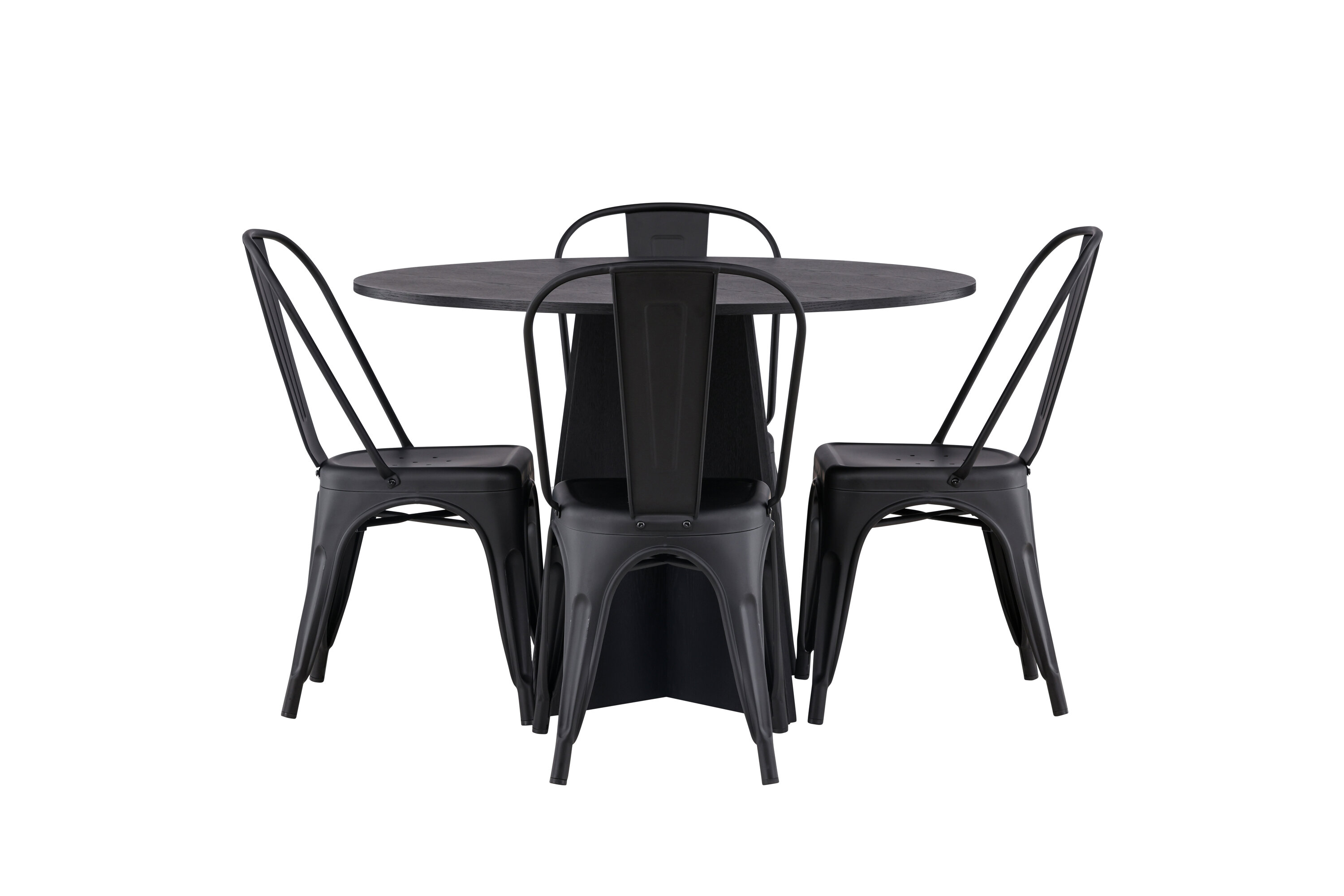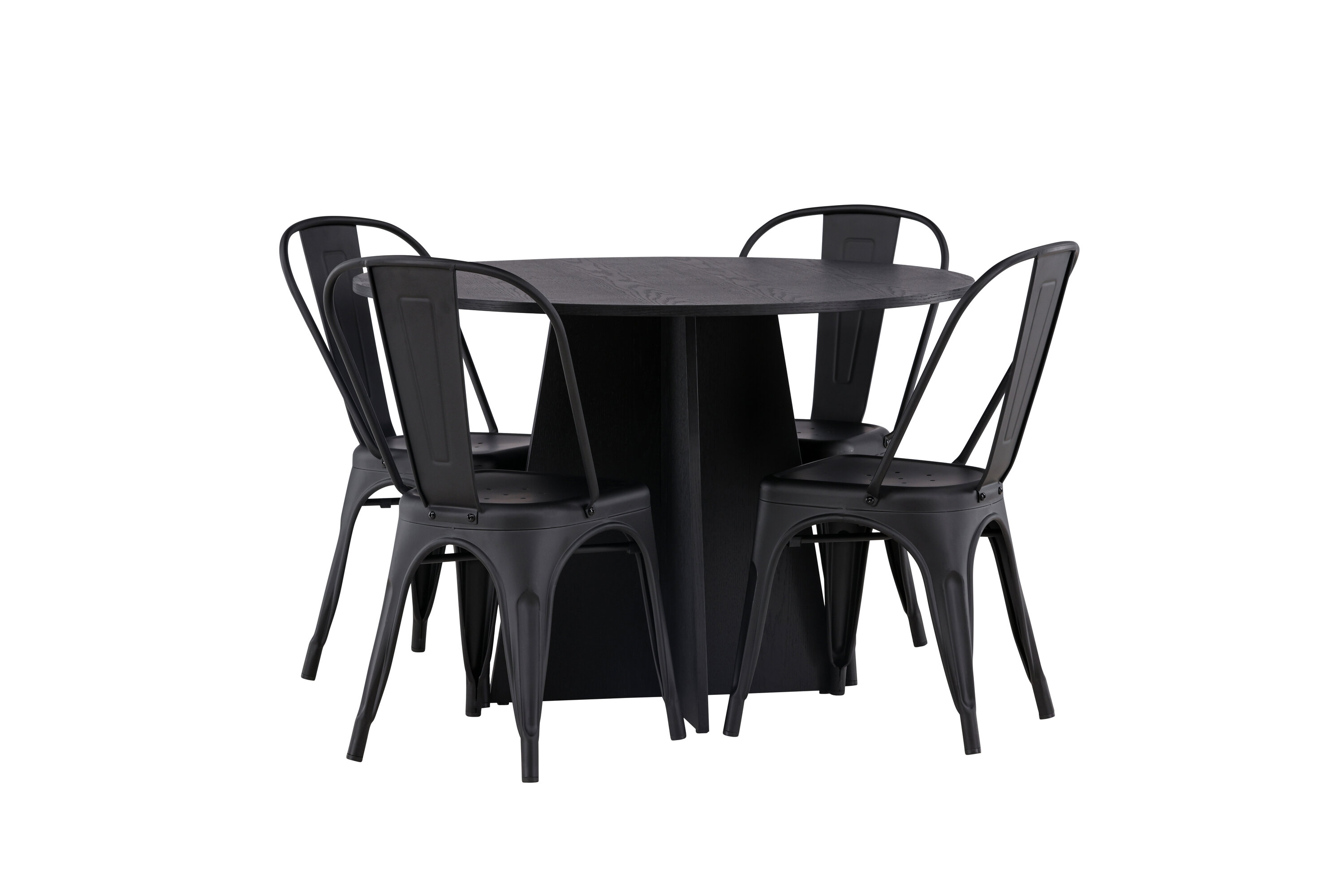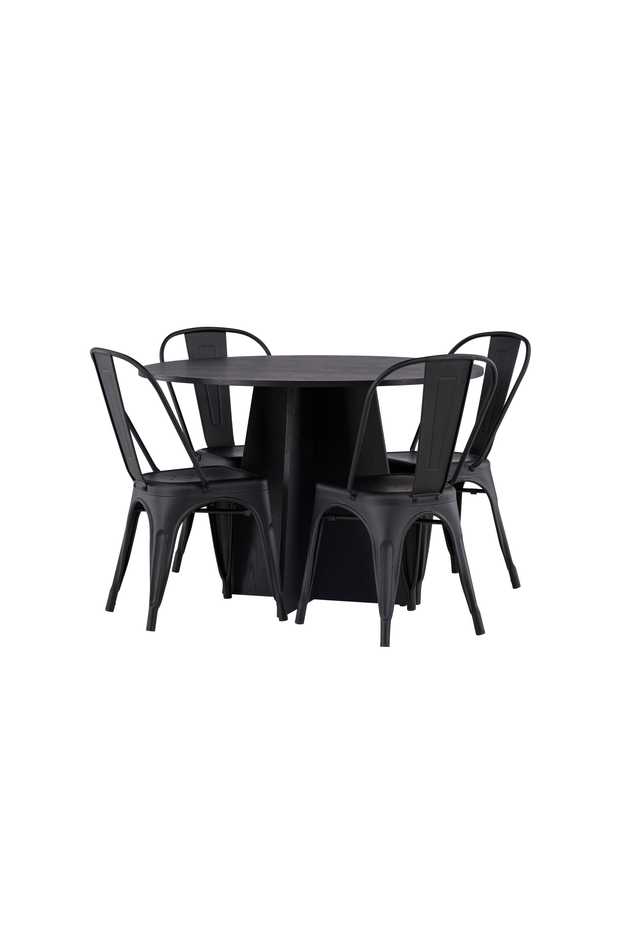Loo oma koju trendikindel atmosfäär! Ühtlaselt mustas värvitoonis ümmargusel söögilaual Bootcut on spooniga MDF-ist lauaplaat ja disainirikas raam, mis jätab üldpildile armsa mulje. Siin koos meie Tempe sarja mustade söögitoolidega. Tooli kergelt laienevad jalad, mis sujuvalt istme ja seljatoega kokku puutuvad stiilse disainiga, ühtlaselt mustast metallist. Sisusta kodu süda kutsuvalt! Laua mõõdud: 110 cm.