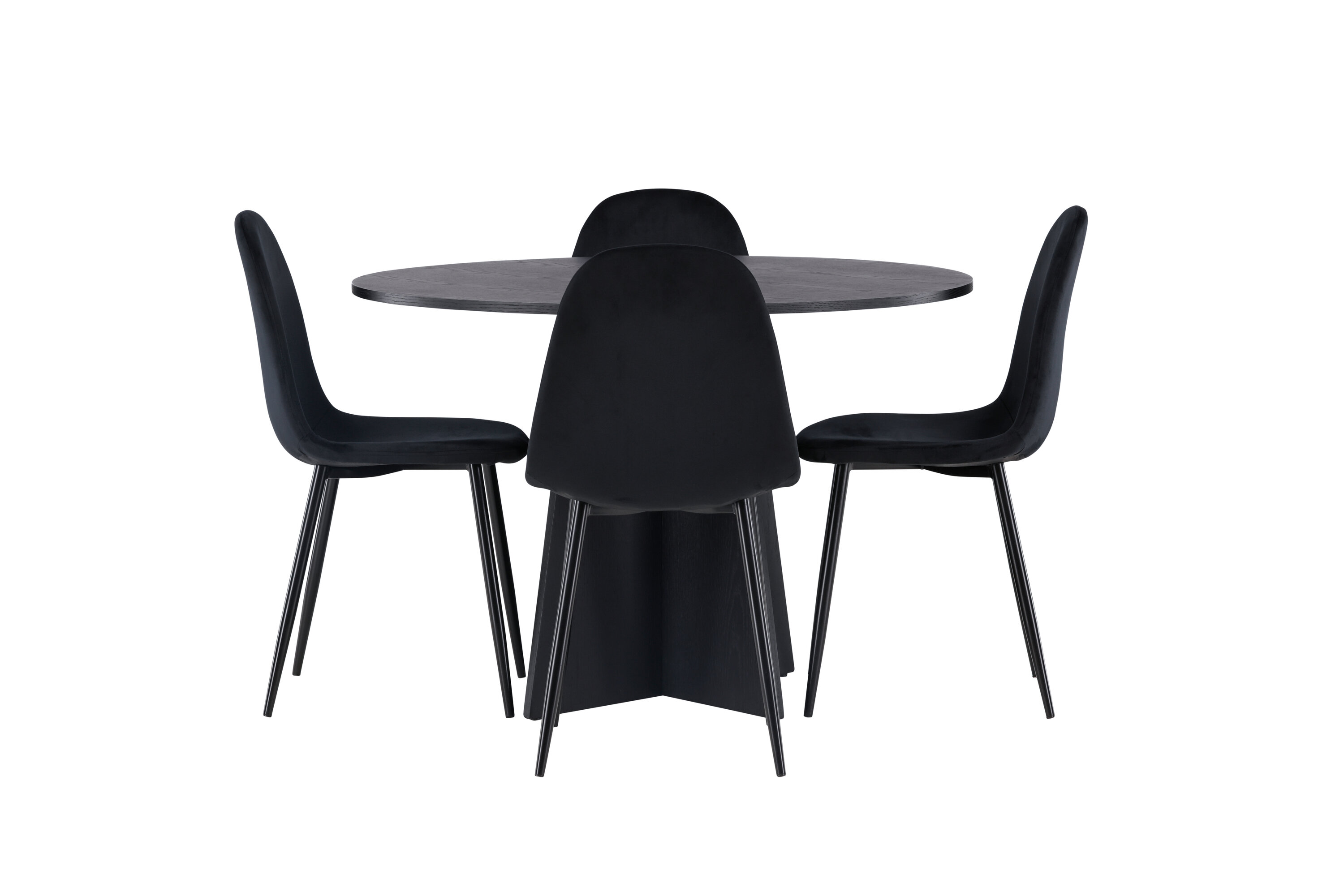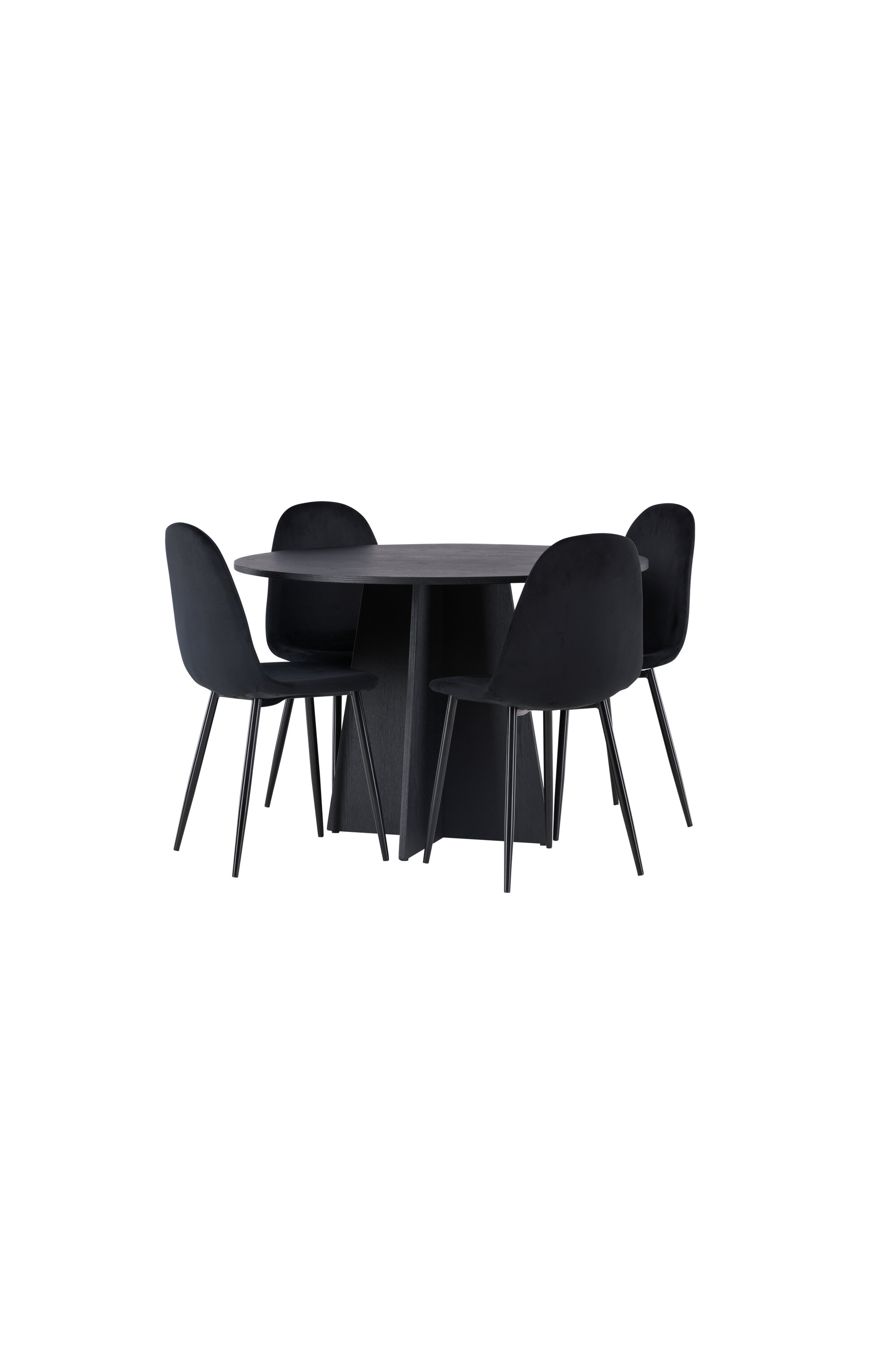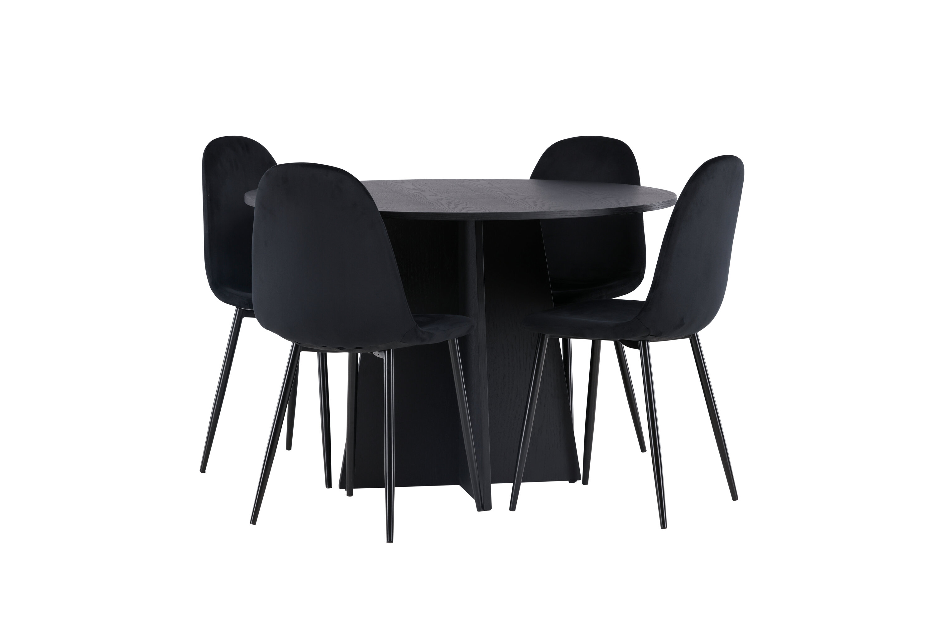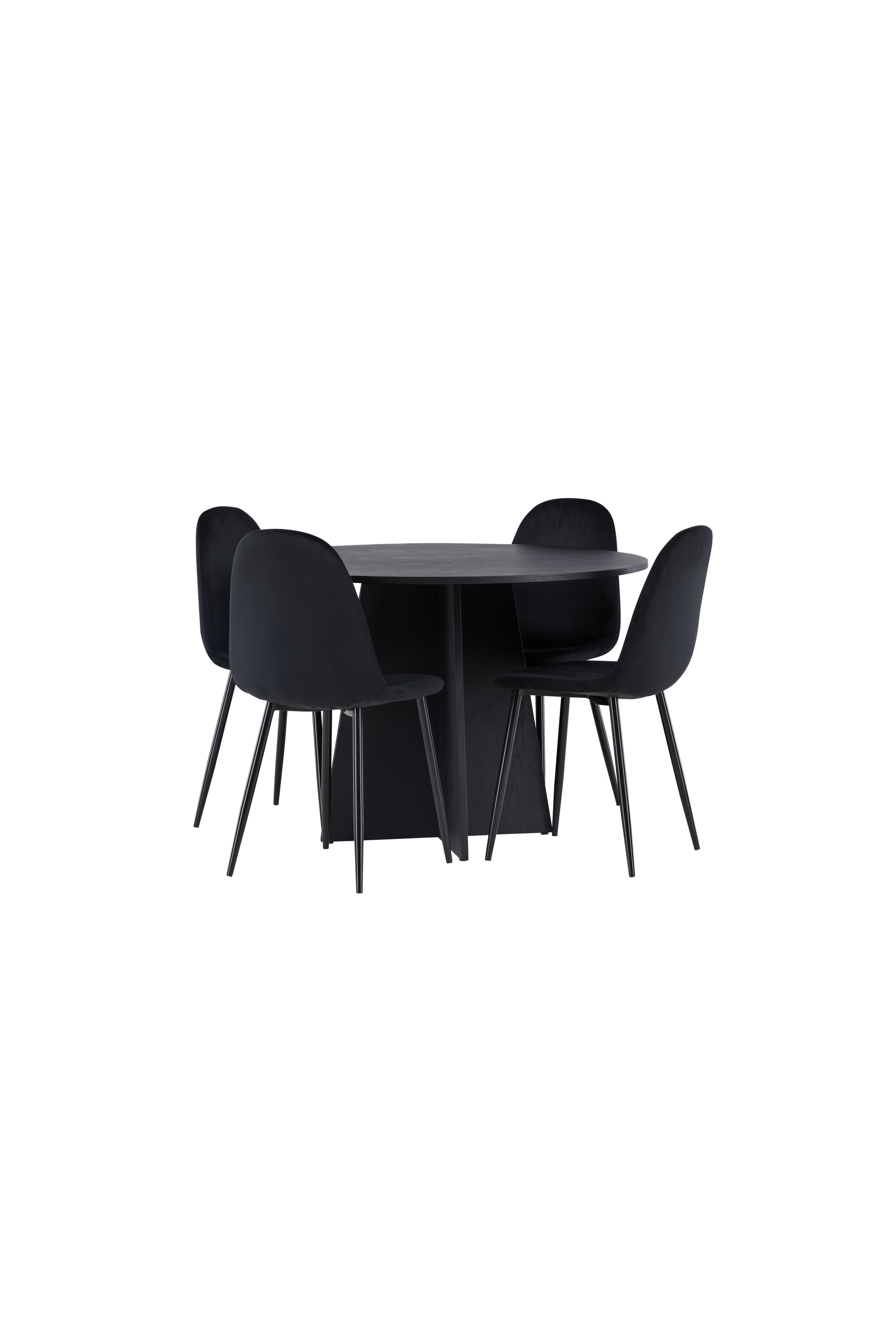 Üks mustanahaline söögigrupp ei lähe kunagi moest välja! Ühtlaselt mustas värvitoonis ümmargusel söögilaual Bootcut on spooniga MDF-ist lauaplaat ja disainirikas raam, mis jätab üldpildile armsa mulje. Siin stiilne kombinatsioon Polari sarja mustade söögitoolidega. Toolil on täielikult polsterdatud disain, jalad on mustast pulbervärvitud metallist ning ümar seljatugi ja iste on mustast sametkangast pehme polstriga. Sisusta nutikalt ja mugavalt! Laua mõõdud: 110 cm.