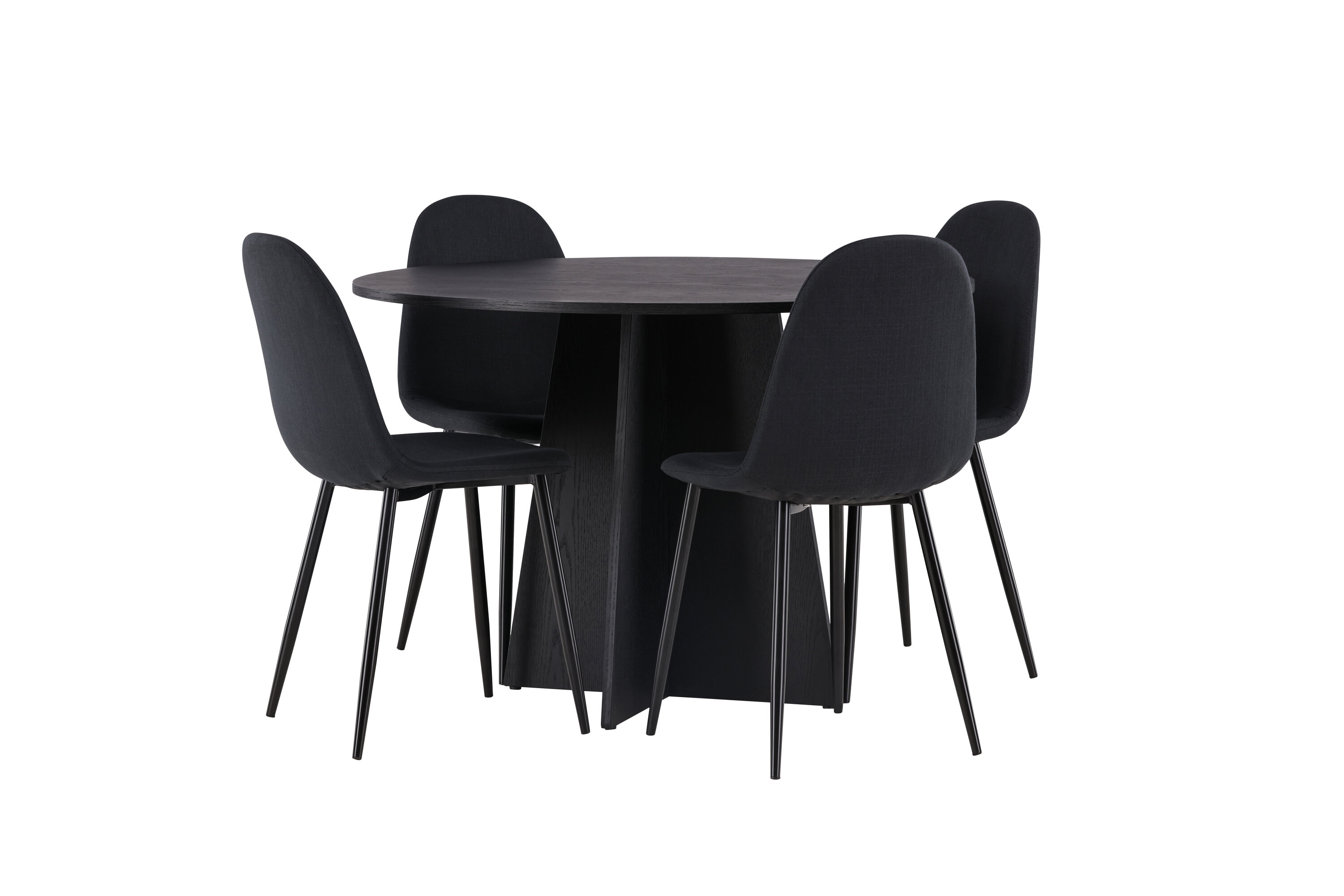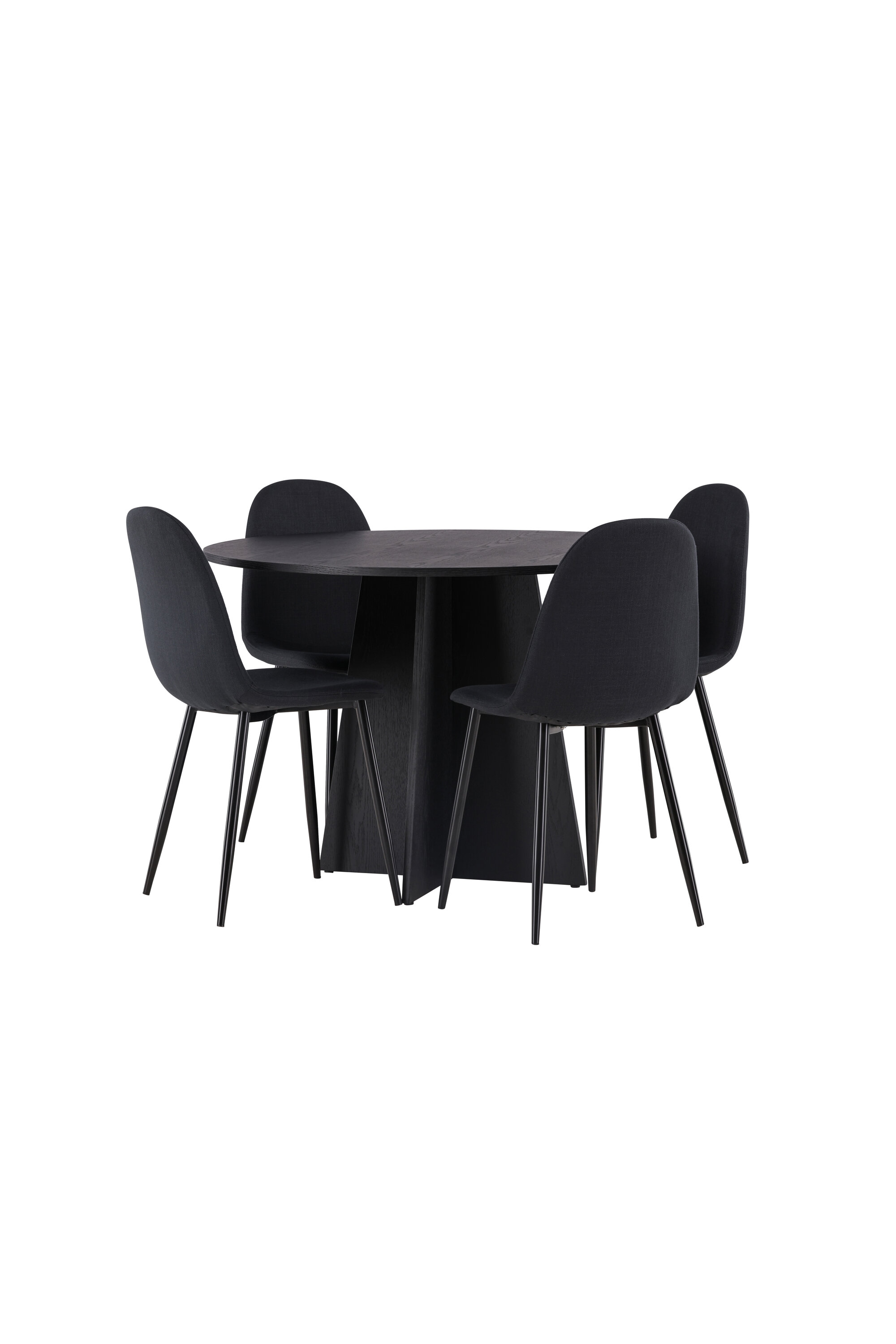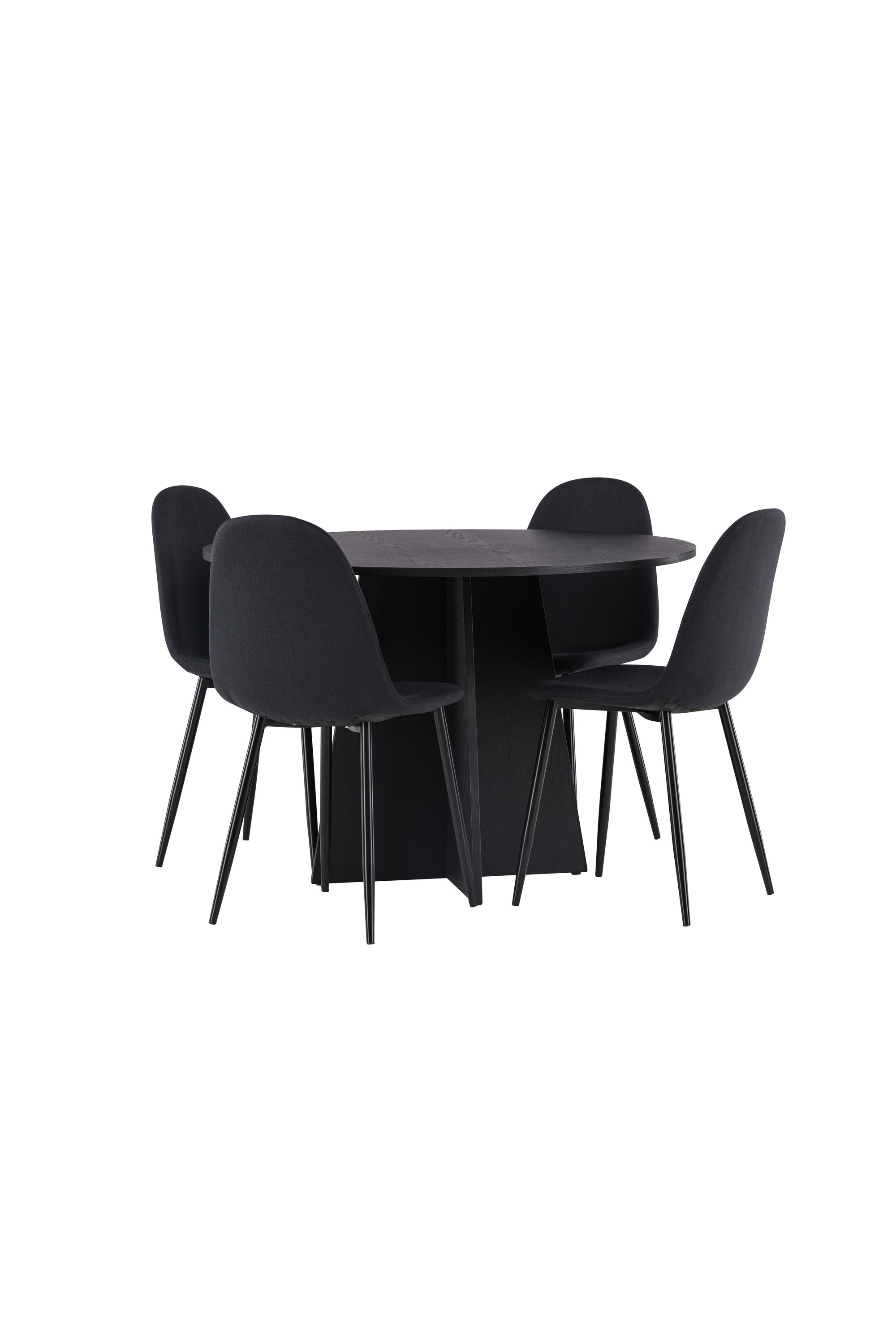 Sellest paremaks ei lähe! Ühtlaselt mustas värvitoonis ümmargusel söögilaual Bootcut on spooniga MDF-ist lauaplaat ja disainirikas raam, mis jätab üldpildile armsa mulje. Siin on laud kombineeritud Polari sarja mustade söögitoolidega. Toolil on ümar disain ja klassikaline disain – nii praktiline kui ka ajatu. Seljatugi ja iste on polsterdatud musta polüesterkangaga ning jalad musta pulbervärvitud metalliga. Sisusta oma kodu võluvalt ja mugavalt! Laua mõõdud: 110 cm.