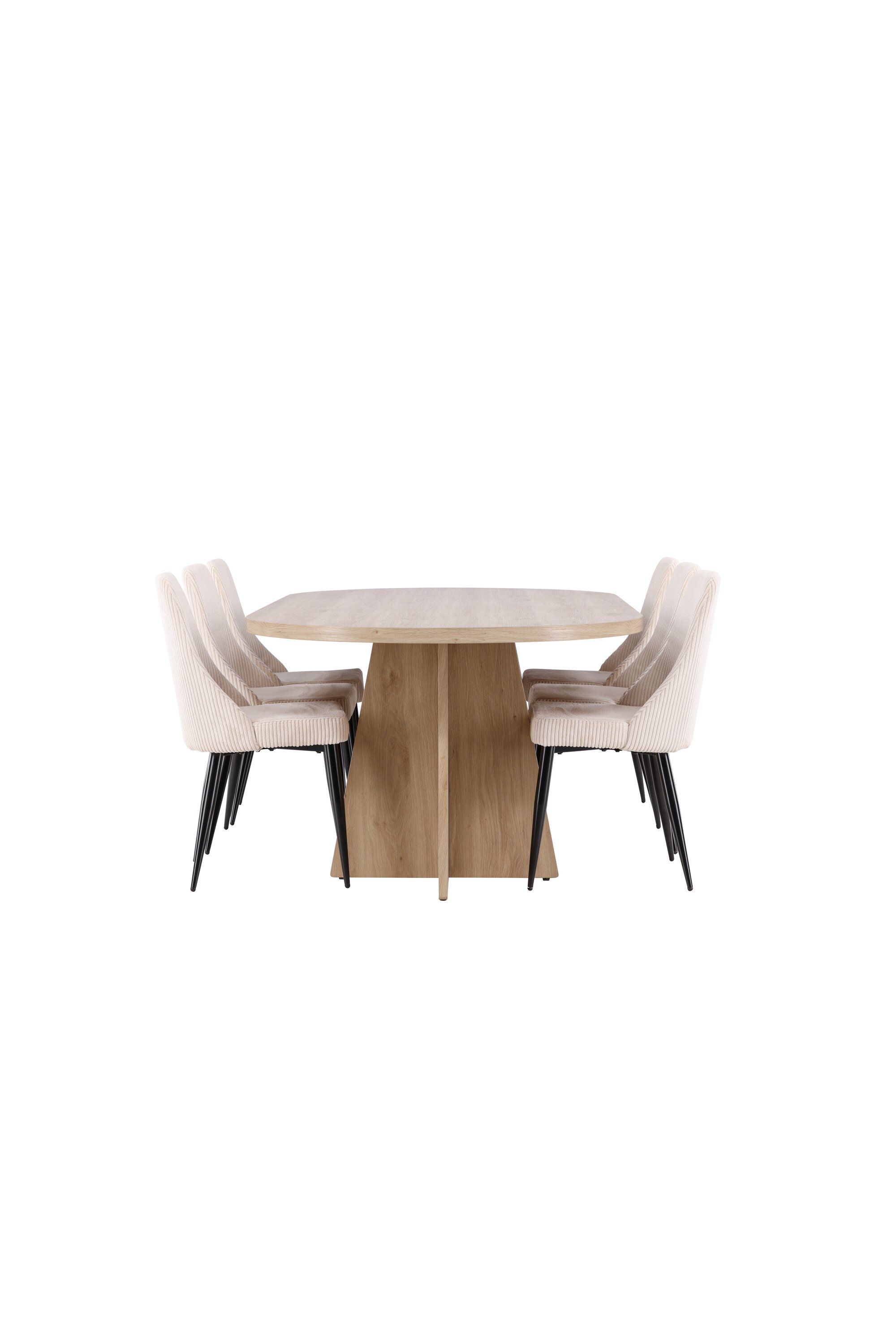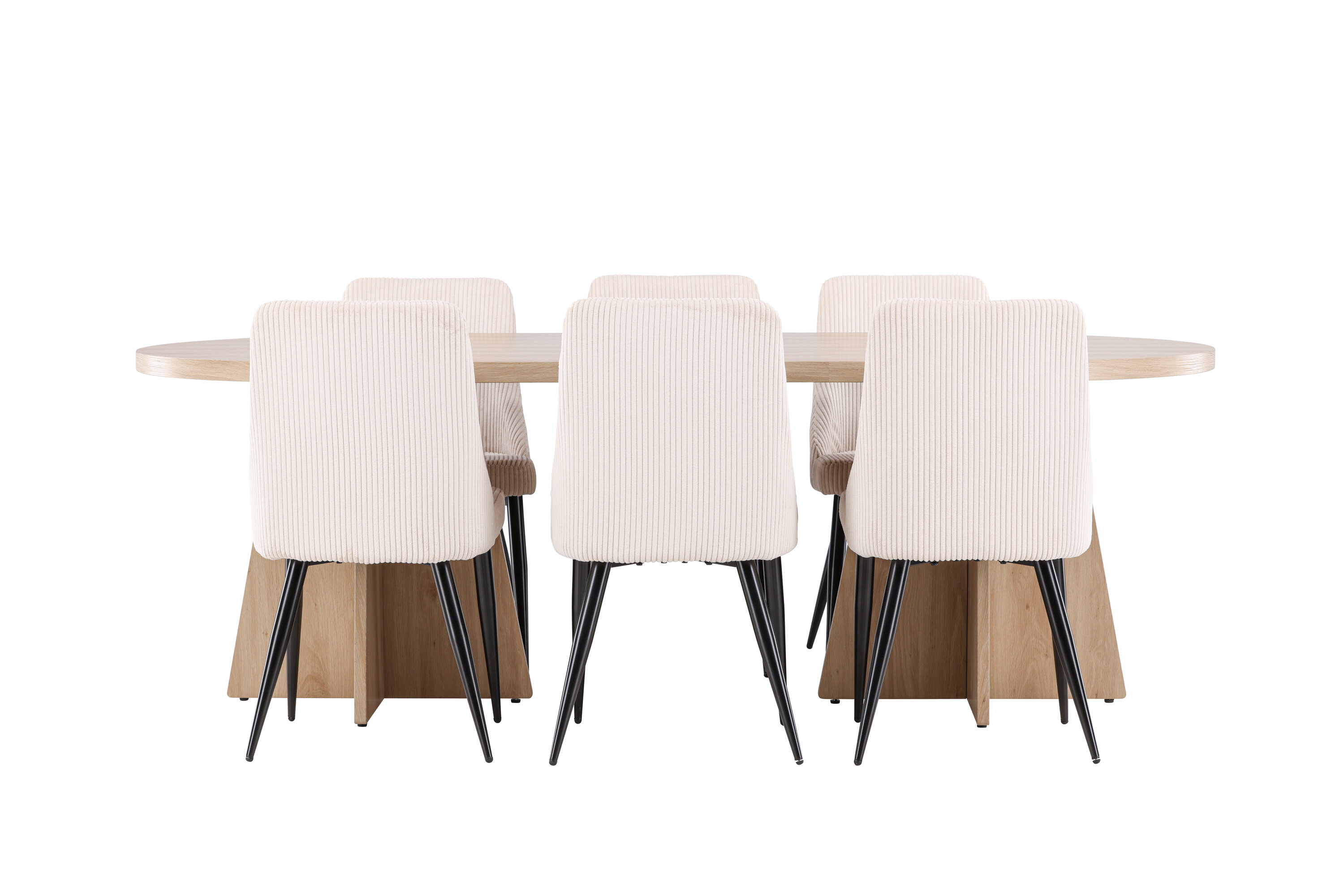 Avastage täiuslik stiili ja funktsionaalsuse kombinatsioon söögikomplektiga, mis sisaldab Leone söögitooli ja Bootcut söögilauda. Üheskoos loovad need elegantse ja kutsuva atmosfääri kõikideks teie söögikordadeks ja seltskondlikeks koosviibimisteks. Tool on FSC®-sertifikaadiga (FSC®C177288), mis tähendab, et see koosneb vastutustundlikust metsandusest, inimeste ja keskkonnaga arvestavast metsandusest pärit puidust. Leone on söögitool, mis ühendab elegantselt stiili ja mugavuse. Terasest jalgadega sametist valmistatud Leone pakub täiuslikku tasakaalu funktsiooni ja esteetika vahel. Pehme beež värv annab Leonele sooja ja kutsuva tunde, muutes selle ideaalseks täienduseks teie söögilauale või köögile. Selle lihtne disain muudab selle mitmekülgseks ja sobib suurepäraselt erinevate interjööri stiilidega. Olgu tegemist igapäevaste söögikordade või eriliste sündmustega, Leone pakub mugavat ja stiilset istumiskohta. Andke oma söögitoale elegantsi ja mugavust Leone söögitooliga, mis muudab söömise naudinguks. Oma mugava disaini ja stiilse esteetikaga saab Leonest teie kodu armastatud osa. Avastage Bootcut söögilaua ilu ja funktsionaalsus – ideaalne valik meeldejäävate hetkede loomiseks sõprade ja perega. Muljetavaldavate mõõtmetega 230×115 cm pakub see laud palju ruumi seltskondlikeks õhtusöökideks ja pikkadeks vestlusteks. Bootcuti söögilaud on meeldivalt valgeks lubjatud värvitoonis, mis annab teie toale maalähedase tunde. Selle skandinaavialik disain ja puhtad jooned loovad teie kodus stiilse ja kaasaegse atmosfääri. Looge kutsuv õhkkond ja laske Bootcuti söögilaual olla teie seltskondlike koosviibimiste keskpunkt. Olgu tegemist pereõhtusöögi või piduliku sündmusega, see muljetavaldav laud muudab iga sündmuse meeldejäävaks. Andke oma kodule lihtsat elegantsi ja seltskondlikkust söögilauaga Bootcut – see on ideaalne koht lähedaste kogumiseks ja kestvate mälestuste loomiseks.