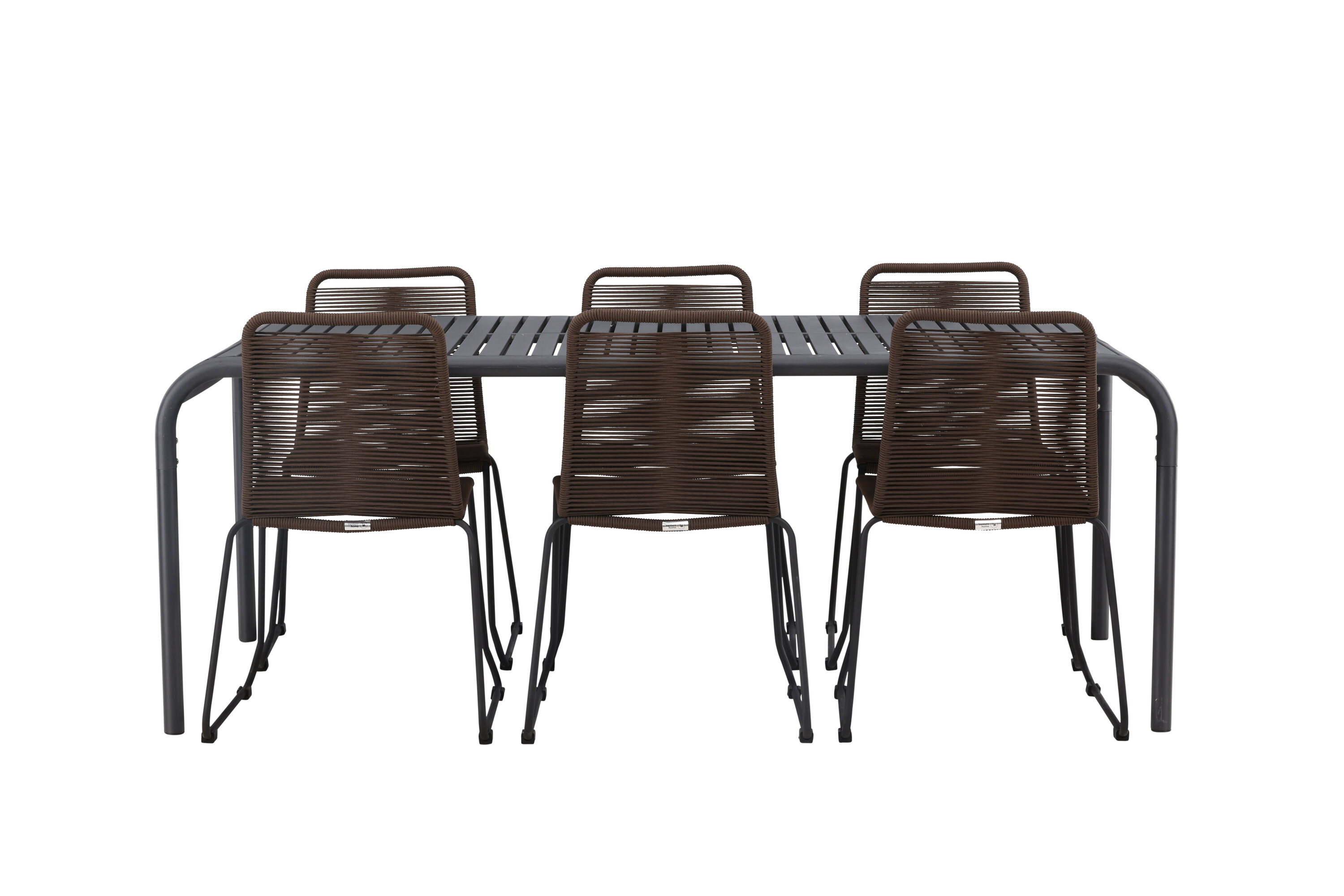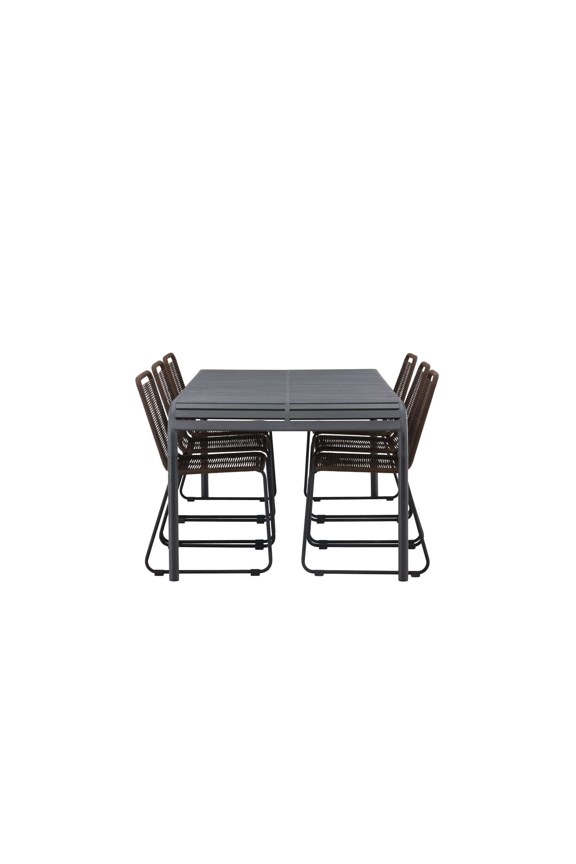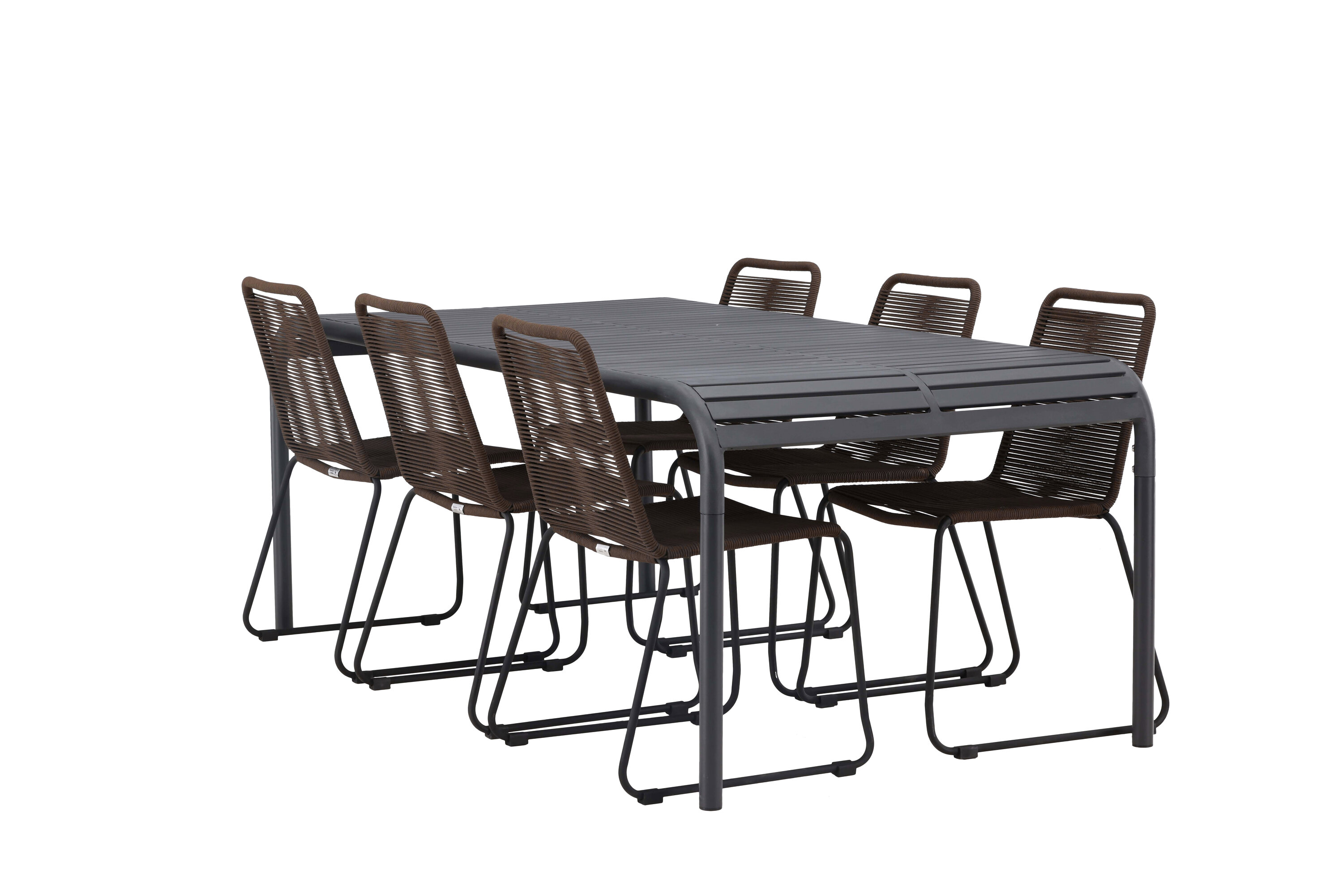Maalähedastes värvides ja kaasaegse disainiga söögigrupp! Ristkülikukujulisel söögilaual Borneo on painduvad vormid ja soonikkoes lauaplaat, mis lainetab mööda servi mööda jalgu. Kõik kokku valmistatud vastupidavast materjalist alumiiniumist. Siin fantastiline kombinatsioon Lindose sarja söögitoolidega. Toolil on trendikas disain, mille iste on pruunist trossist ja raam on mustast terasest. Siit saate oma siseõuele moodsa pilgupüüdja ja mõnusa söögigrupi kõikideks söögikordadeks! Laua mõõdud: 200x100x75cm.
