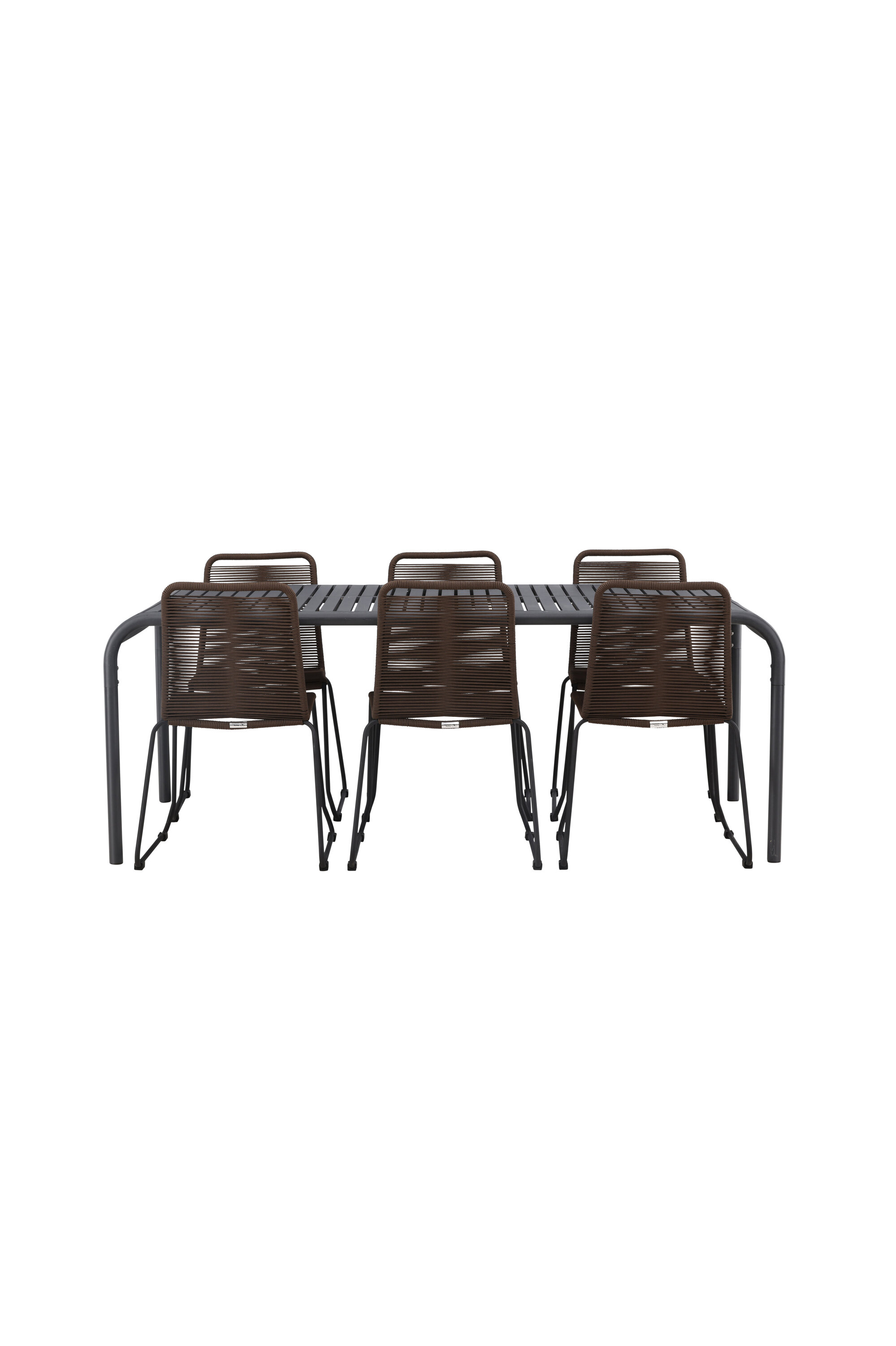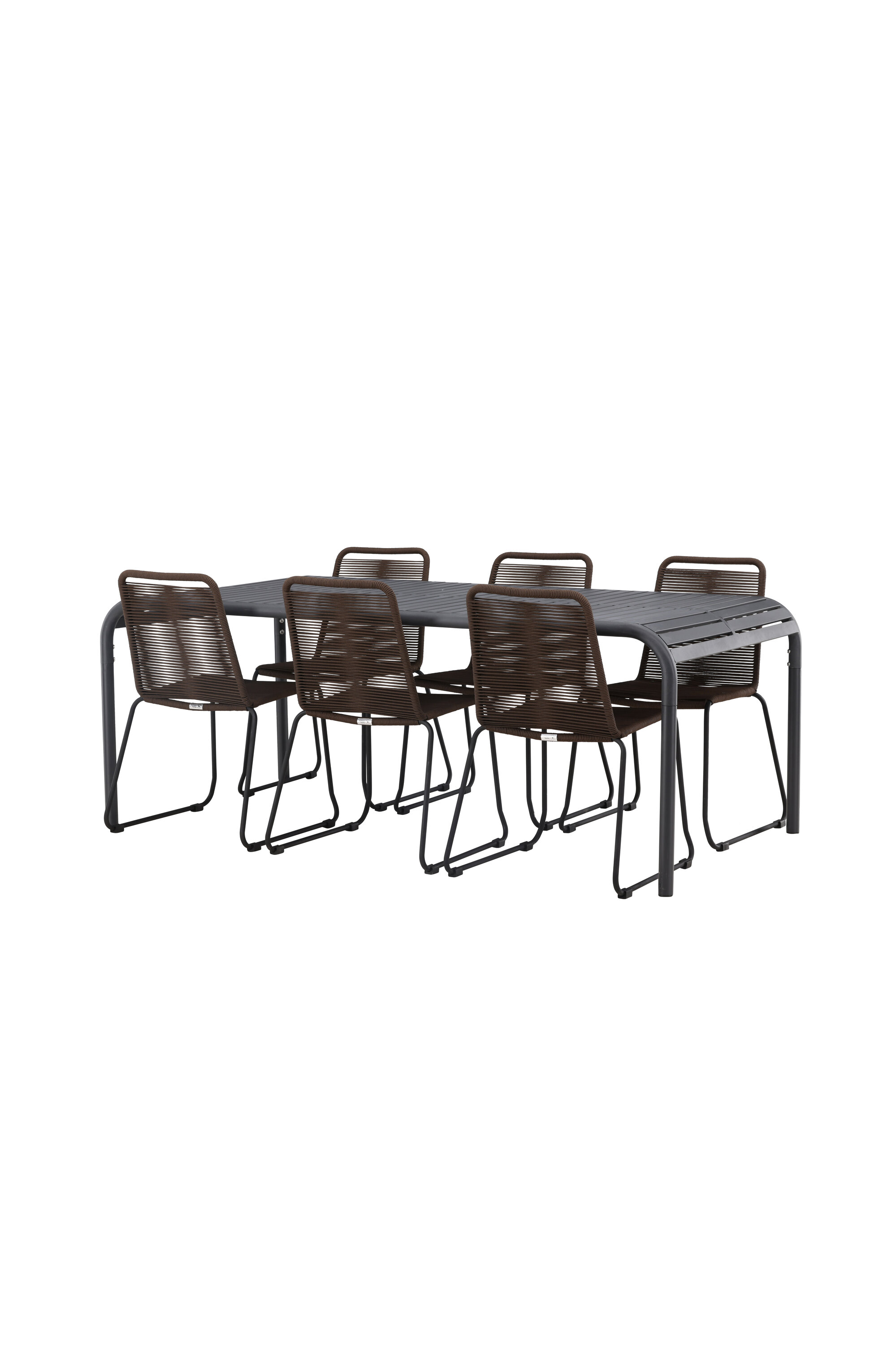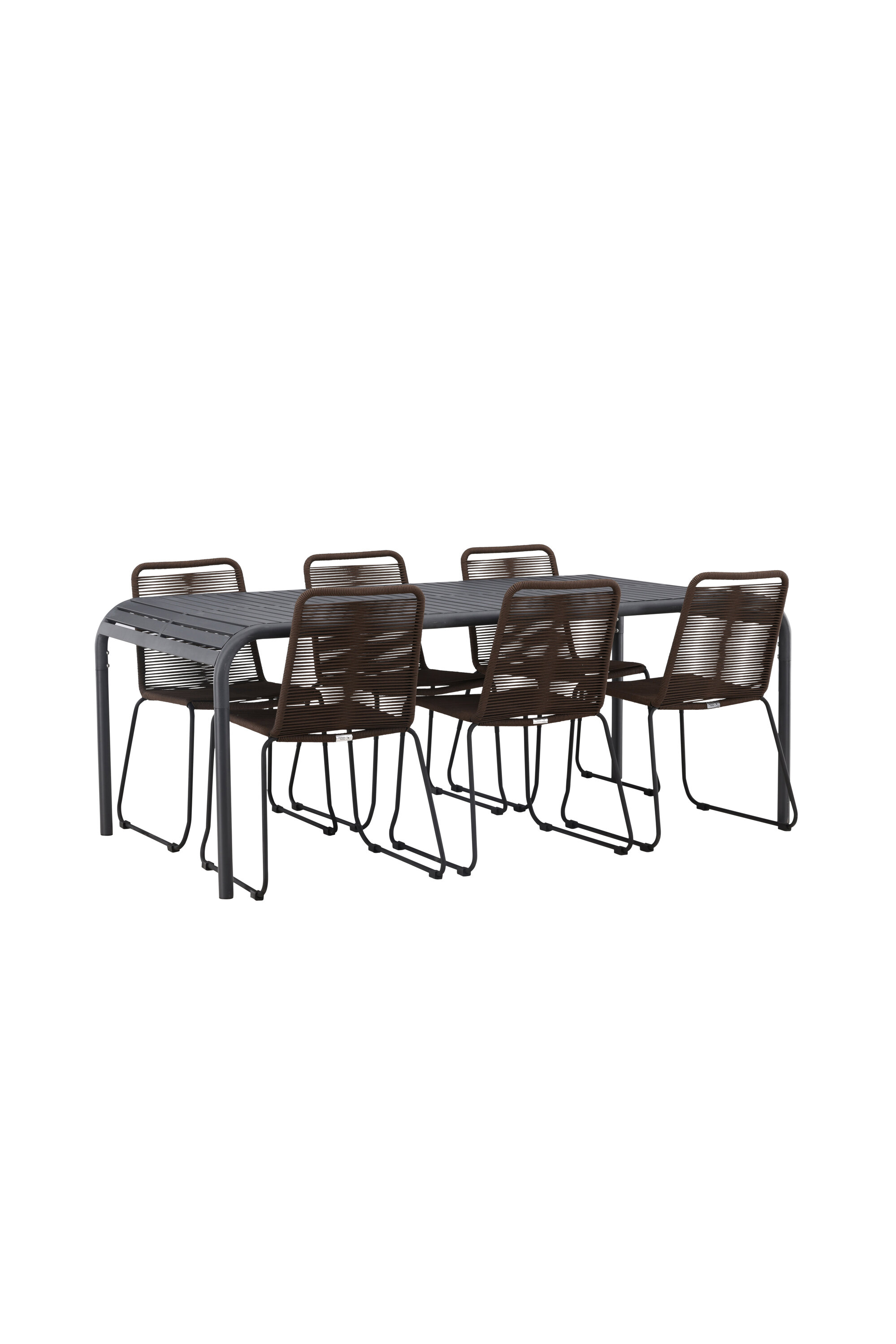 Maalähedastes värvides ja kaasaegse disainiga söögigrupp! Ristkülikukujulisel söögilaual Borneo on painduvad vormid ja soonikkoes lauaplaat, mis lainetab mööda servi mööda jalgu. Kõik kokku valmistatud vastupidavast materjalist alumiiniumist. Siin fantastiline kombinatsioon Lindose sarja söögitoolidega. Toolil on trendikas disain, mille iste on pruunist trossist ja raam on mustast terasest. Siit saate oma siseõuele moodsa pilgupüüdja ja mõnusa söögigrupi kõikideks söögikordadeks! Laua mõõdud: 200x100x75cm.
