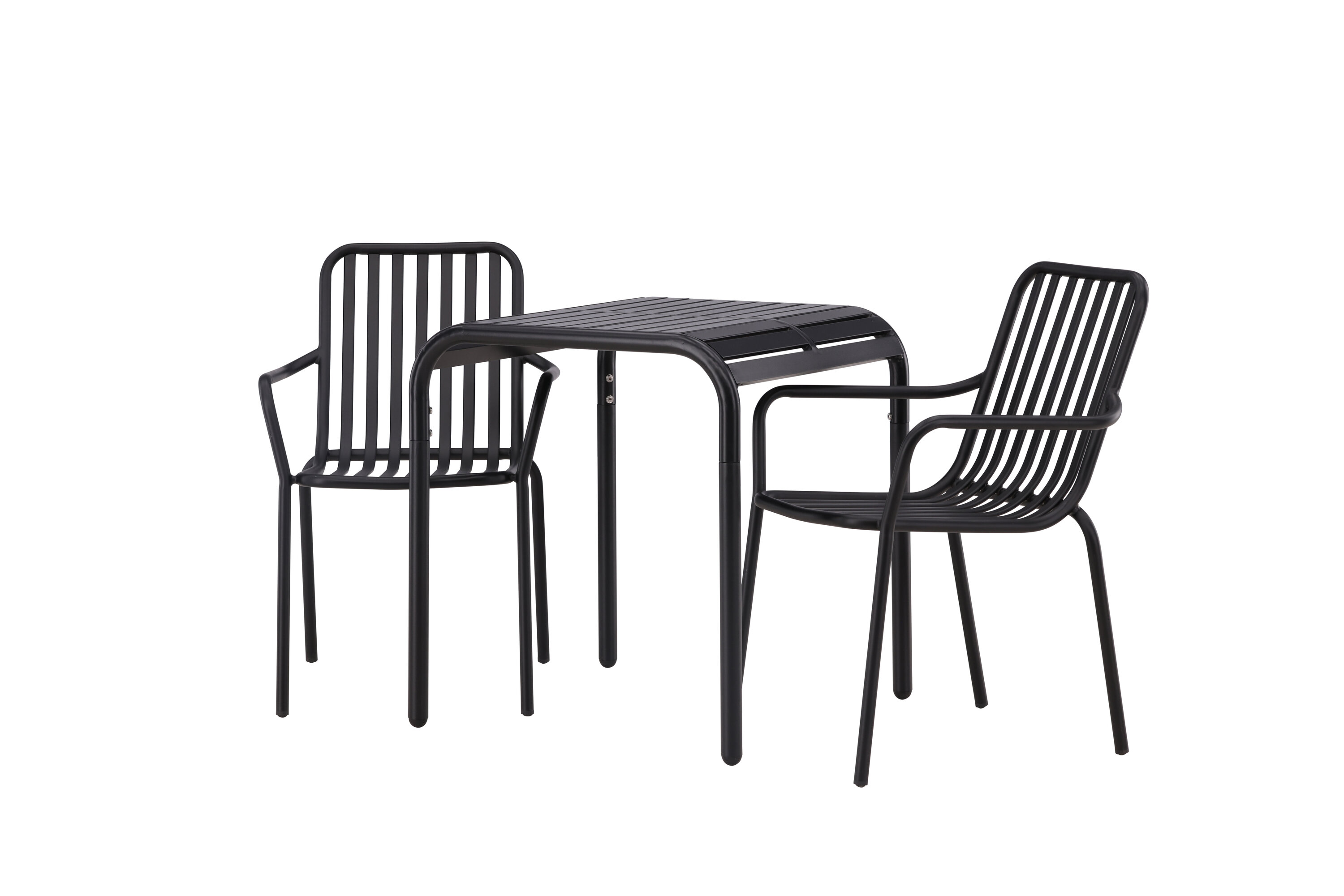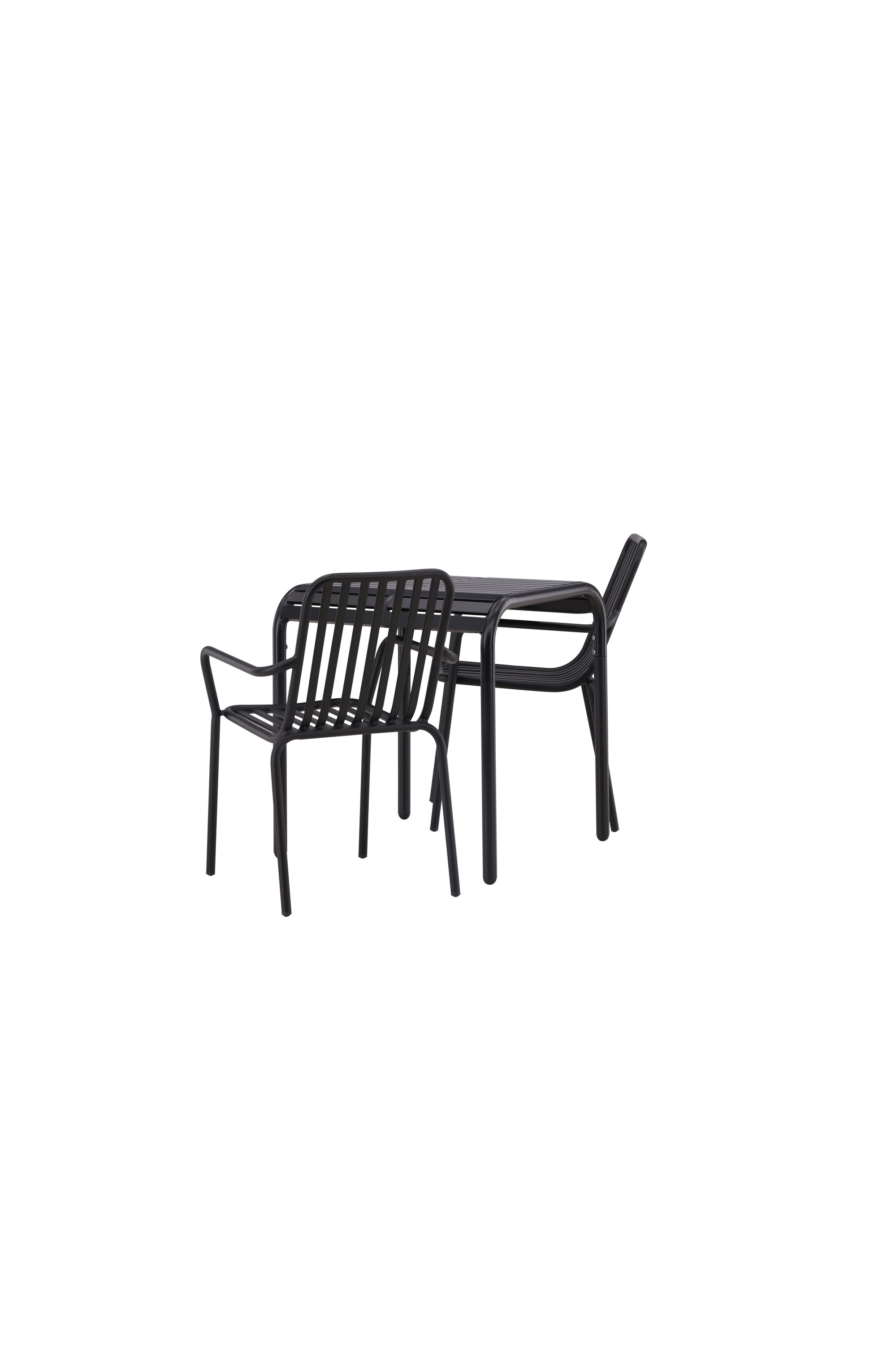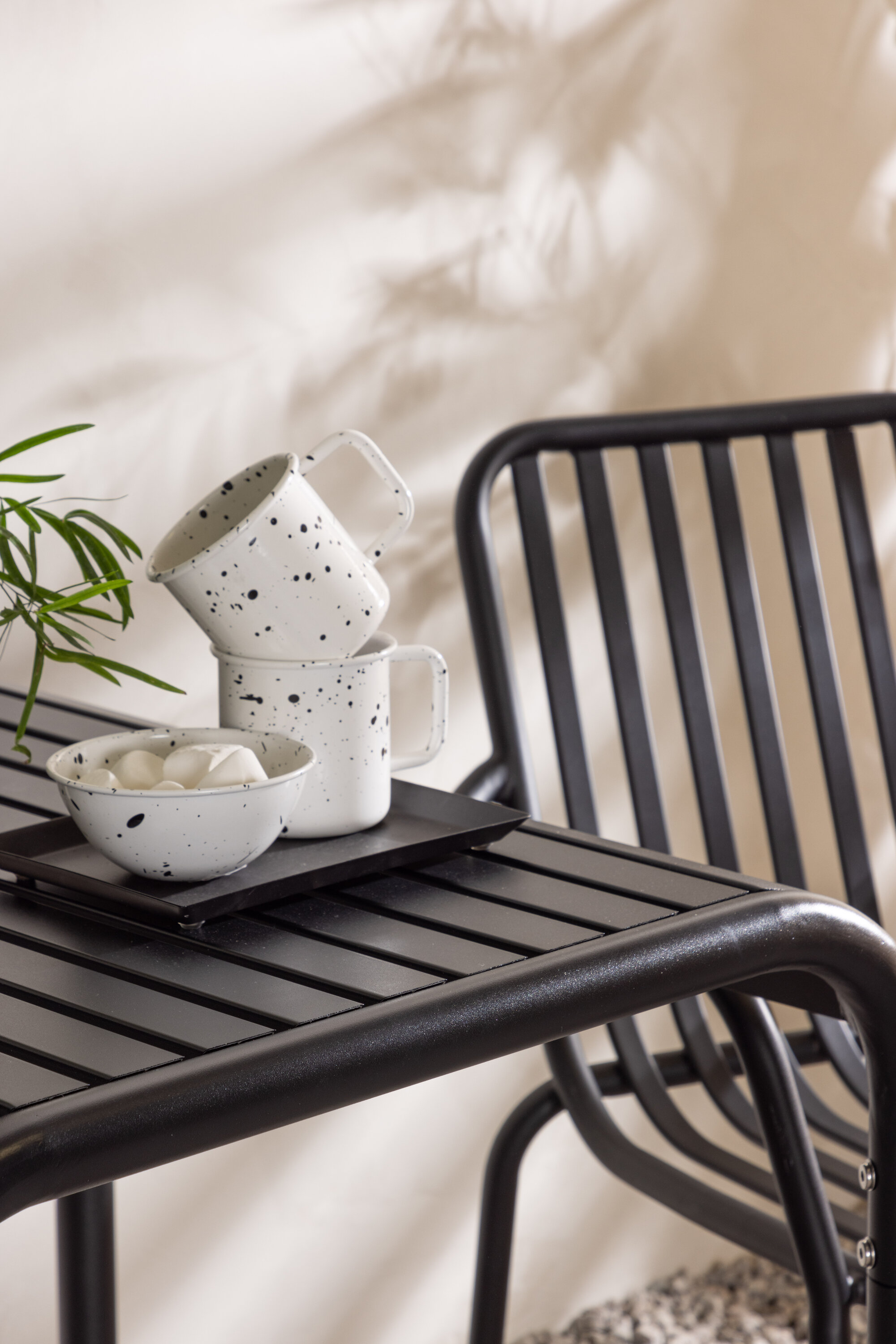 Kaasaegne ja kutsuv kohvikuseltskond, millest õhkub võlu! Borneo seeria laual on ajatu Skandinaavia disain. Lauaplaat on soonikkoes ja mööda servi allapoole lainetav. Kõik koos valmistatud mustast alumiiniumist, mis annab teile vastupidava laua, mida on lihtne liigutada. Siin on stiilne kombinatsioon 2 Pekingi sarja söögitooliga. Alumiiniumist ja tahmamust värvi sooniline disain muudab tooli nii kaasaegse kui ka ajatu. Joo sel suvel kohvi väljas! Laua mõõdud: 70x70cm.