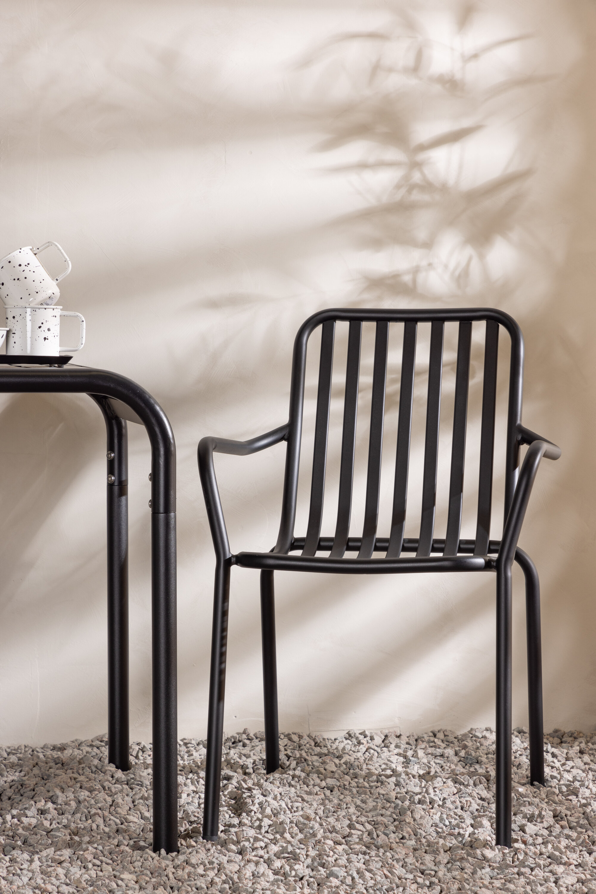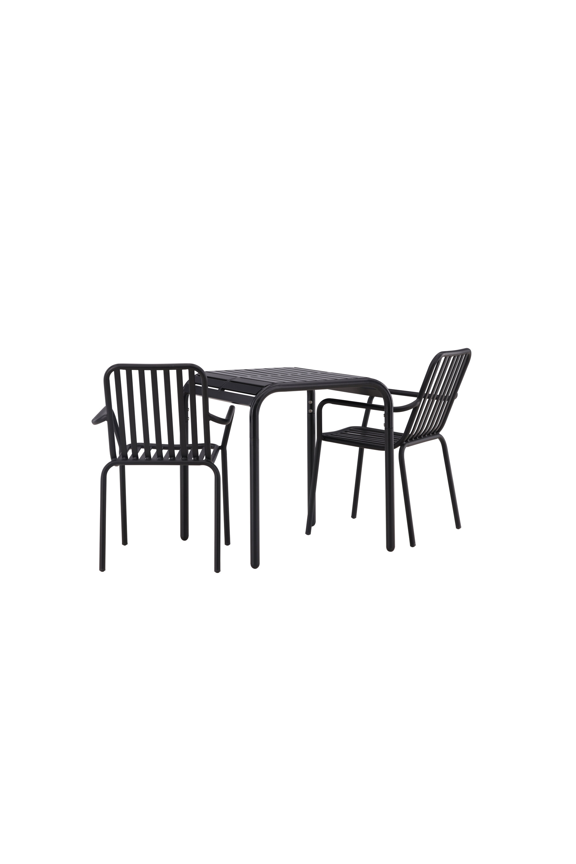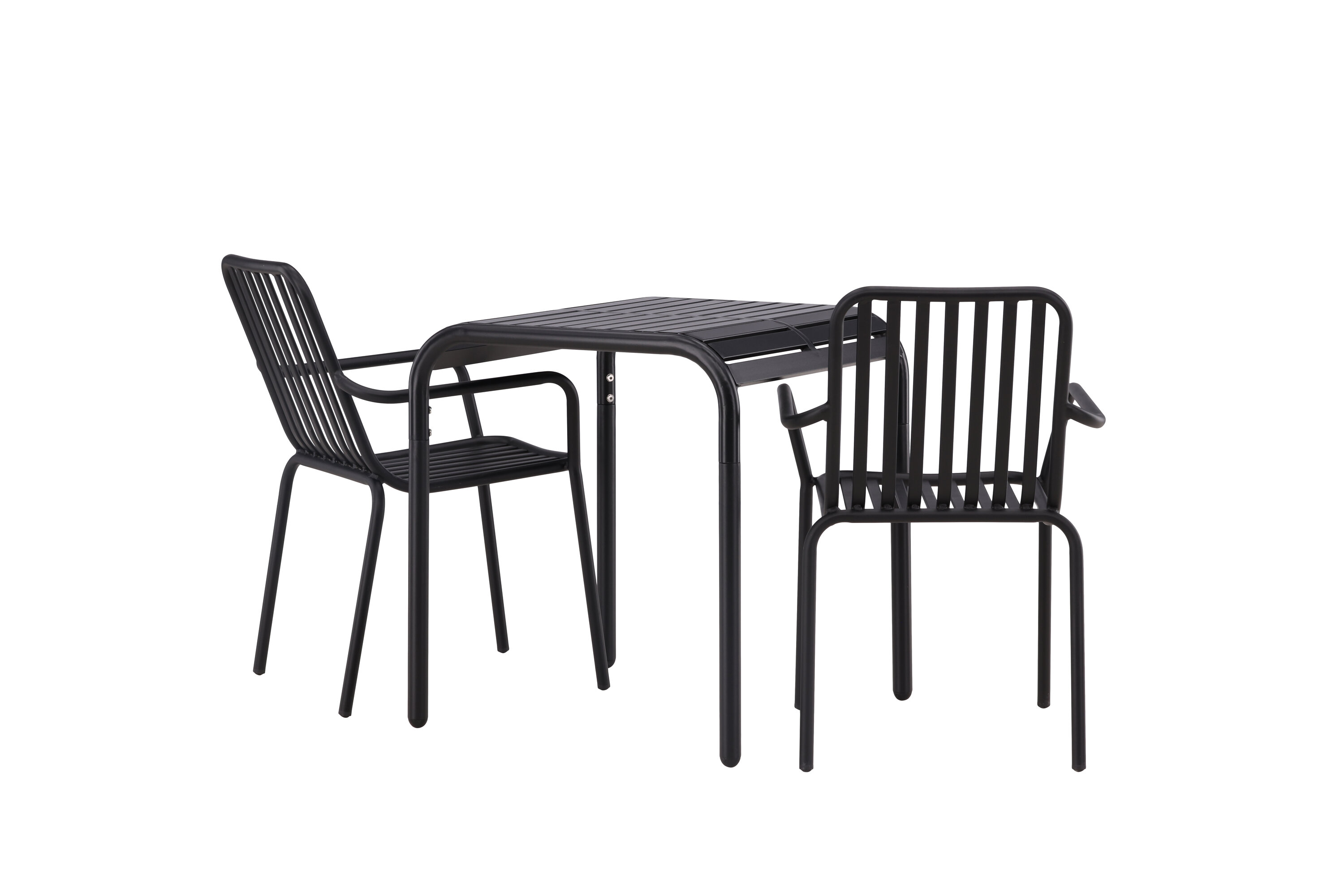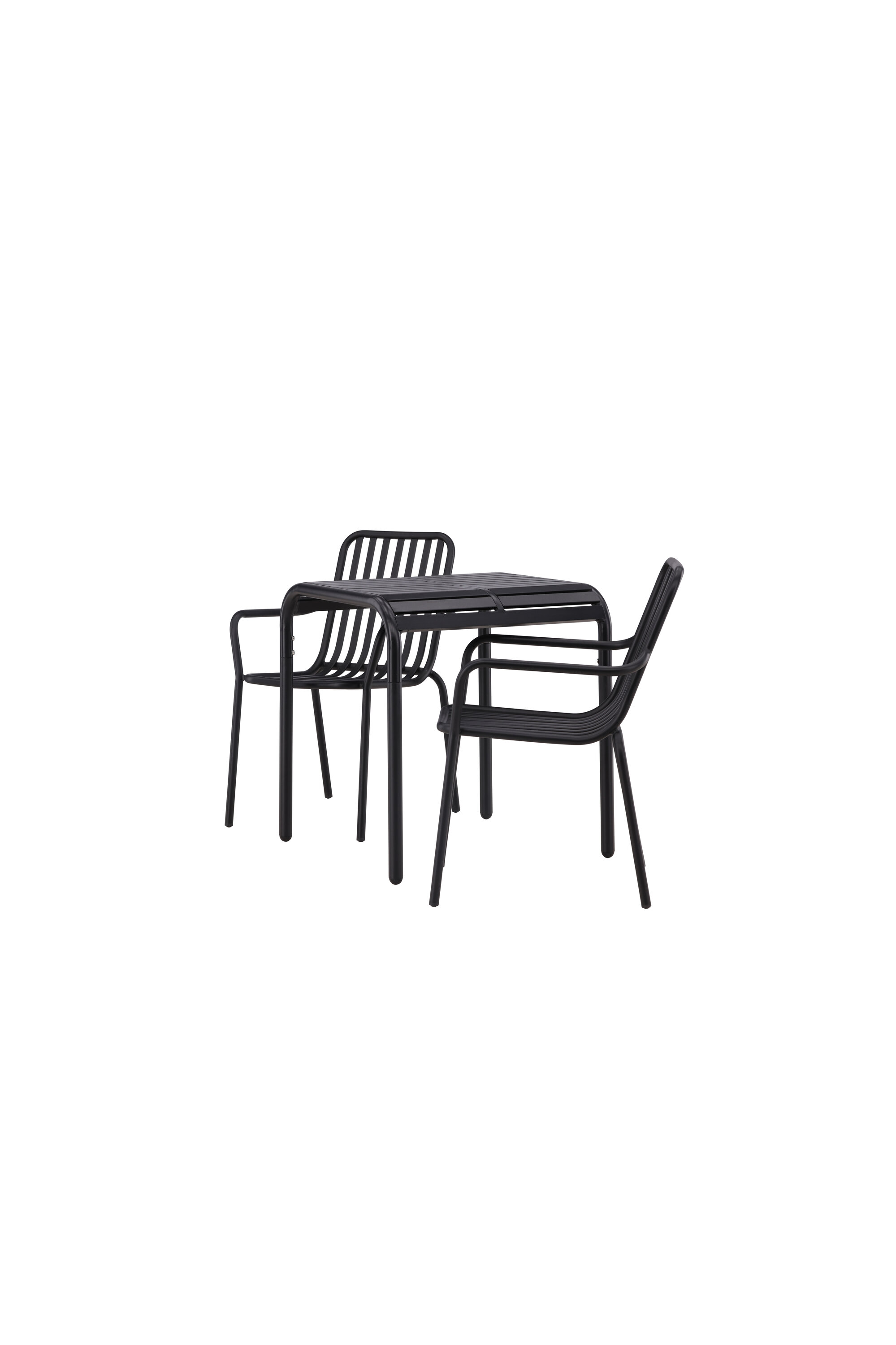 Kaasaegne ja kutsuv kohvikuseltskond, millest õhkub võlu! Borneo seeria laual on ajatu Skandinaavia disain. Lauaplaat on soonikkoes ja mööda servi allapoole lainetav. Kõik koos valmistatud mustast alumiiniumist, mis annab teile vastupidava laua, mida on lihtne liigutada. Siin on stiilne kombinatsioon 2 Pekingi sarja söögitooliga. Alumiiniumist ja tahmamust värvi sooniline disain muudab tooli nii kaasaegse kui ka ajatu. Joo sel suvel kohvi väljas! Laua mõõdud: 70x70cm.