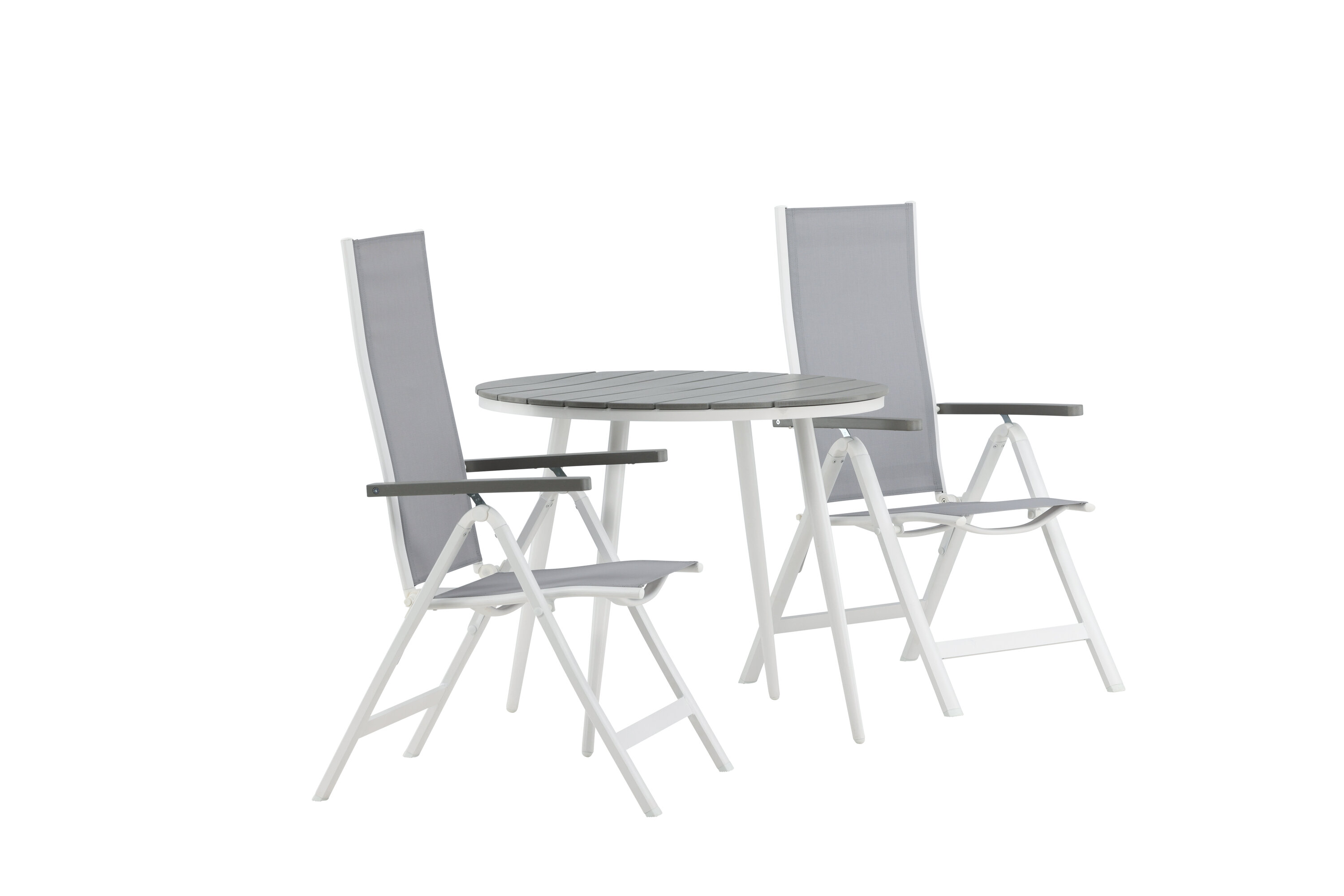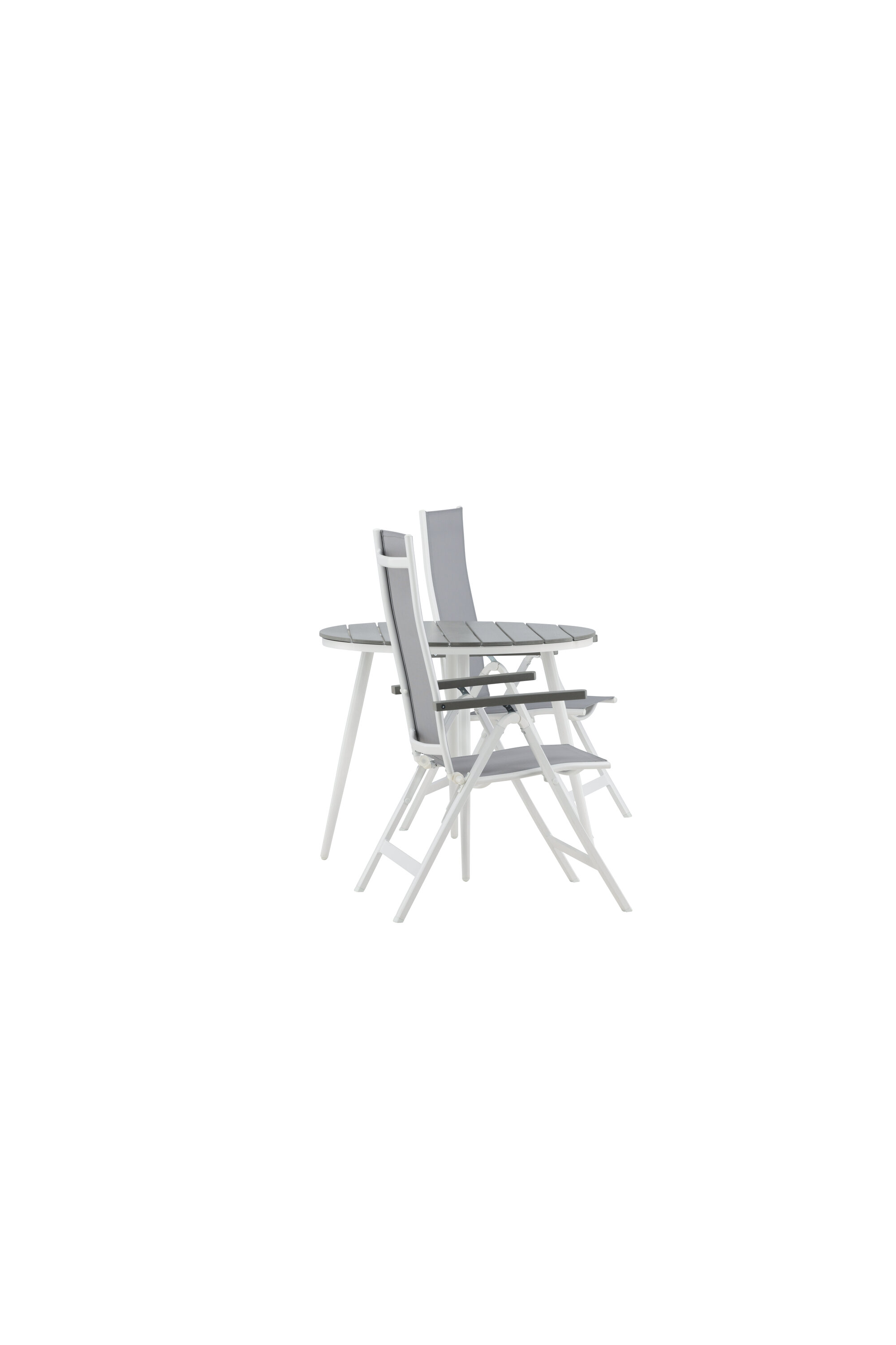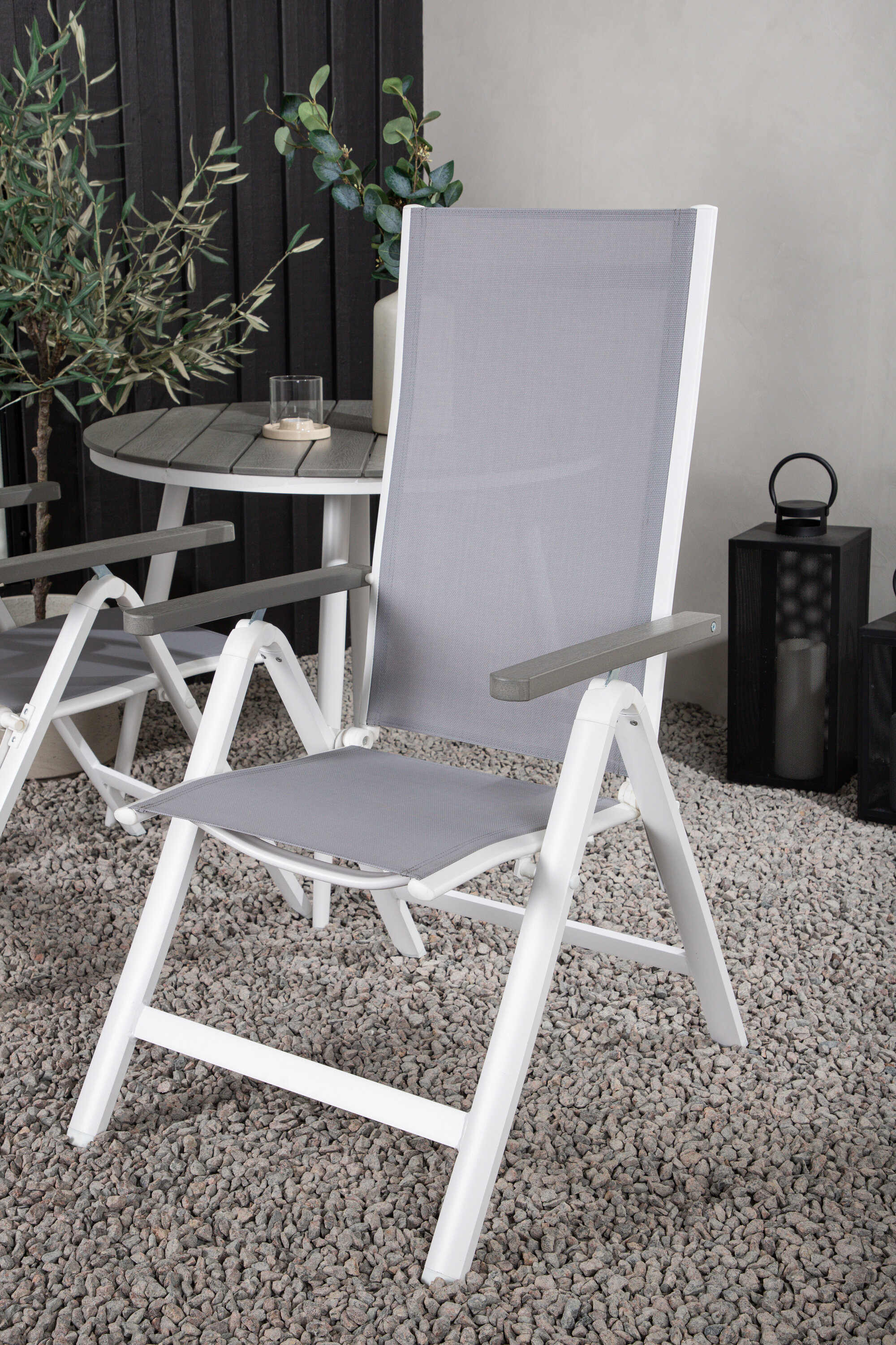 Looge sel suvel oma terrassile ideaalne kohvikoht! Siin on ajatu disain ühendatud kutsuvate vormidega ilusas pilkupüüdvas. Söögilaual Break on hall Aintwoodi halli lauaplaat ja klassikaline valge alumiiniumist alusvanker. Siin maitsev kombinatsioon 2 Albany seeria söögitooliga. Tool on hall 5-asendiline tekstiilist tool maitsvate käetugede ja valge alumiiniumraami konstruktsiooniga. Seljatugi on optimaalse mugavuse ja lõõgastuse tagamiseks kokkuklapitav – seadke hommikusöök või õhtukohv ja nautige suvepäevi!