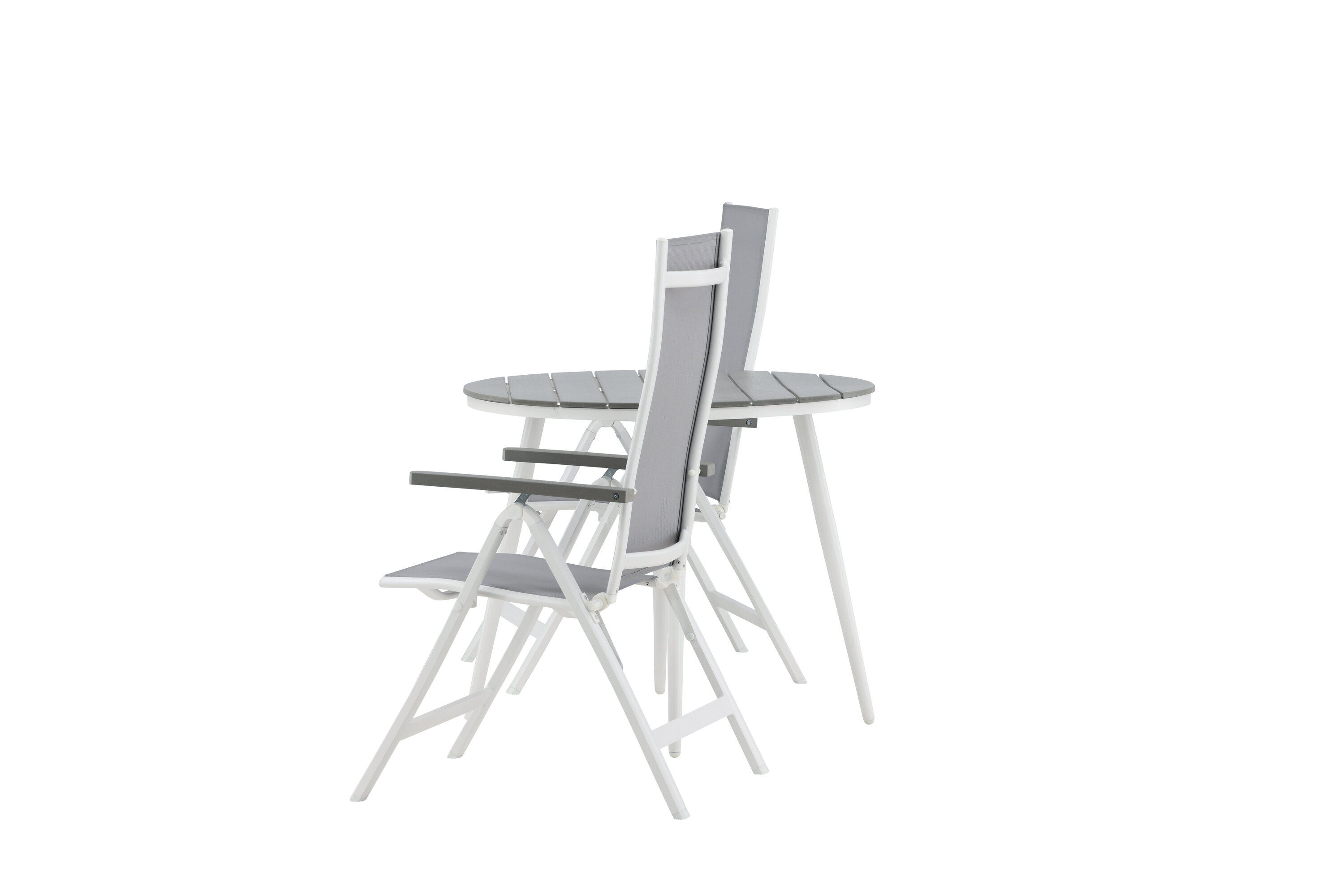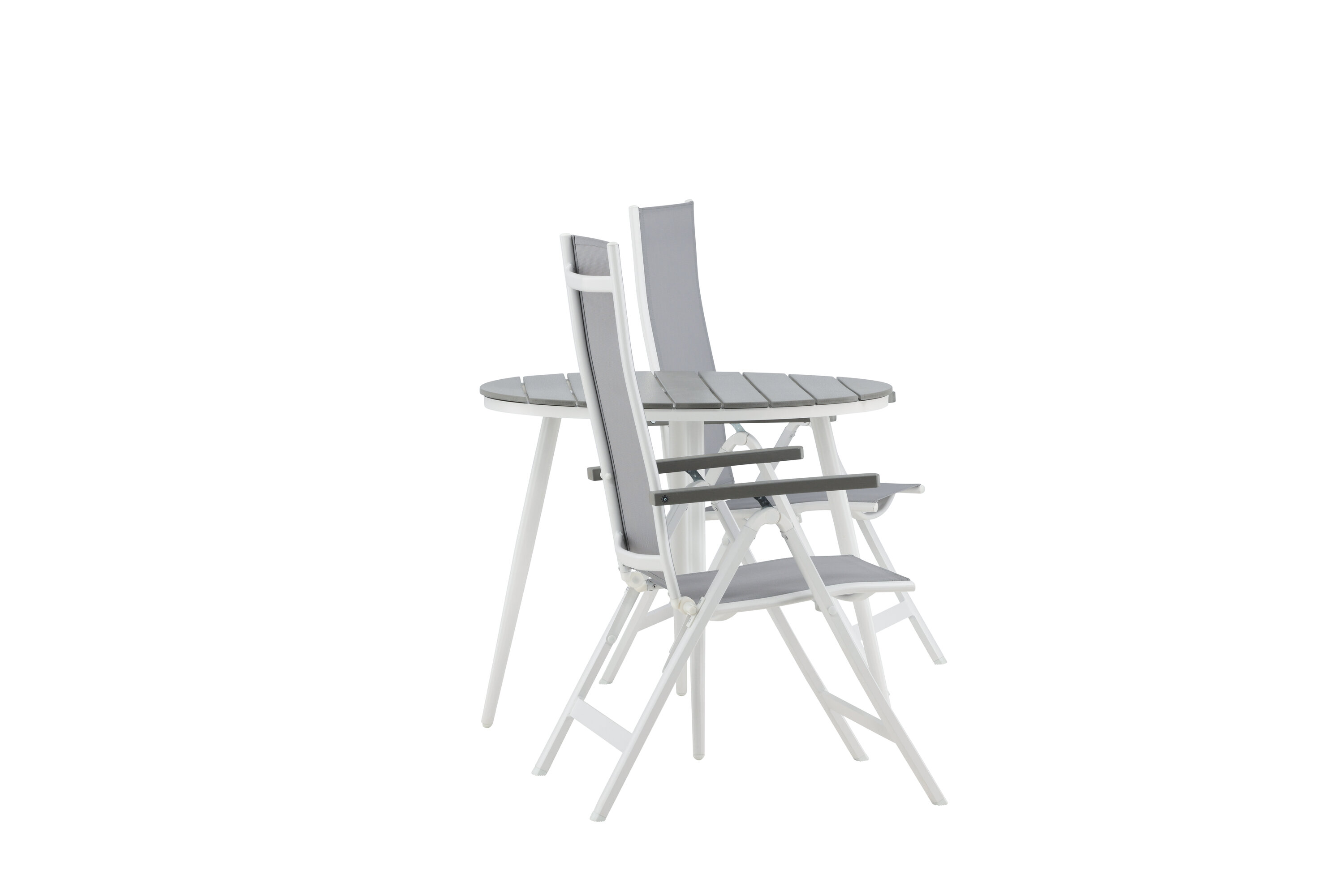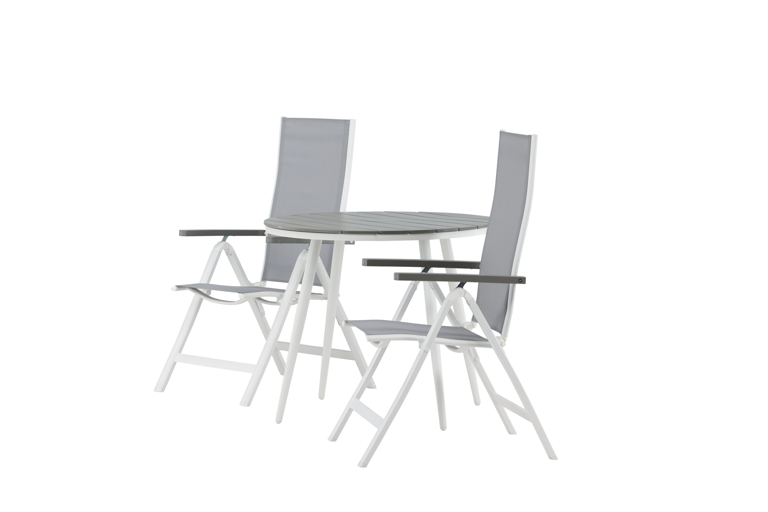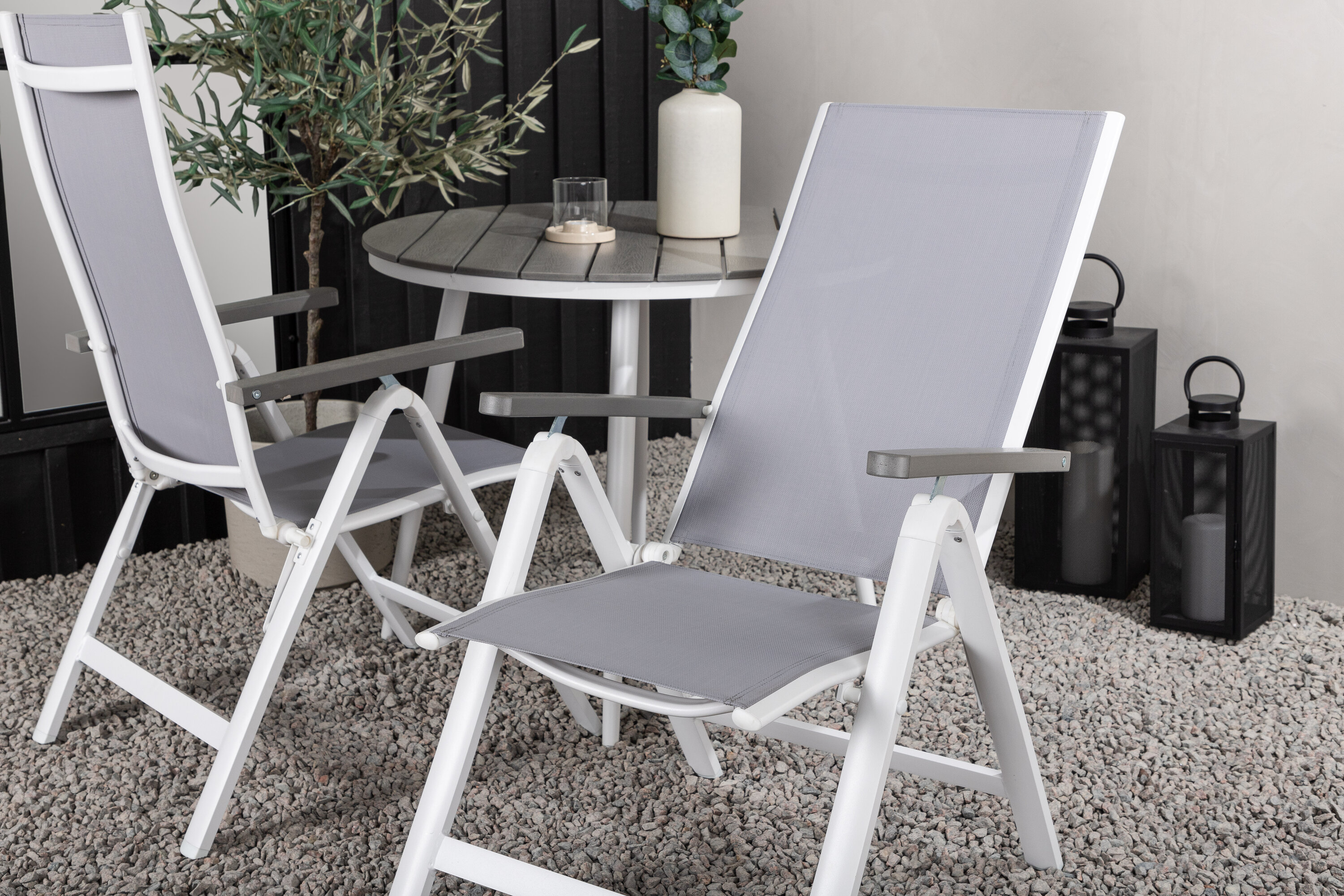Looge sel suvel oma terrassile ideaalne kohvikoht! Siin on ajatu disain ühendatud kutsuvate vormidega ilusas pilkupüüdvas. Söögilaual Break on hall Aintwoodi halli lauaplaat ja klassikaline valge alumiiniumist alusvanker. Siin maitsev kombinatsioon 2 Albany seeria söögitooliga. Tool on hall 5-asendiline tekstiilist tool maitsvate käetugede ja valge alumiiniumraami konstruktsiooniga. Seljatugi on optimaalse mugavuse ja lõõgastuse tagamiseks kokkuklapitav – seadke hommikusöök või õhtukohv ja nautige suvepäevi!