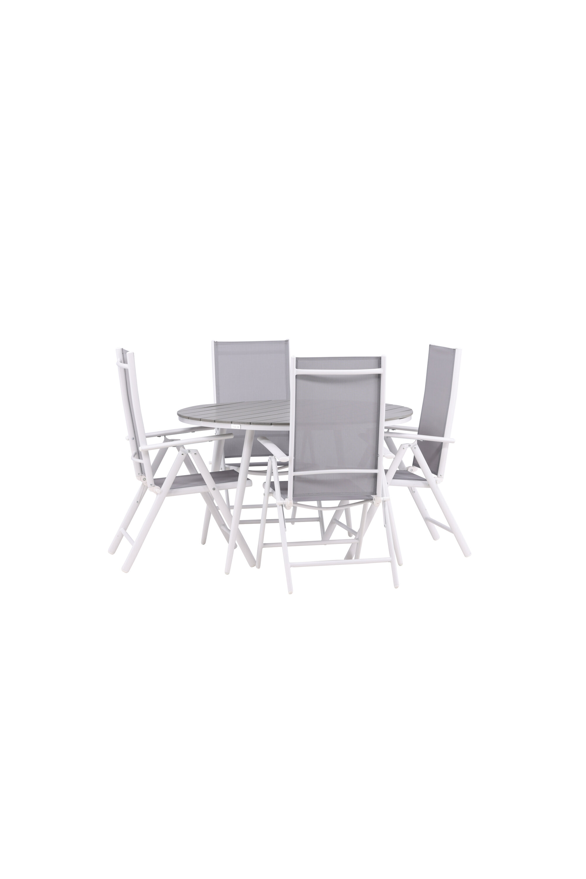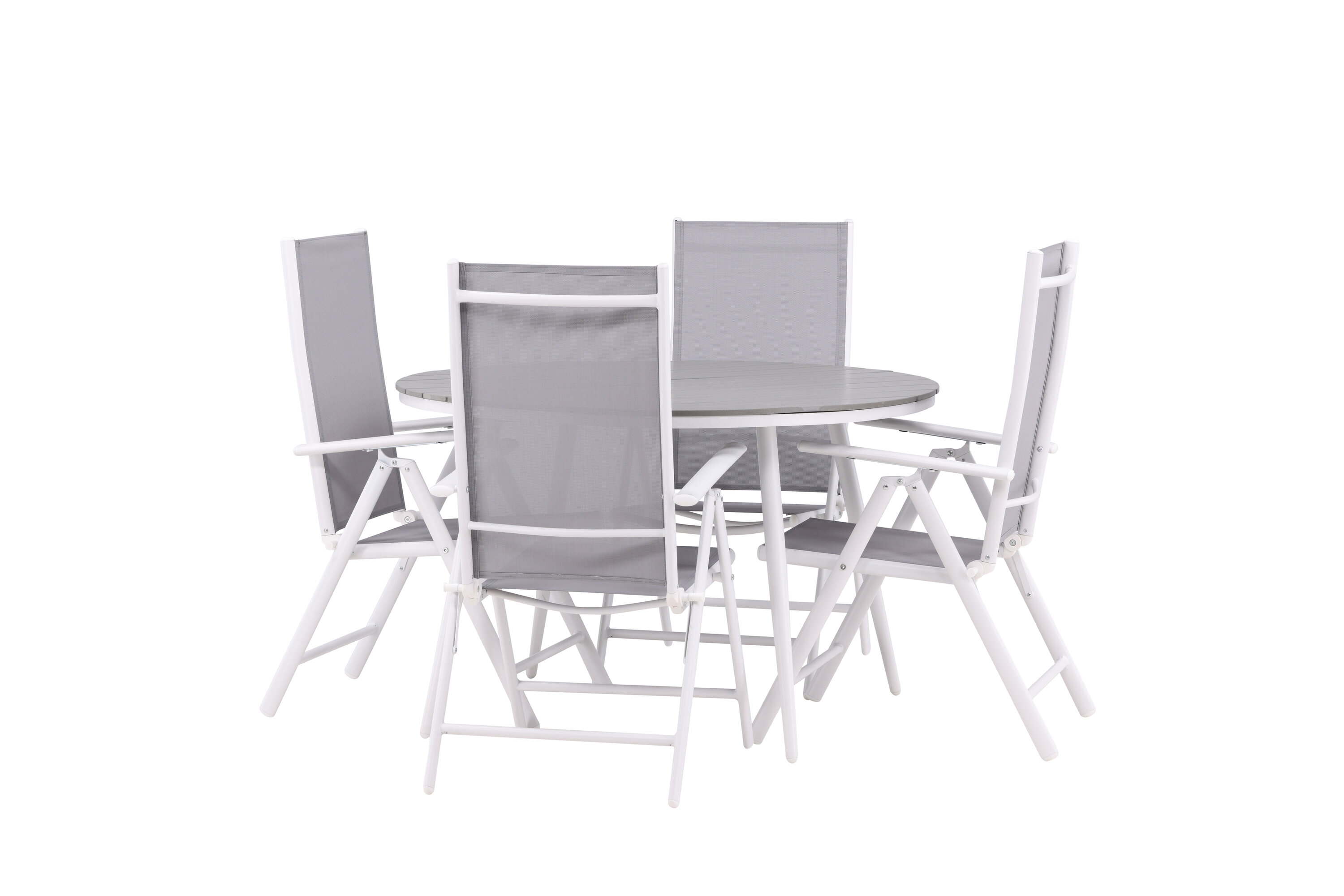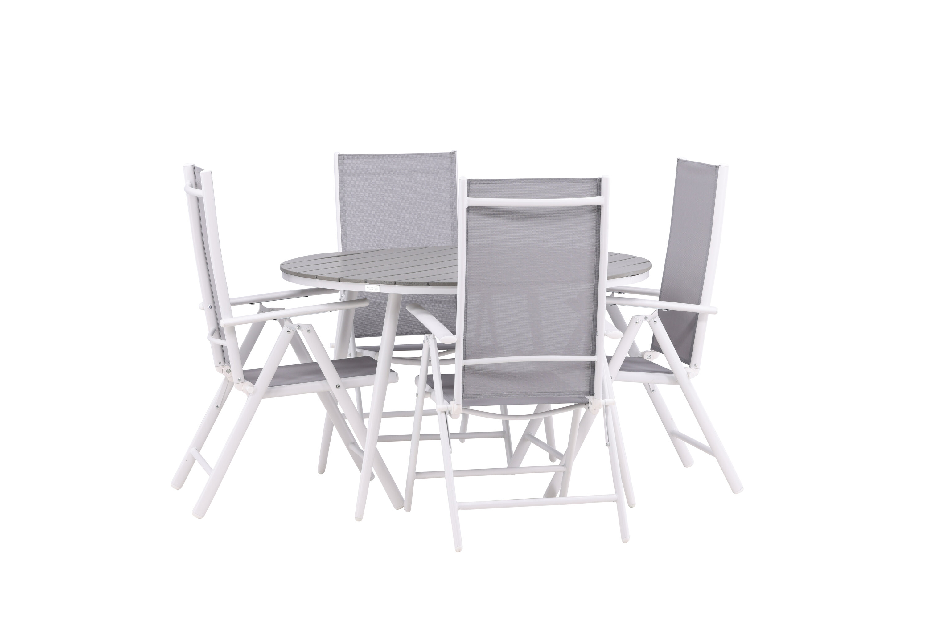 Klassikalise disaini ja sihvaka värviskaalaga söögigrupp ei lähe kunagi ajast maha – lihtne sobitada ja oma disainilt ajatu! Laual Break on ümmargune halli värvi Aintwood lauaplaat ja klassikaline valge alumiiniumist alusvanker. Siin täiuslik kombinatsioon sama sarja kokkupandavate söögitoolidega. Hallist tekstiilist toolide seljatugesid saab reguleerida, et tagada optimaalne mugavus ja lõõgastus söögilaua ümber. Looge oma siseõue täiuslik keskpunkt!