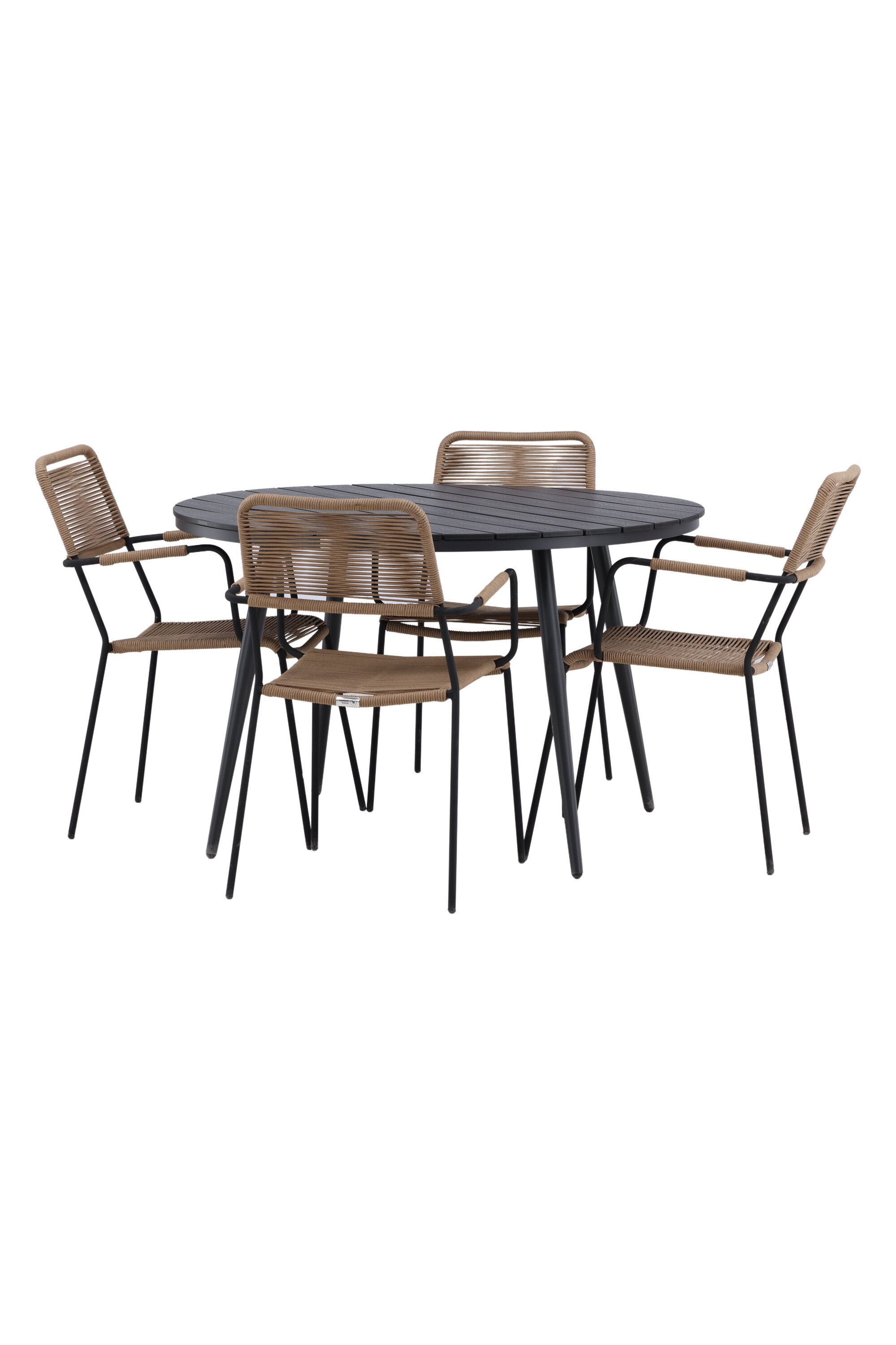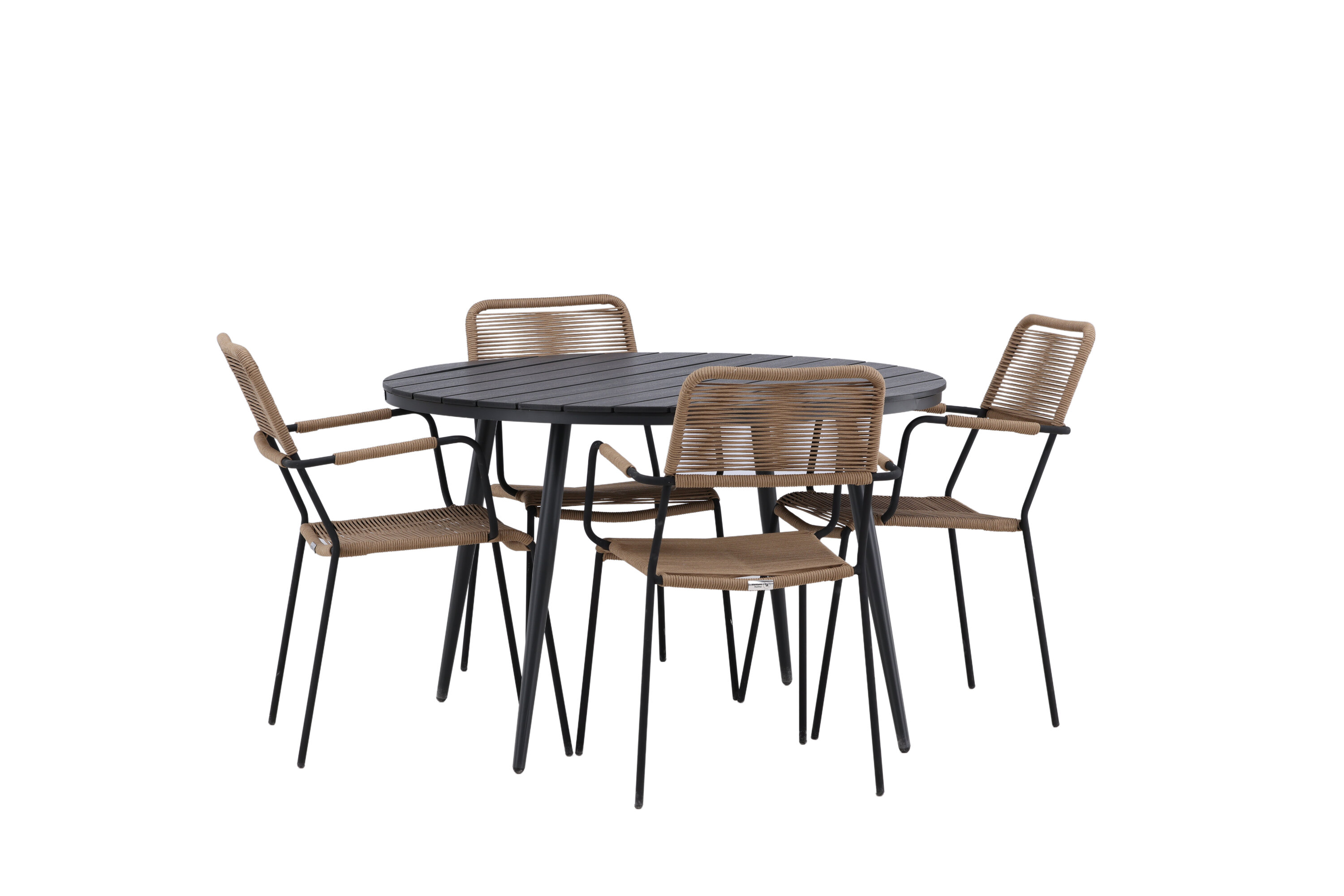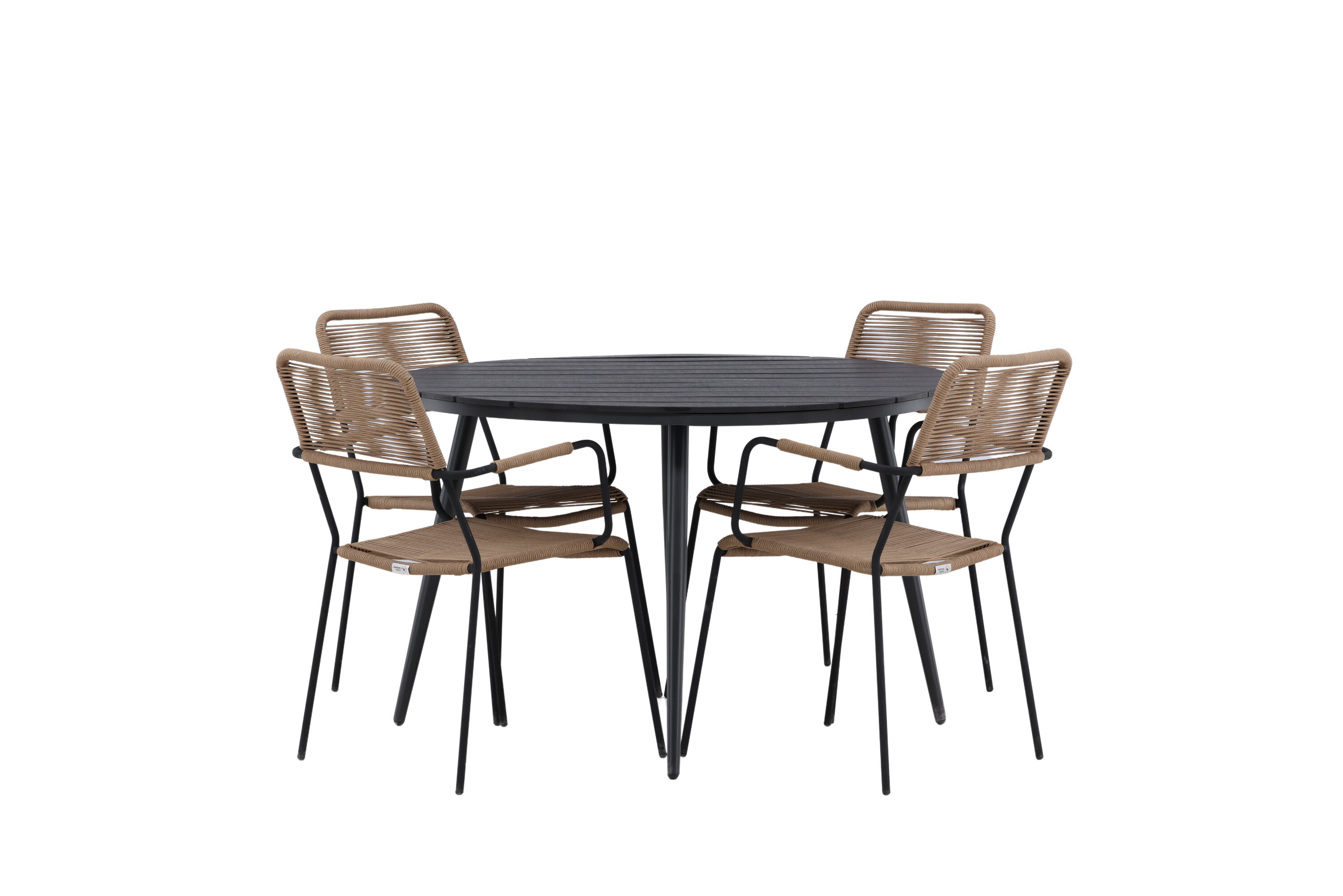 Looge väliruumis või rõdul pilkupüüdja, mis avaldab muljet. Sellel trendikindlal toidugrupil on hästi läbimõeldud ülddisain Lindose seeria maalähedastes toonides toolidega ja Break sarja musta söögilauaga. Toolidel on integreeritud mustast alumiiniumist käetoed ja vastupidavast latte-värvi köiest iste. Laual on ümmargune Aintwood lauaplaat ja kergelt laienevad alumiiniumist jalad. Siin saavad kõik istekoha ja keegi ei ohusta servi!