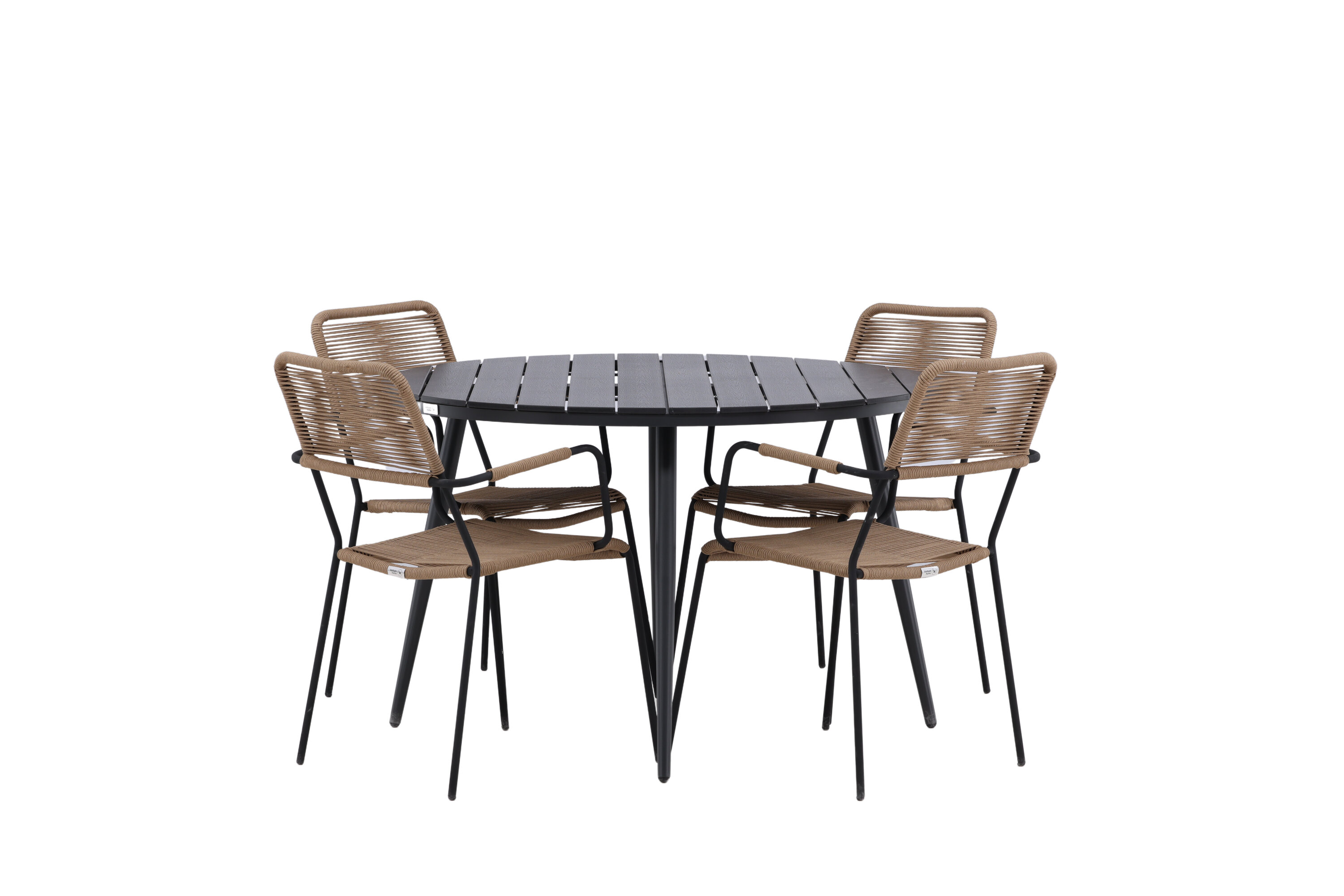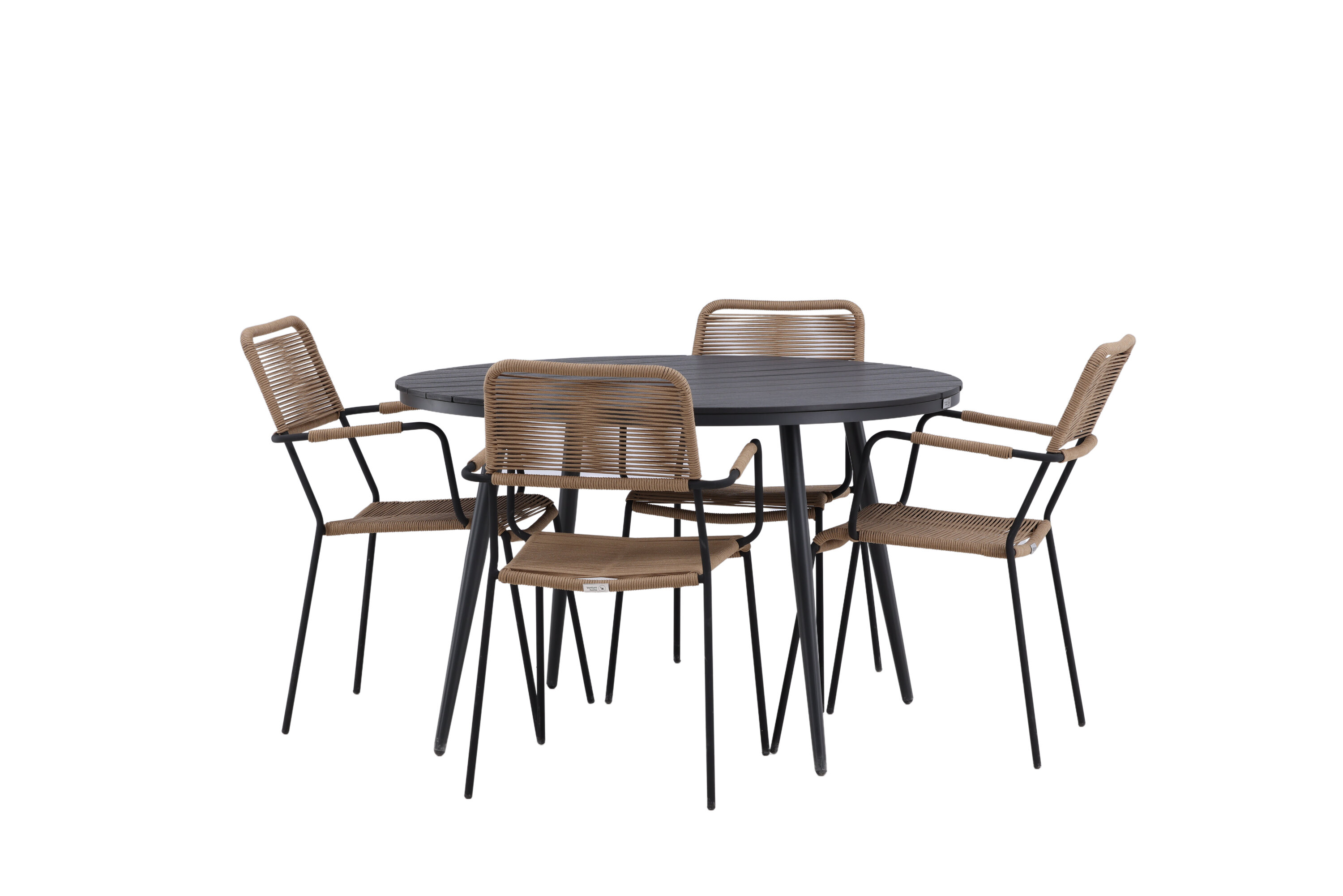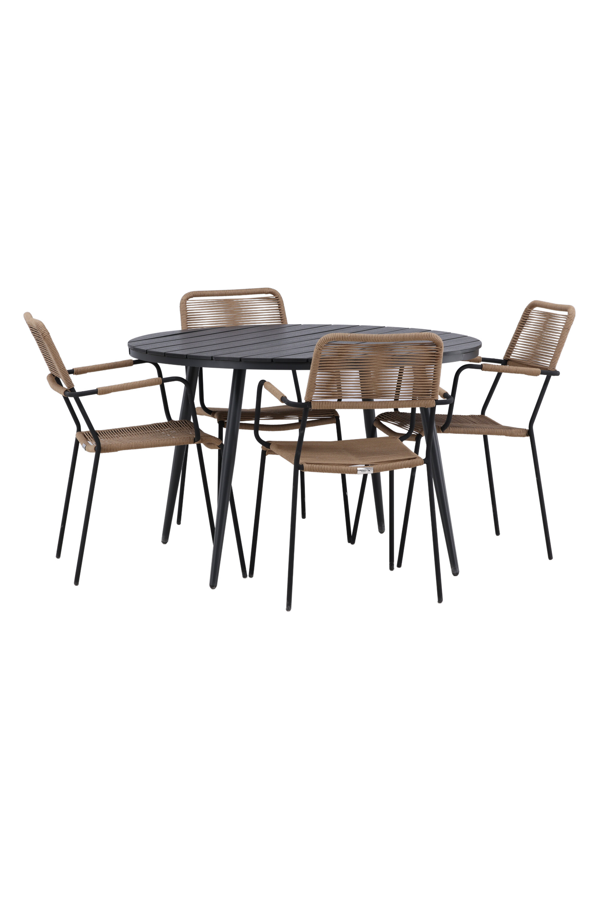 Looge väliruumis või rõdul pilkupüüdja, mis avaldab muljet. Sellel trendikindlal toidugrupil on hästi läbimõeldud ülddisain Lindose seeria maalähedastes toonides toolidega ja Break sarja musta söögilauaga. Toolidel on integreeritud mustast alumiiniumist käetoed ja vastupidavast latte-värvi köiest iste. Laual on ümmargune Aintwood lauaplaat ja kergelt laienevad alumiiniumist jalad. Siin saavad kõik istekoha ja keegi ei ohusta servi!