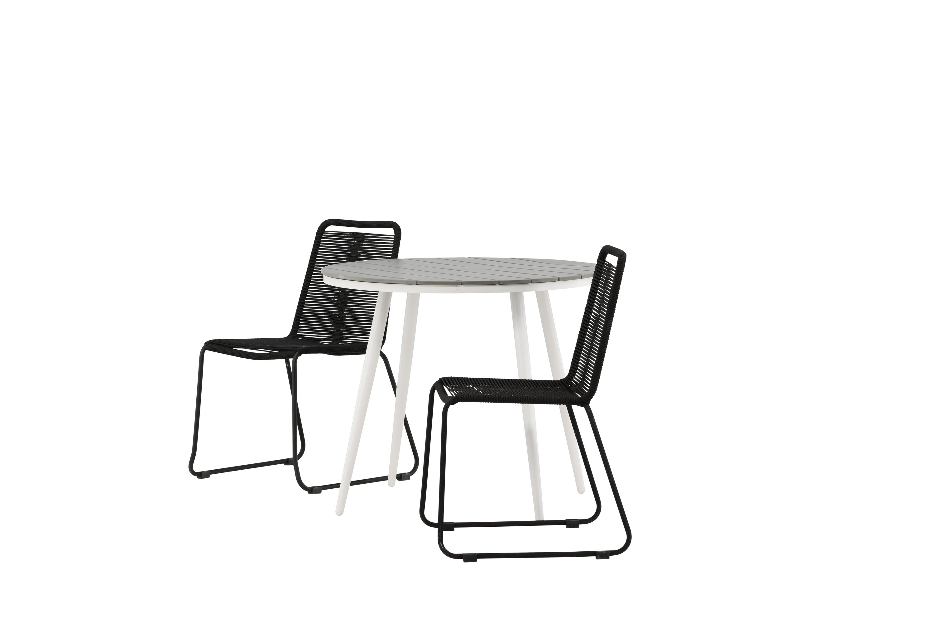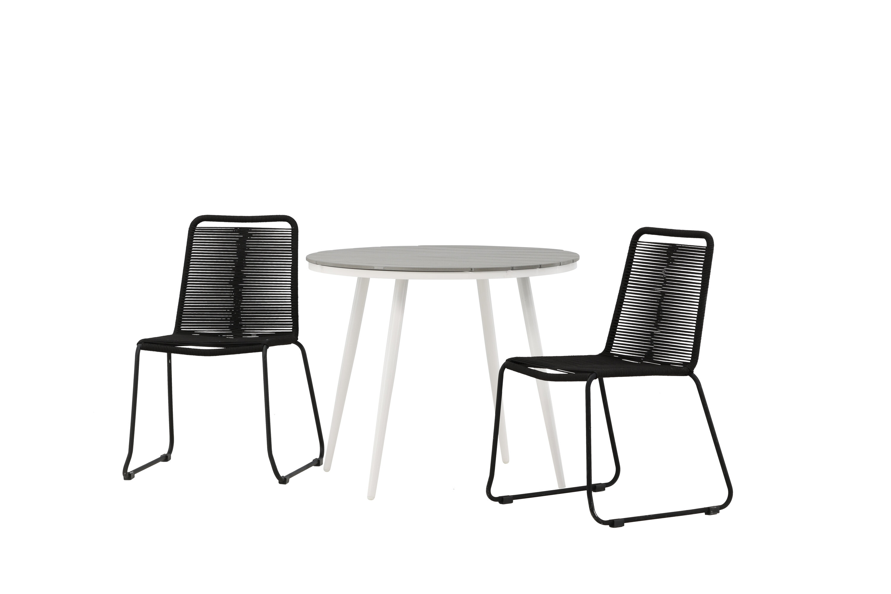 Mugav, kutsuv ja kena musta värvi kohvikuseltskond sobib suurepäraselt selle suve terrassile! Laual Break on ümmargune halli värvi Aintwood lauaplaat ja klassikaline valge alumiiniumist alusvanker. Siin ideaalses kombinatsioonis Lindose sarja saledate toolidega. Toolidel on stiilsed kitsad mustast alumiiniumist jalad ja vastupidavast mustast köiest iste. See on ka virnastatav praktiliseks hoiustamiseks. See on kutsuv toidugrupp kahele, mis pikendab sel suvel kindlasti mõnusaid hetki!